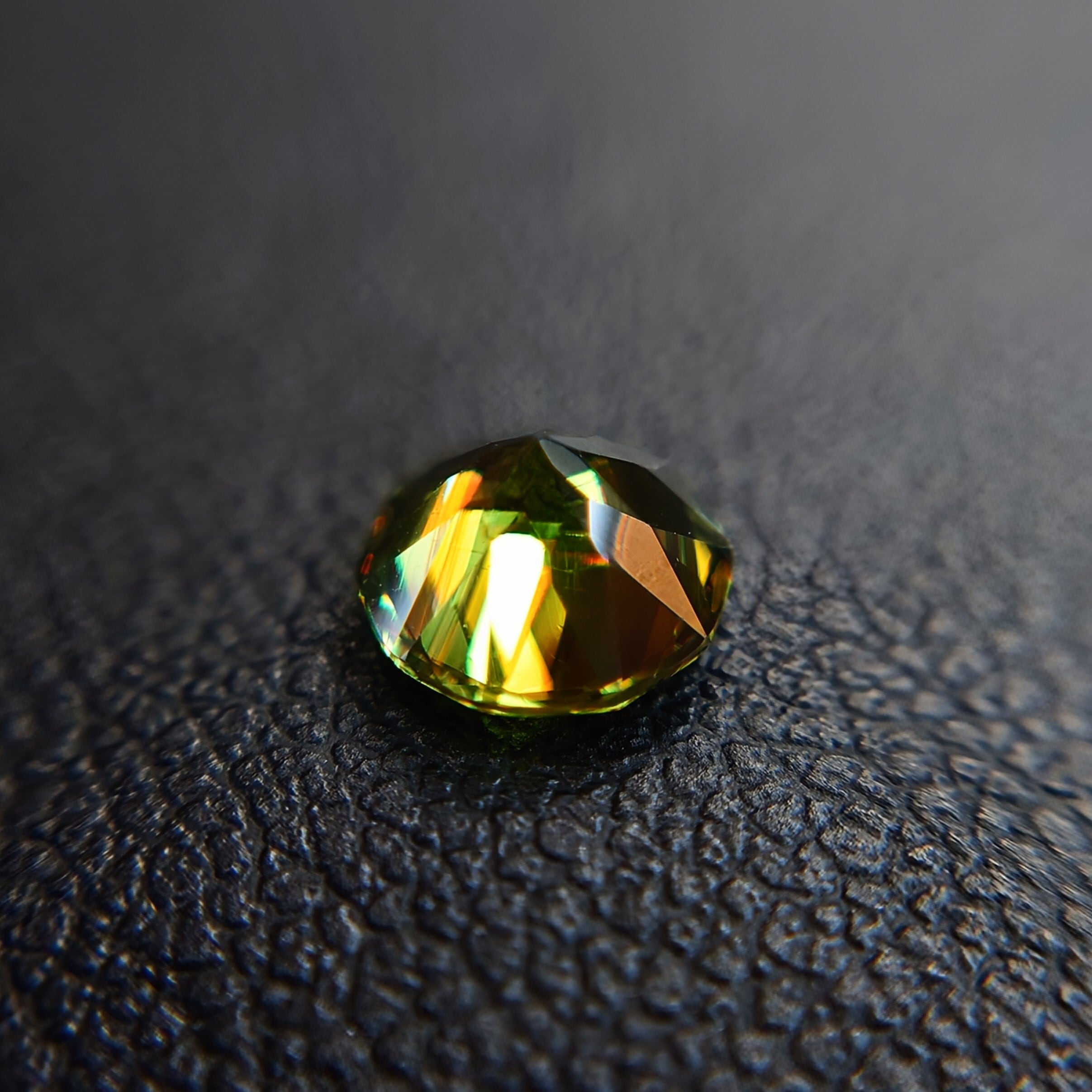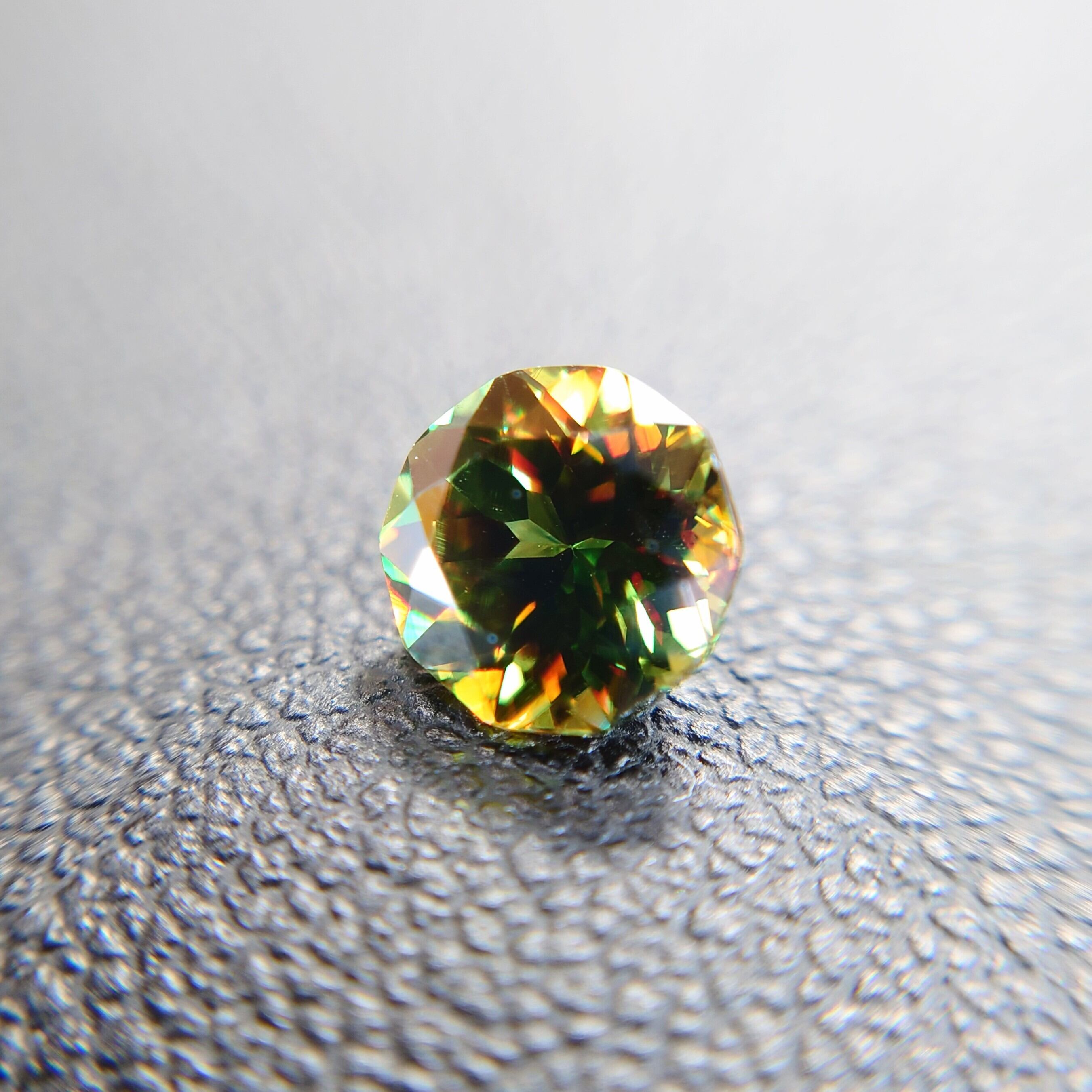 目を奪われるほど強いファイアと、複雑に色が重なり合う多色性が魅力のスフェーン。