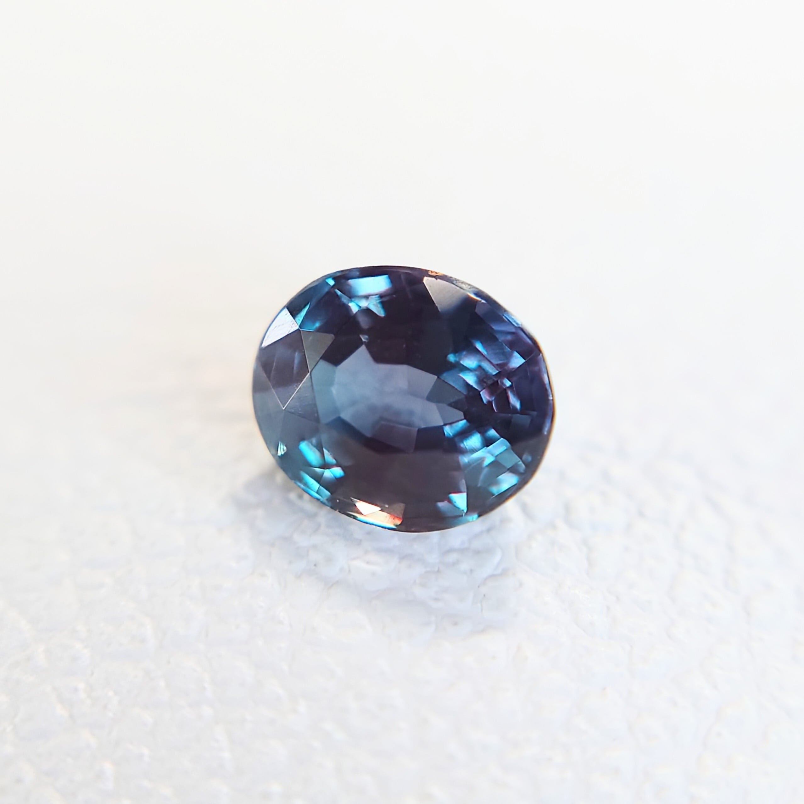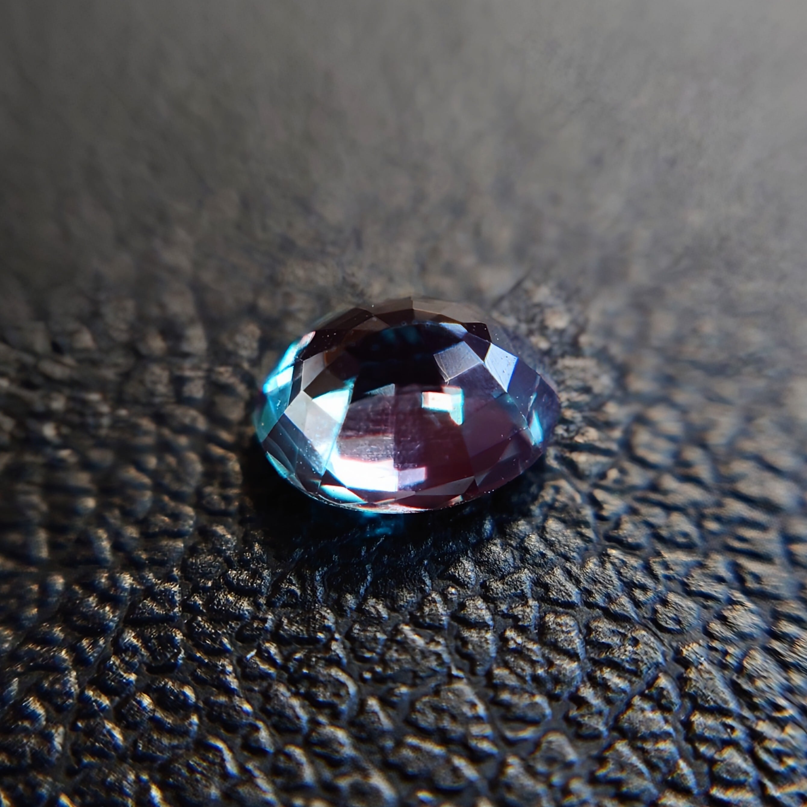 昼光下ではグリーニッシュブルー、白熱灯の下では鮮やかなパープルへと劇的に変貌する、アレキサンドライトならではの神秘的なカラーチェンジを存分に体感できる美しい一石です。