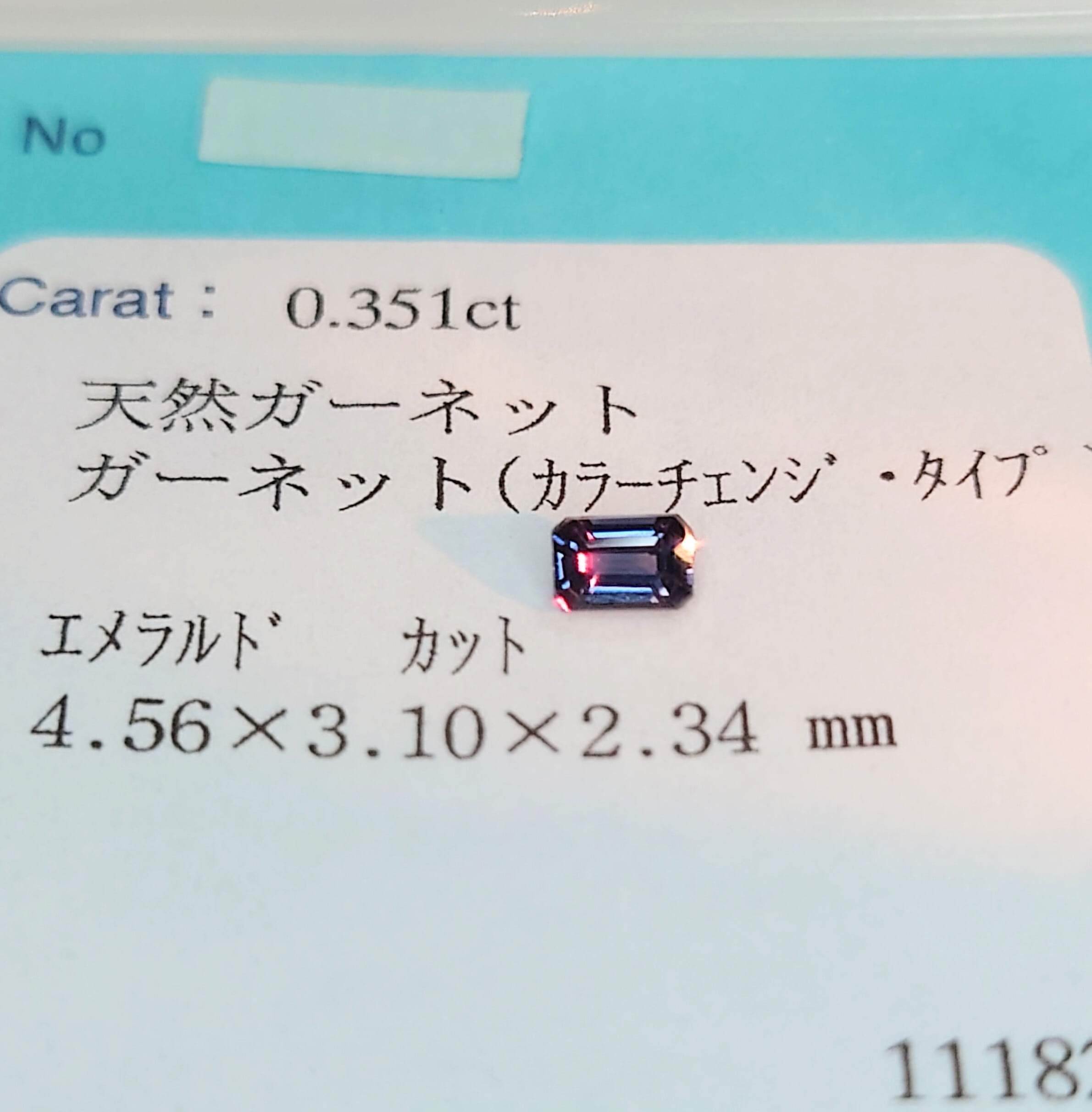 “ブルーガーネット” の中でも、ひときわ印象的なカラーチェンジを見せる0.351ct。