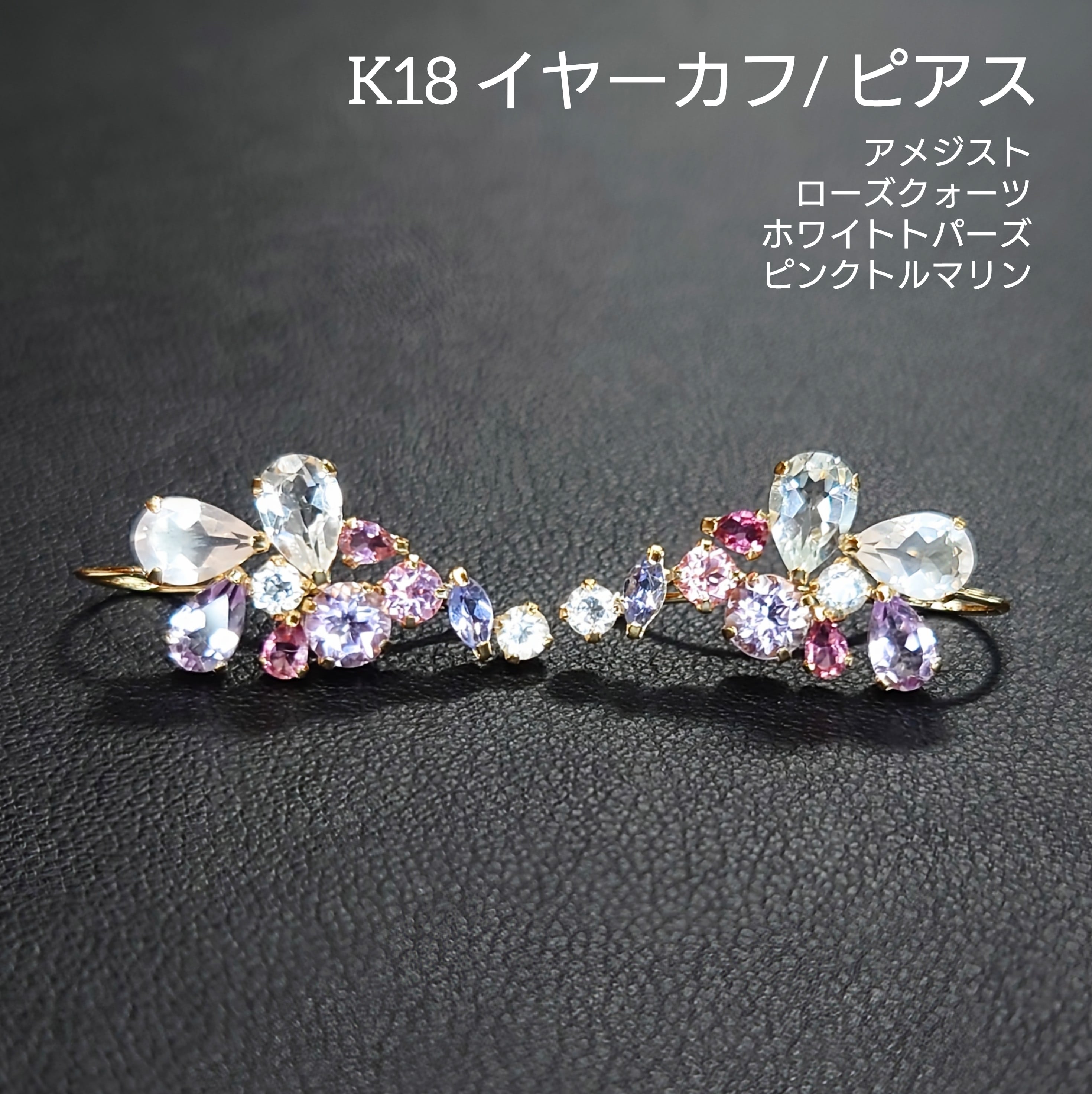 K18 イヤーカフ/ピアス Amethyst/Rose Quartz/Pink Tourmaline/White Topaz☆