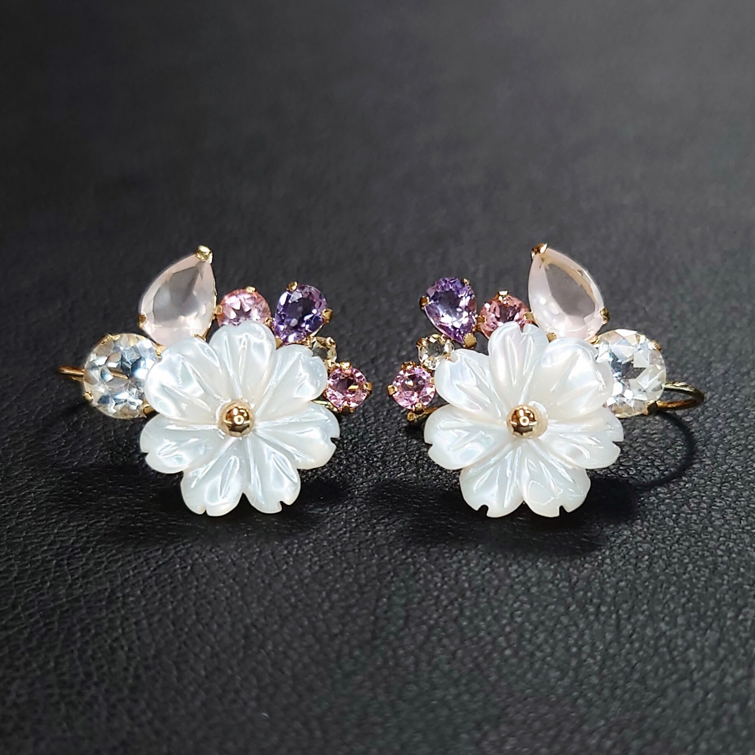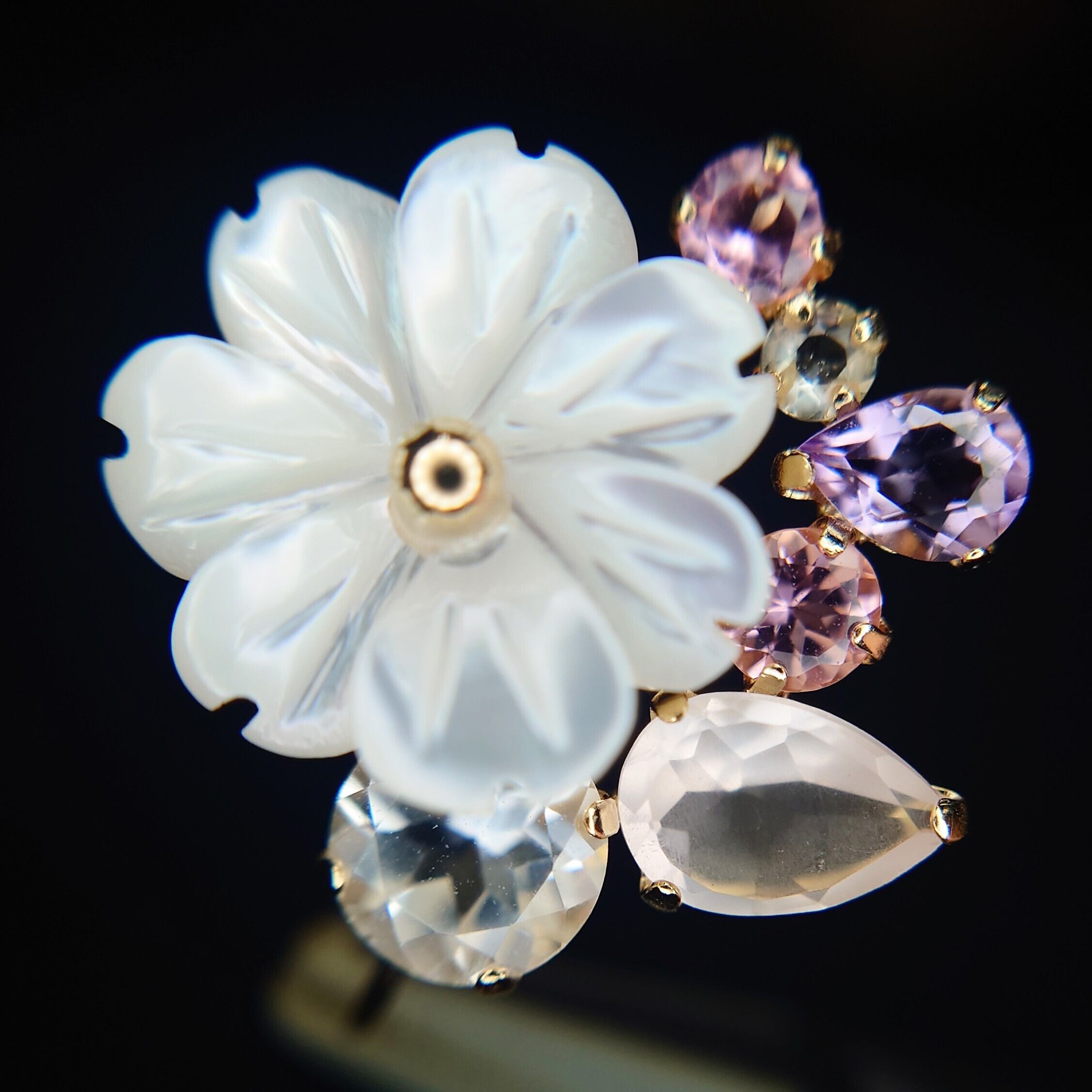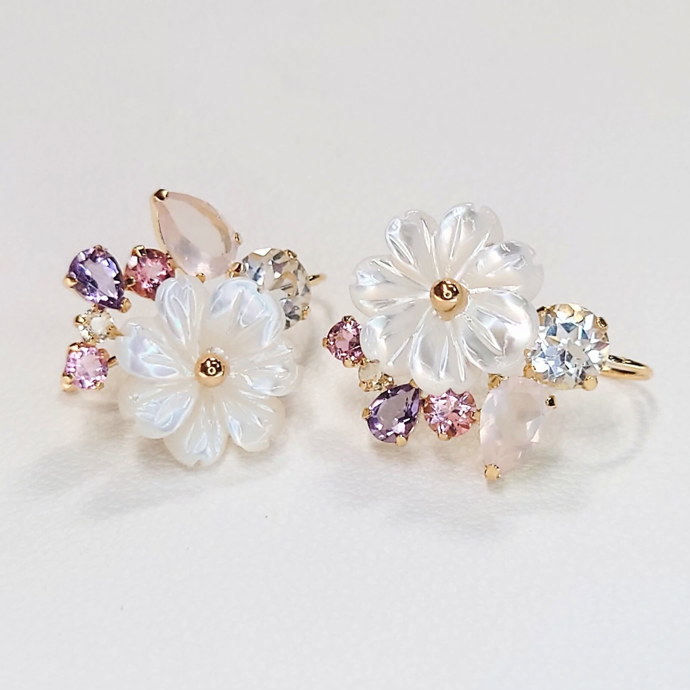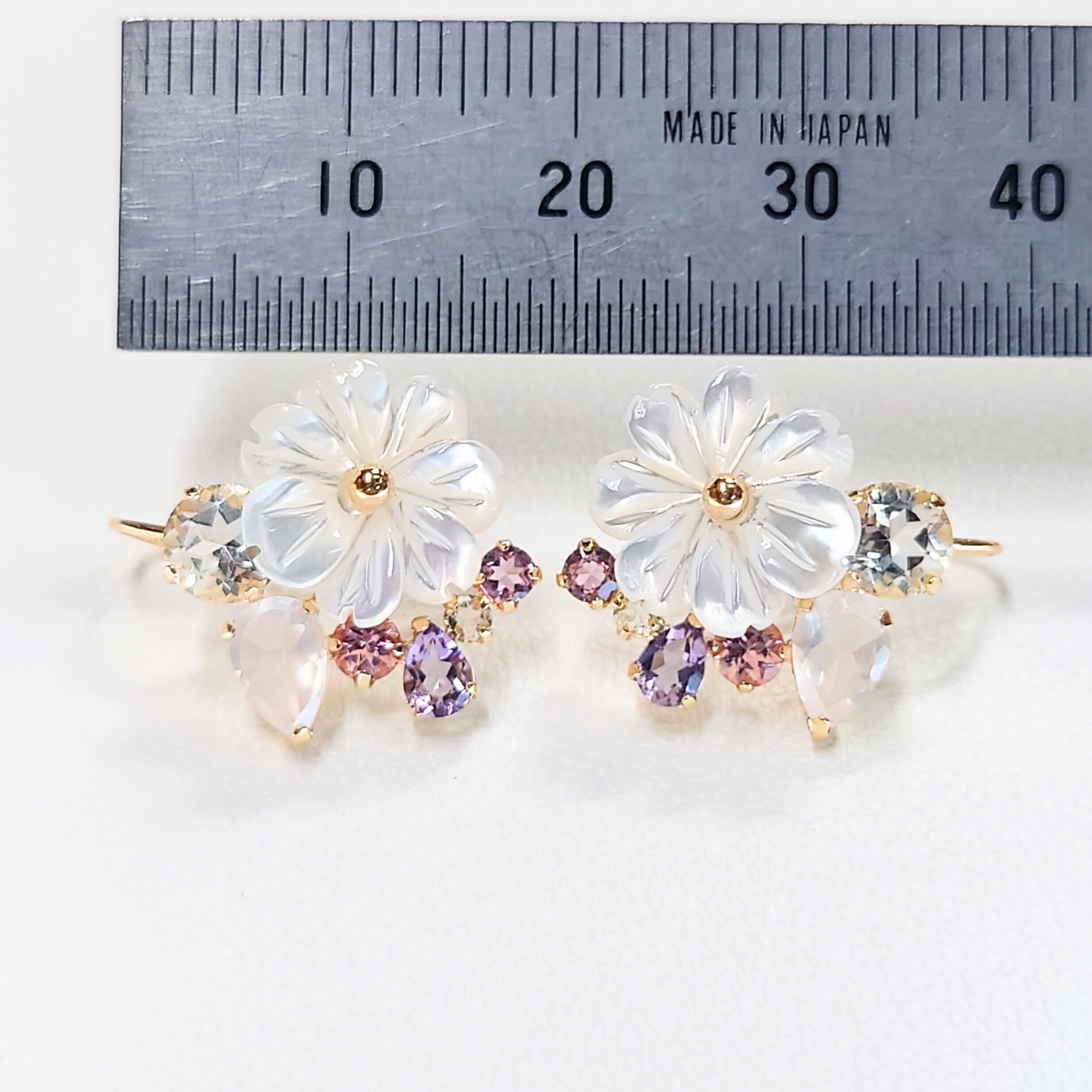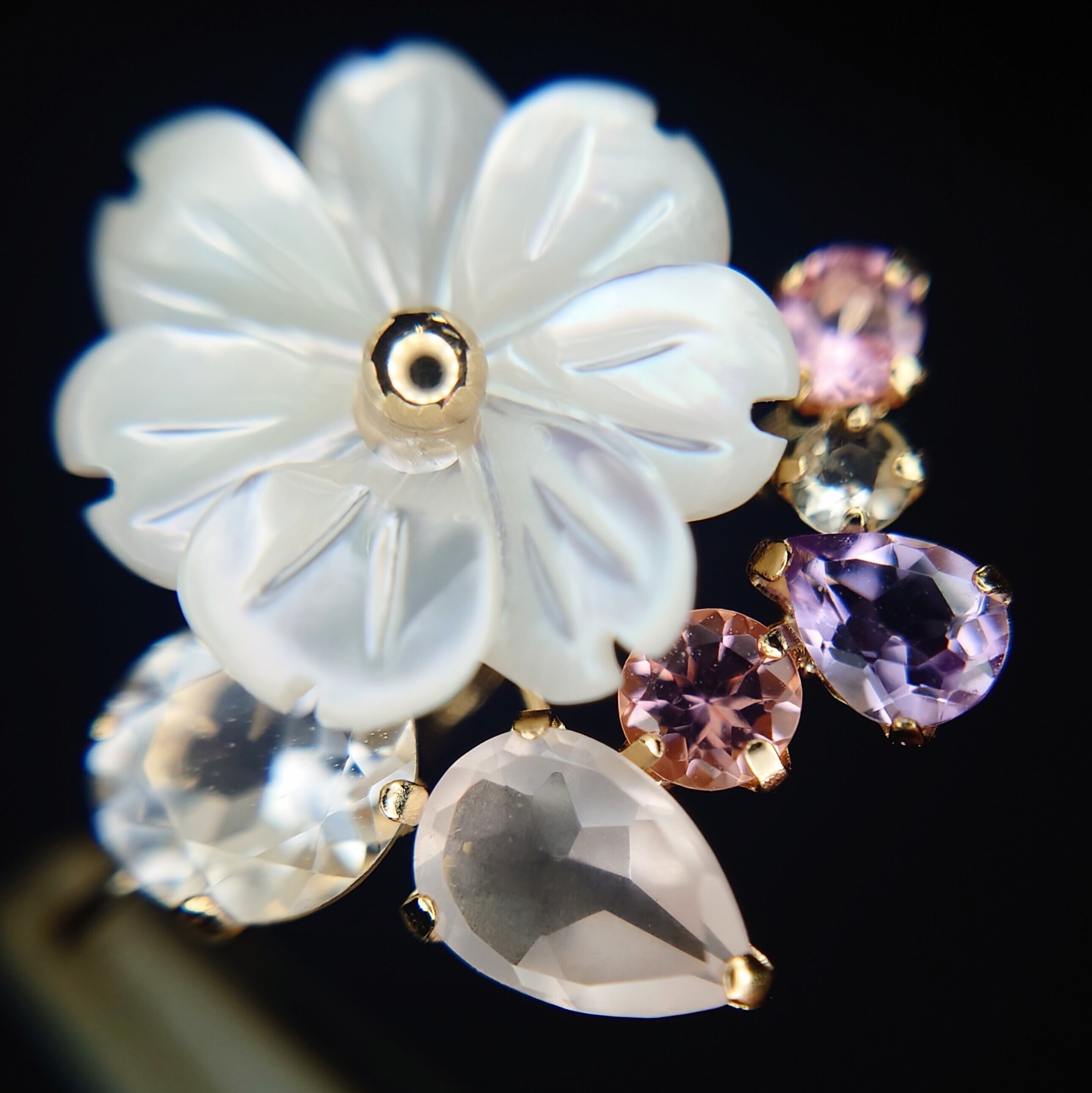 K18 イヤーカフ/ピアス WhiteTopaz/RoseQuartz/PinkTourmaline/Amethyst/Shell☆