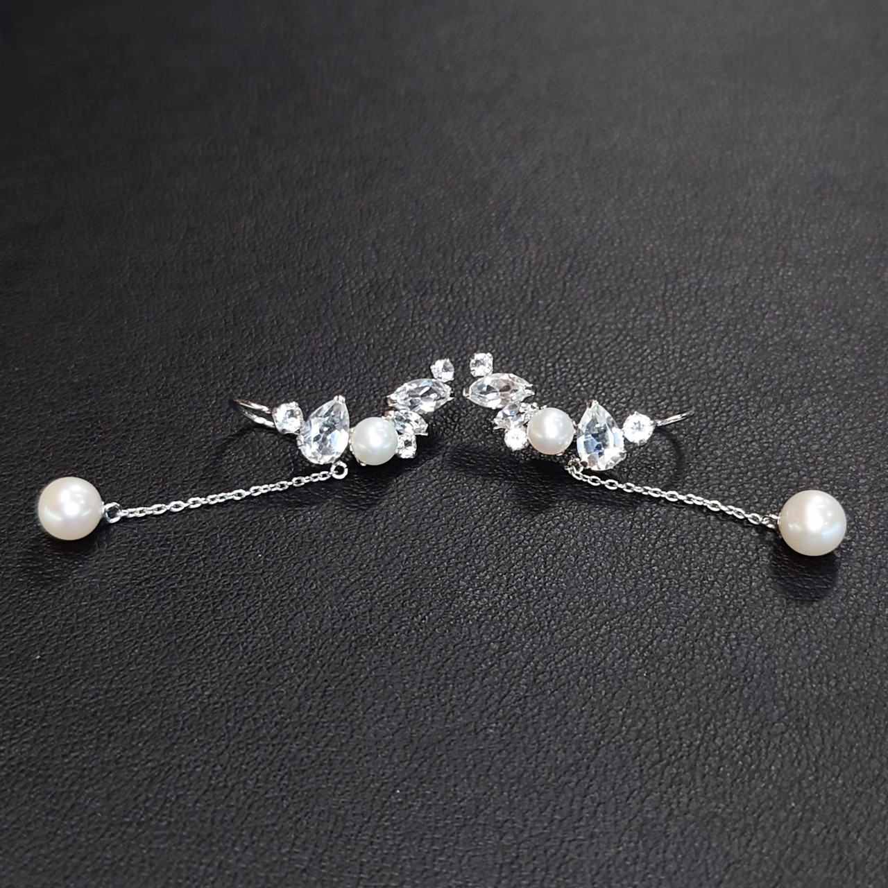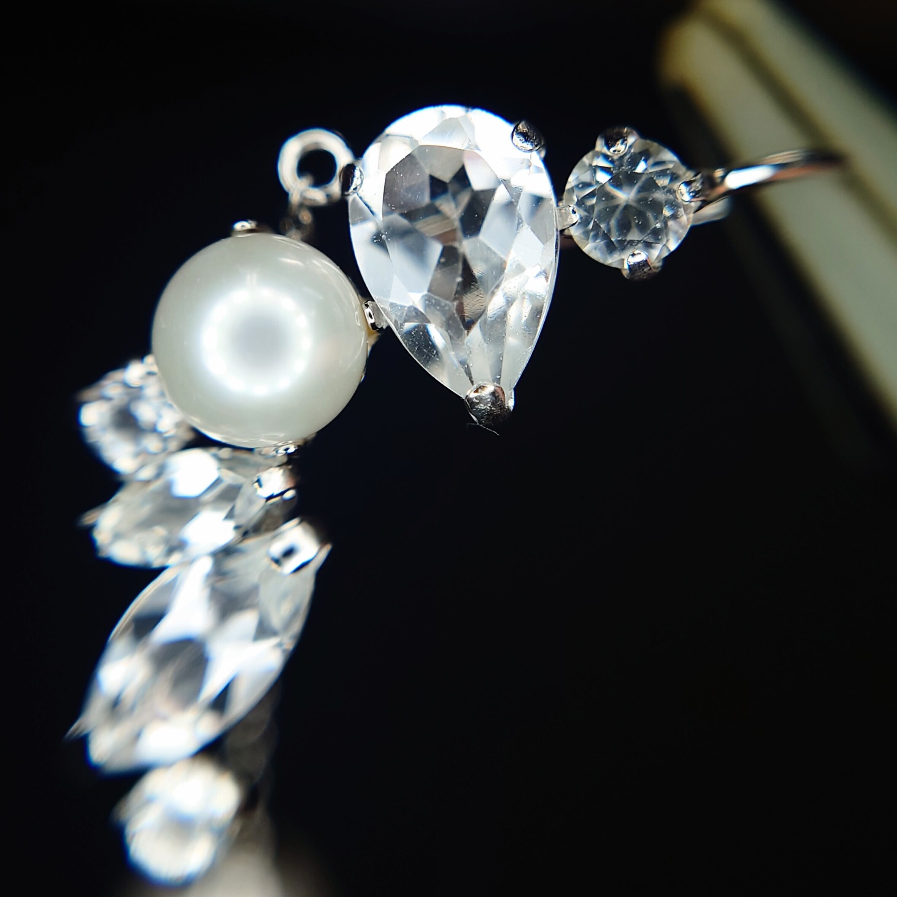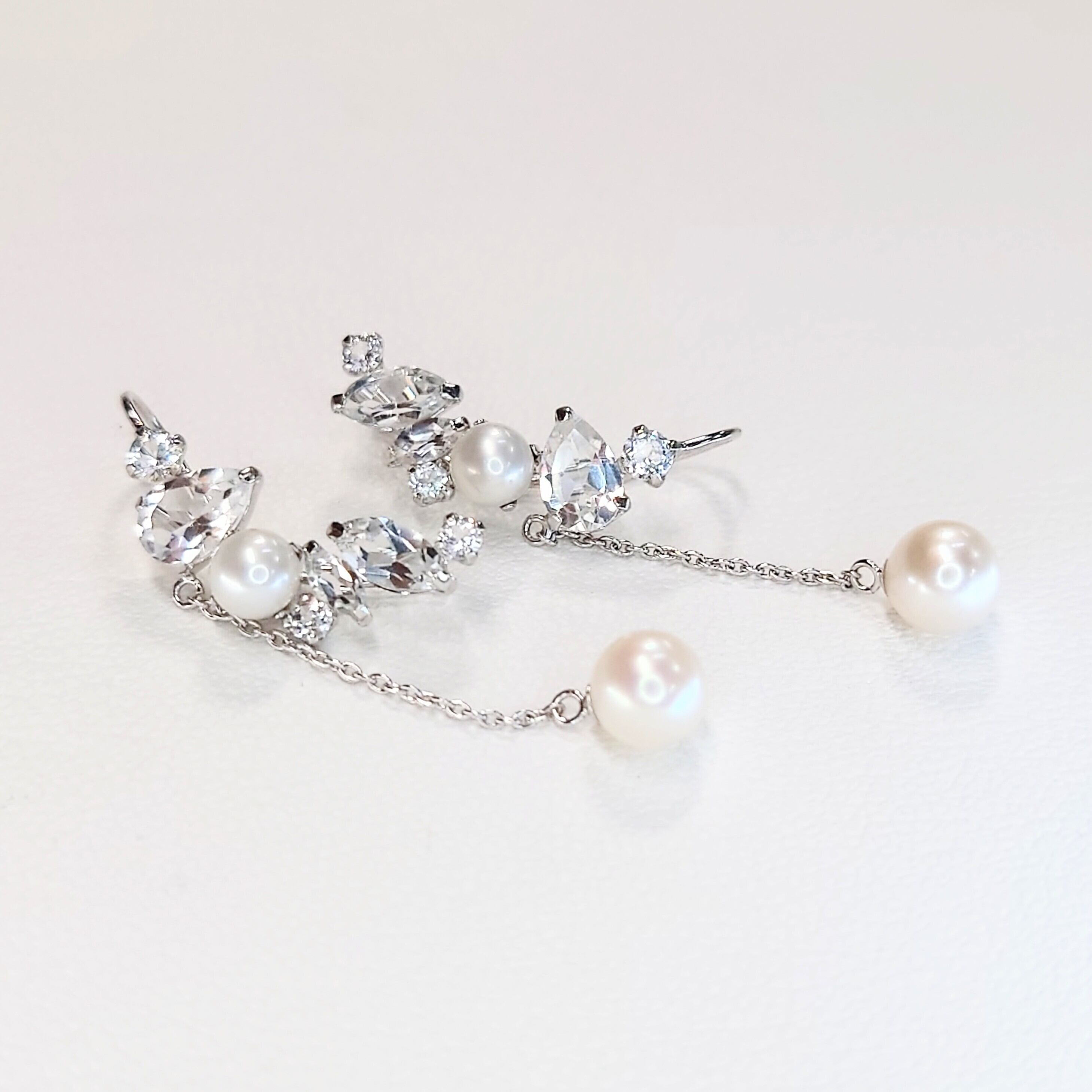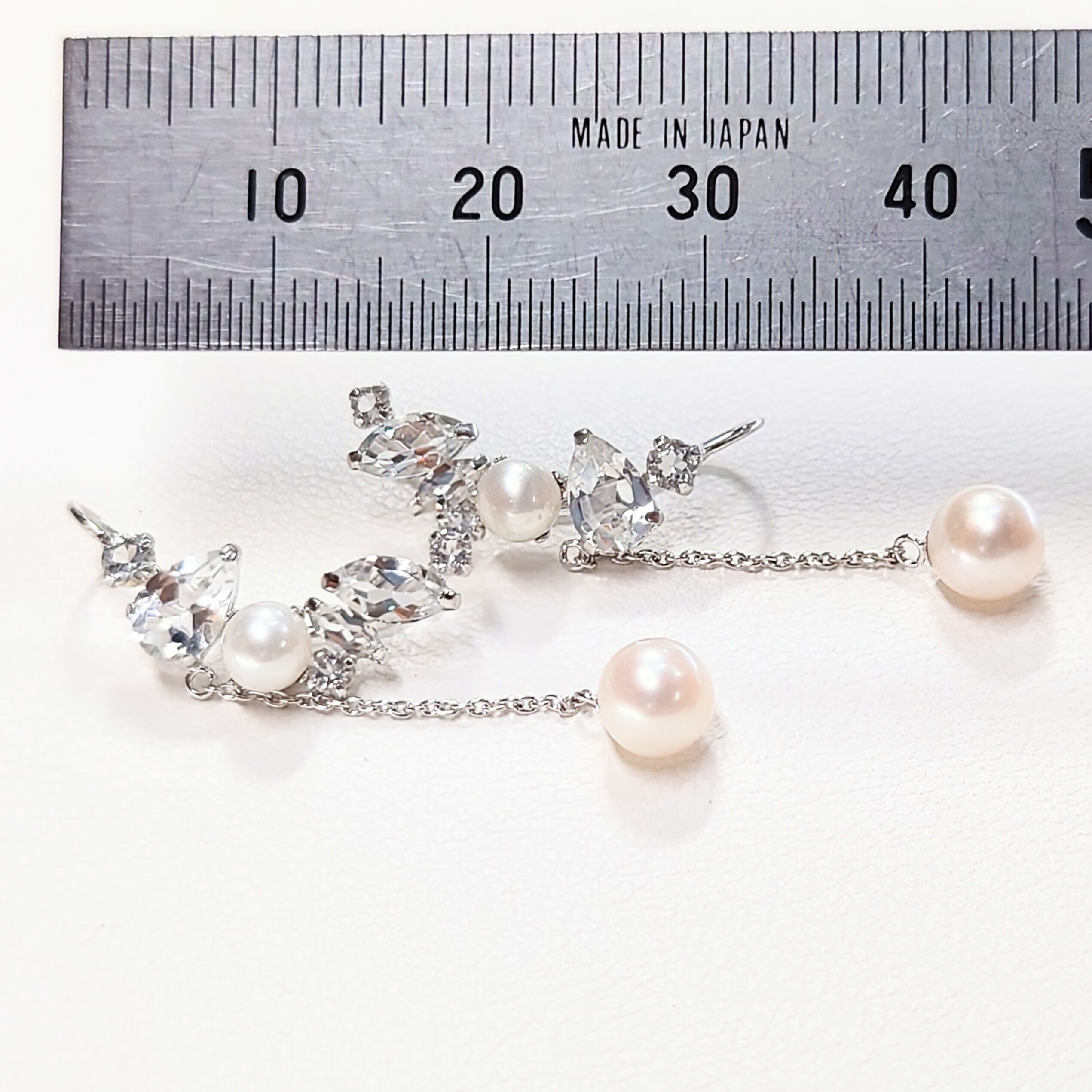 K14WG イヤーカフ/ピアス White Topaz/淡水パール ☆