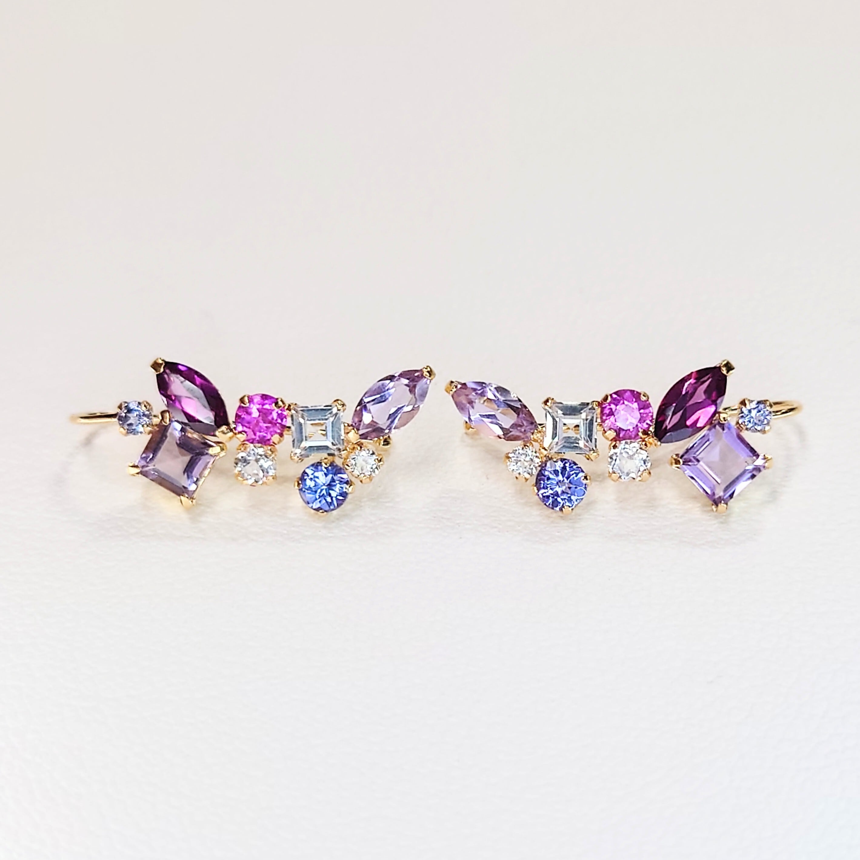 K18 イヤーカフ/ピアス WhiteTopaz/Tanzanite/Pink Sapphire/Amethyst☆