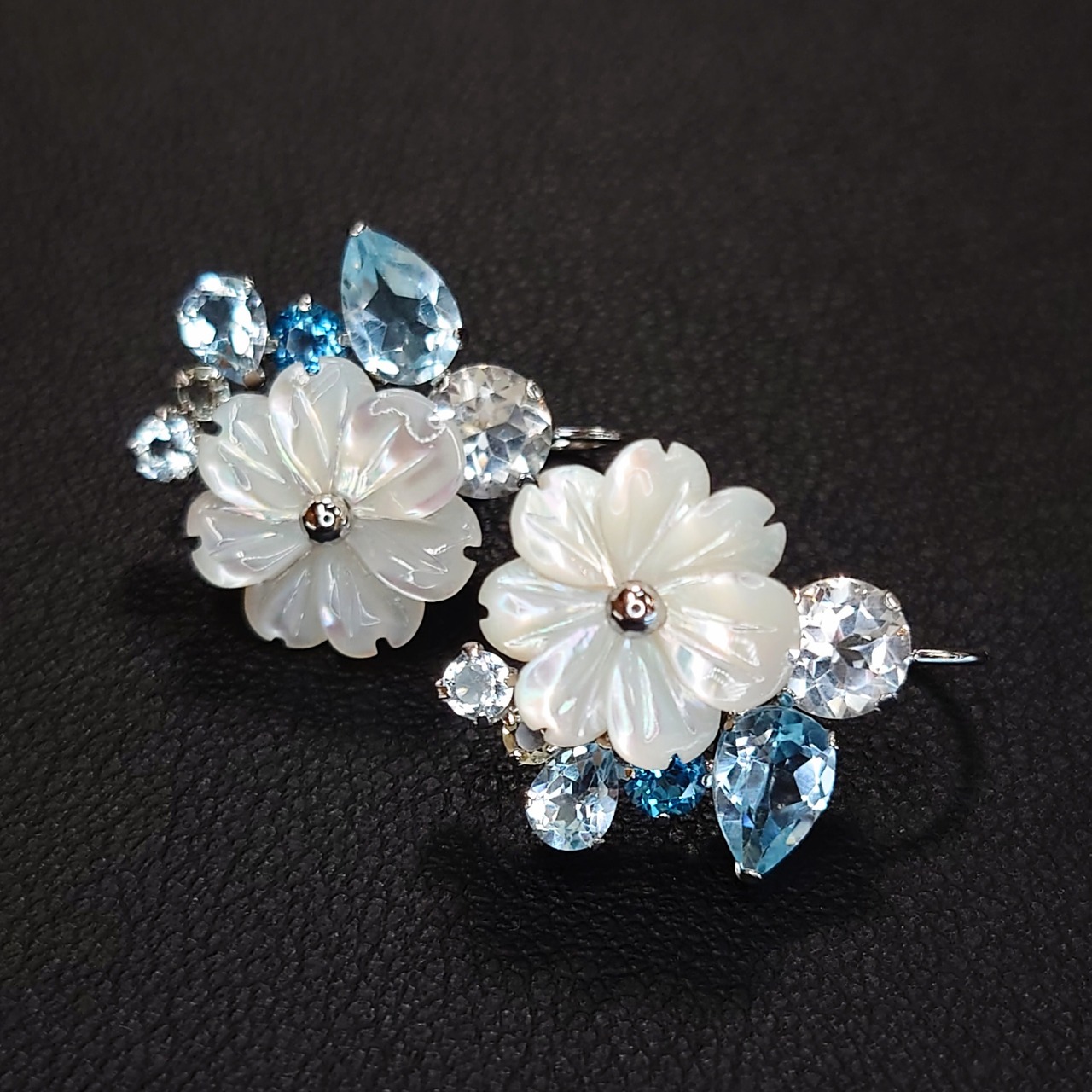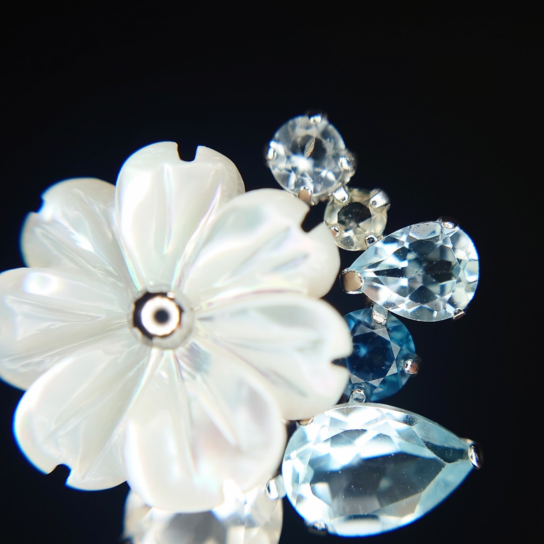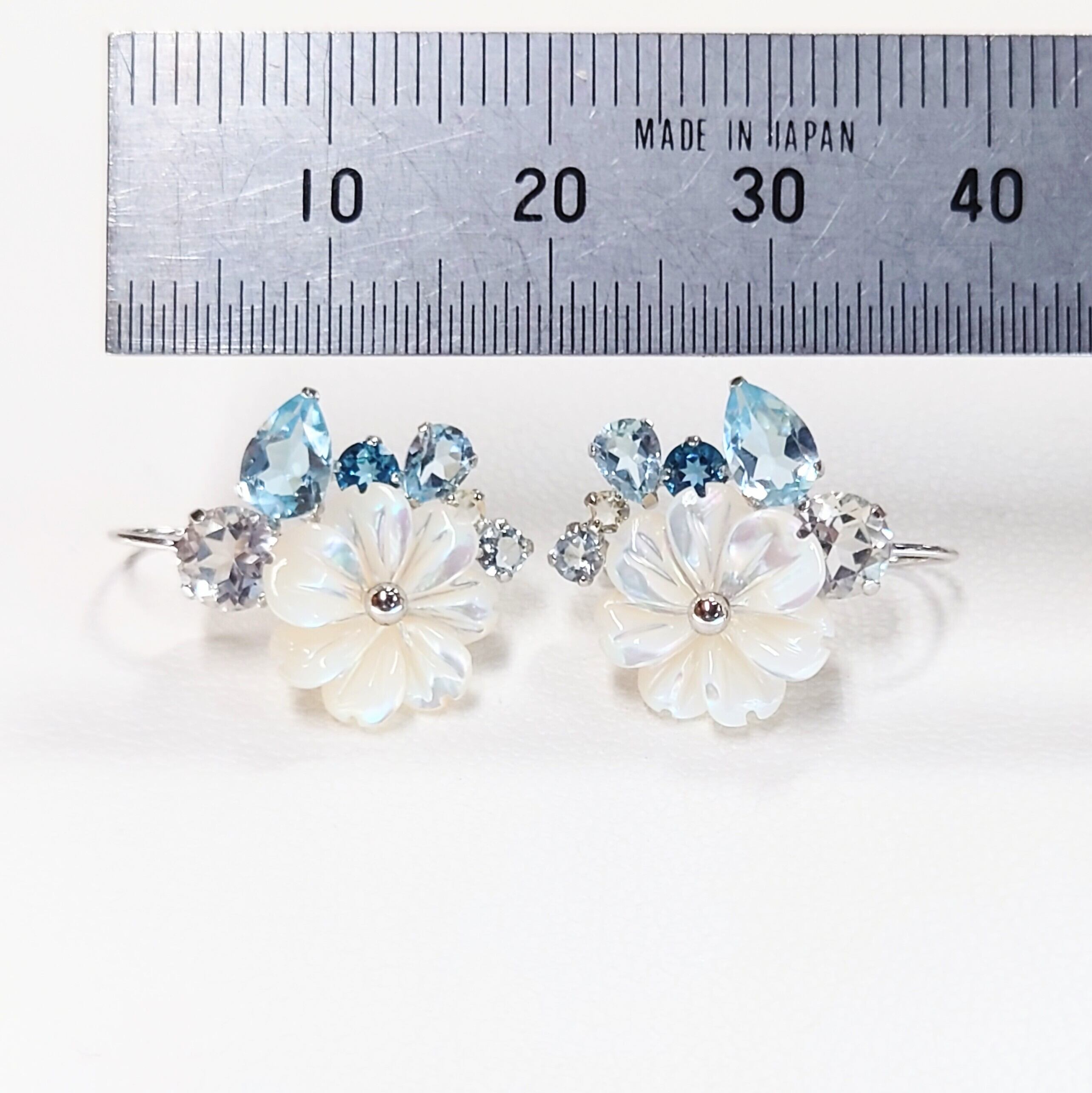 K14WG イヤーカフ/ピアス White Topaz/Blue Topaz/Honey Quartz/Aquamarine/Shell☆