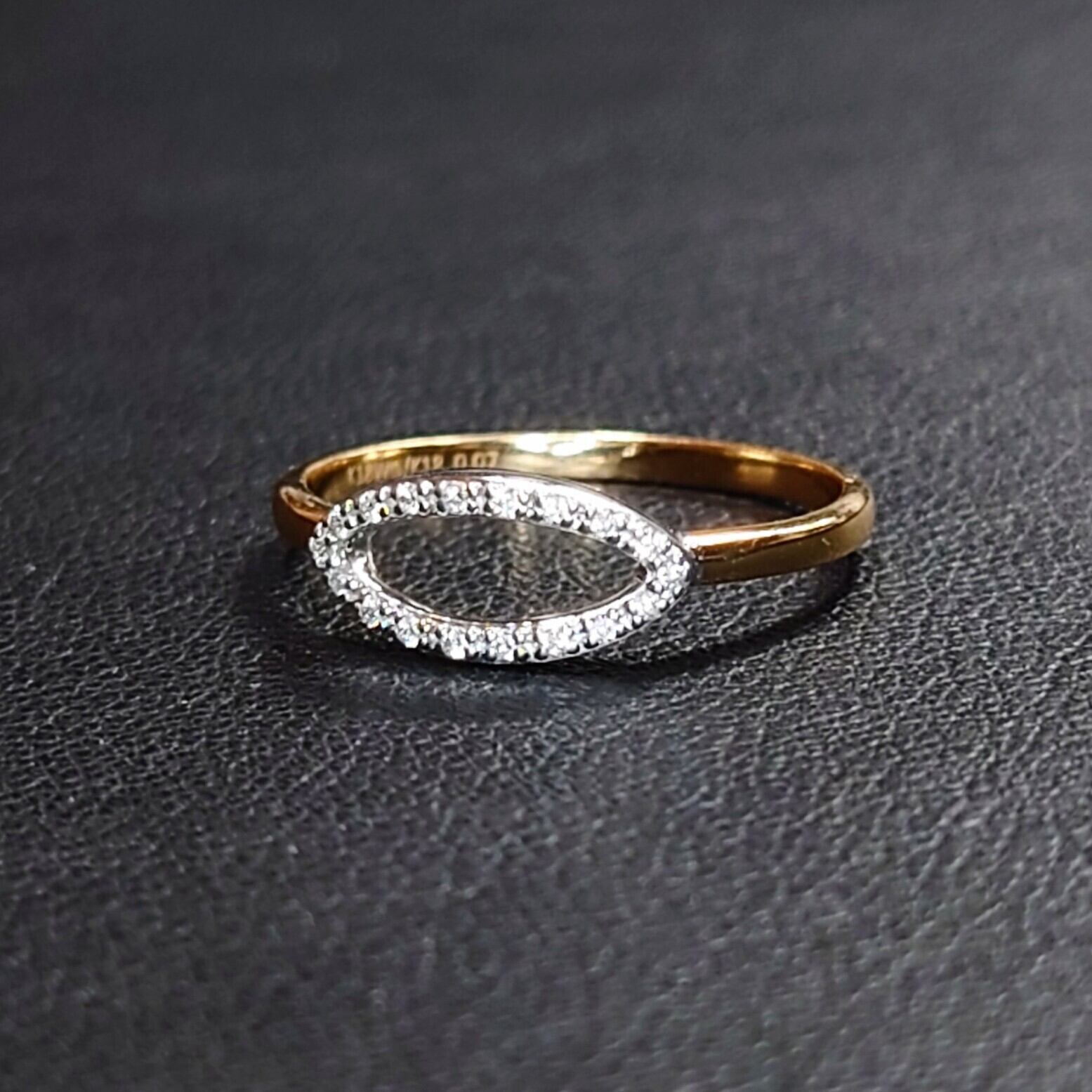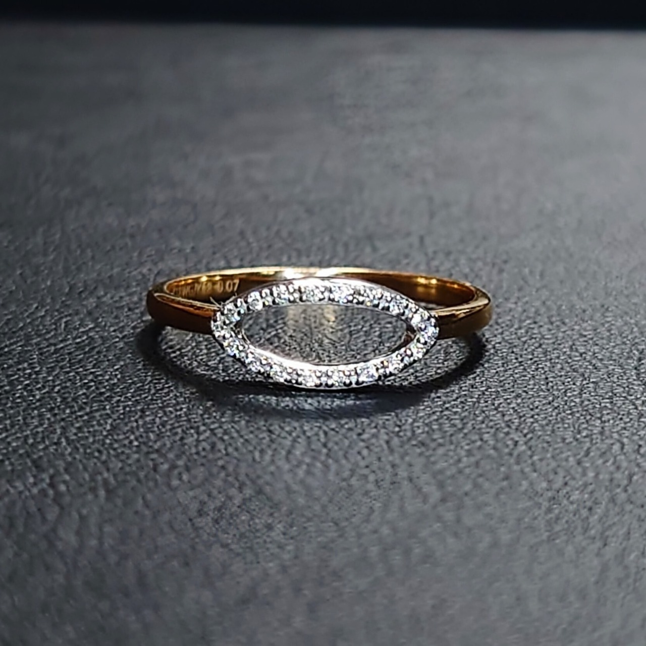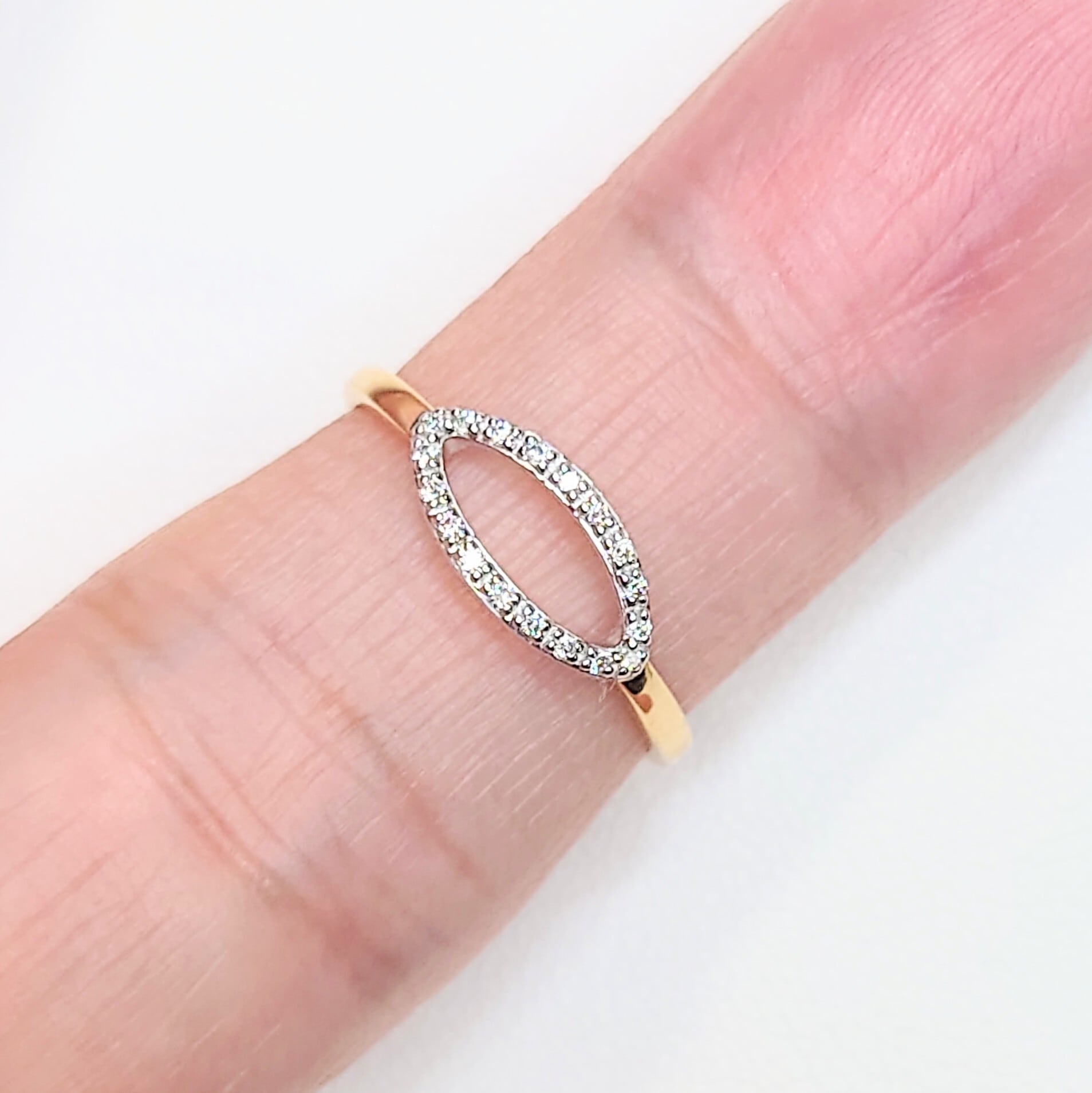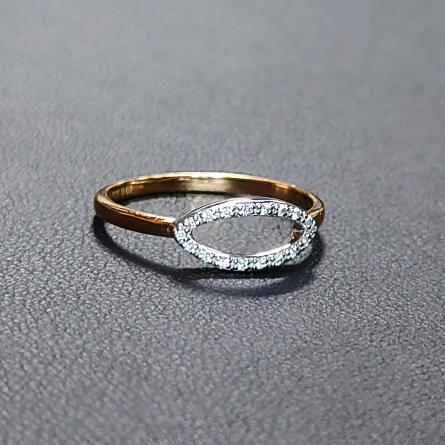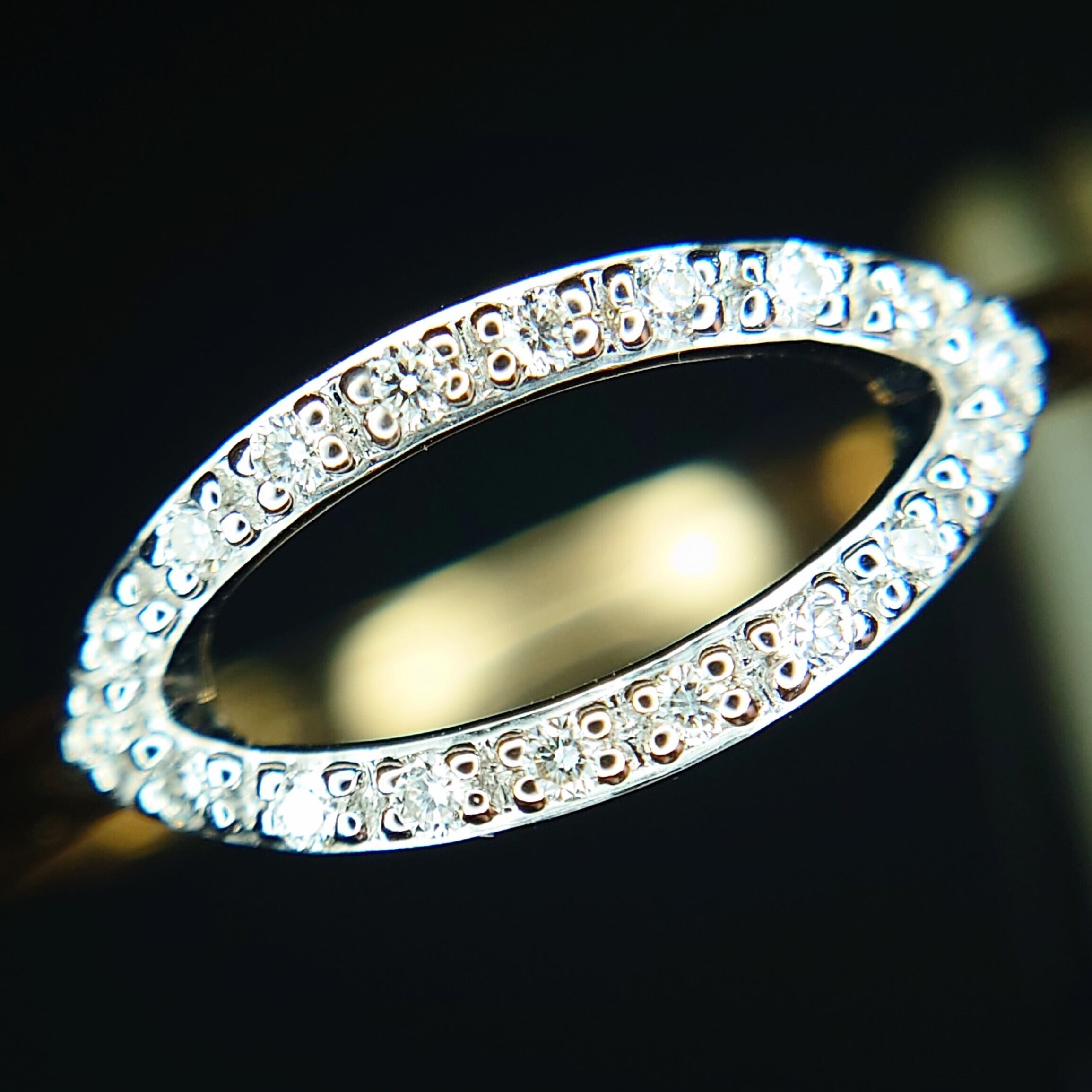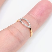 繊細なマーキスシェイプのフレームに、18石・計0.07ctのダイヤモンドを贅沢にセッティングした、洗練されたデザインのダイヤモンドリング。