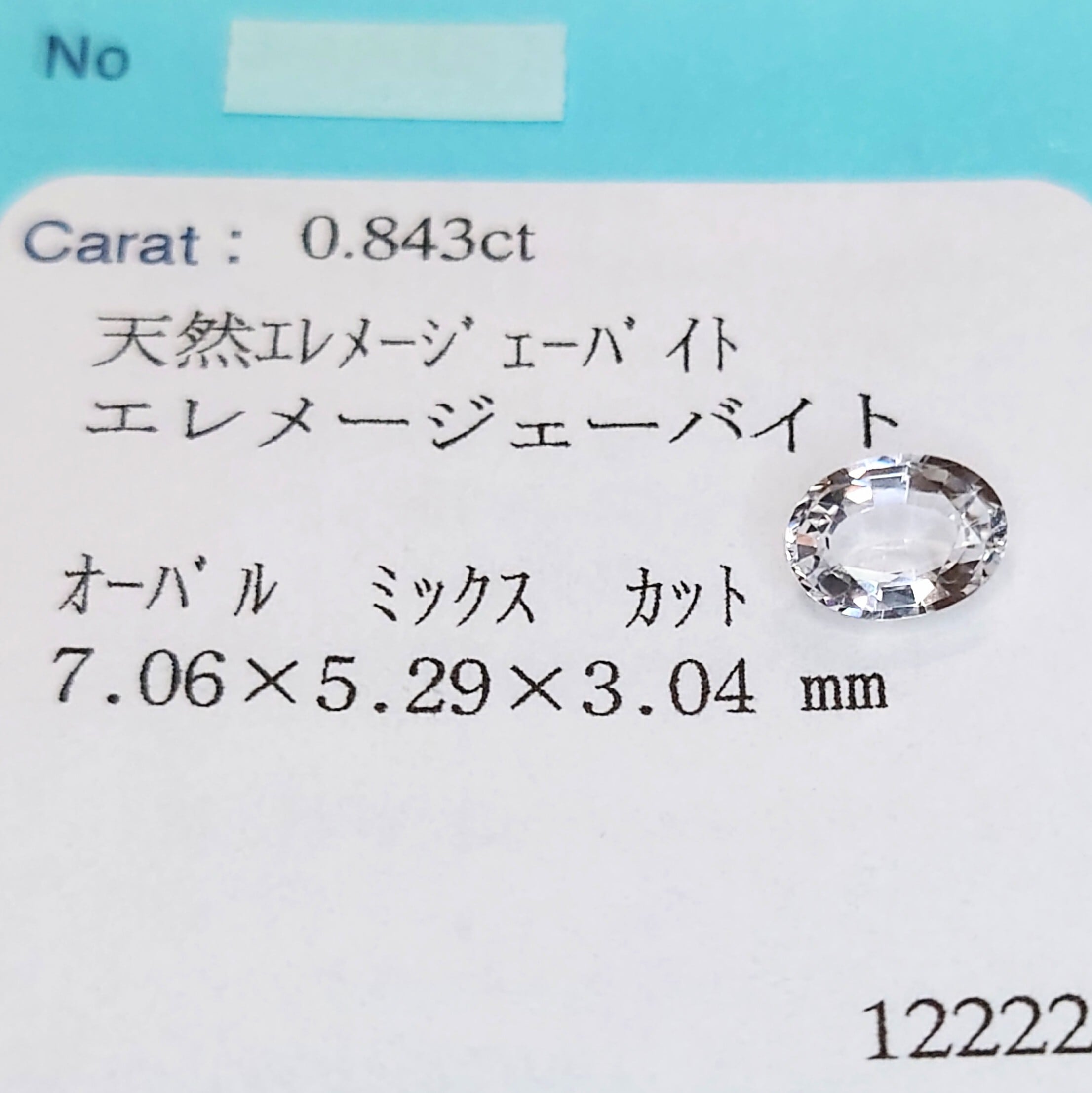 オーバル・ミックスカットにより、ジェレメジェバイト特有の高い透明度とクリーンな煌めきがバランス良く表現されており、ルース中央には目立つインクルージョンを感じさせない、非常に整った印象を与えます。