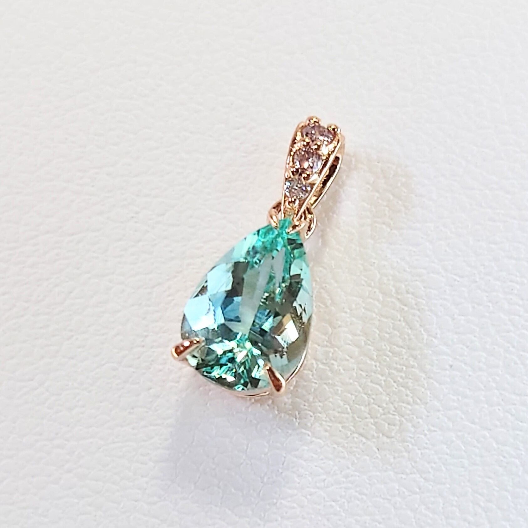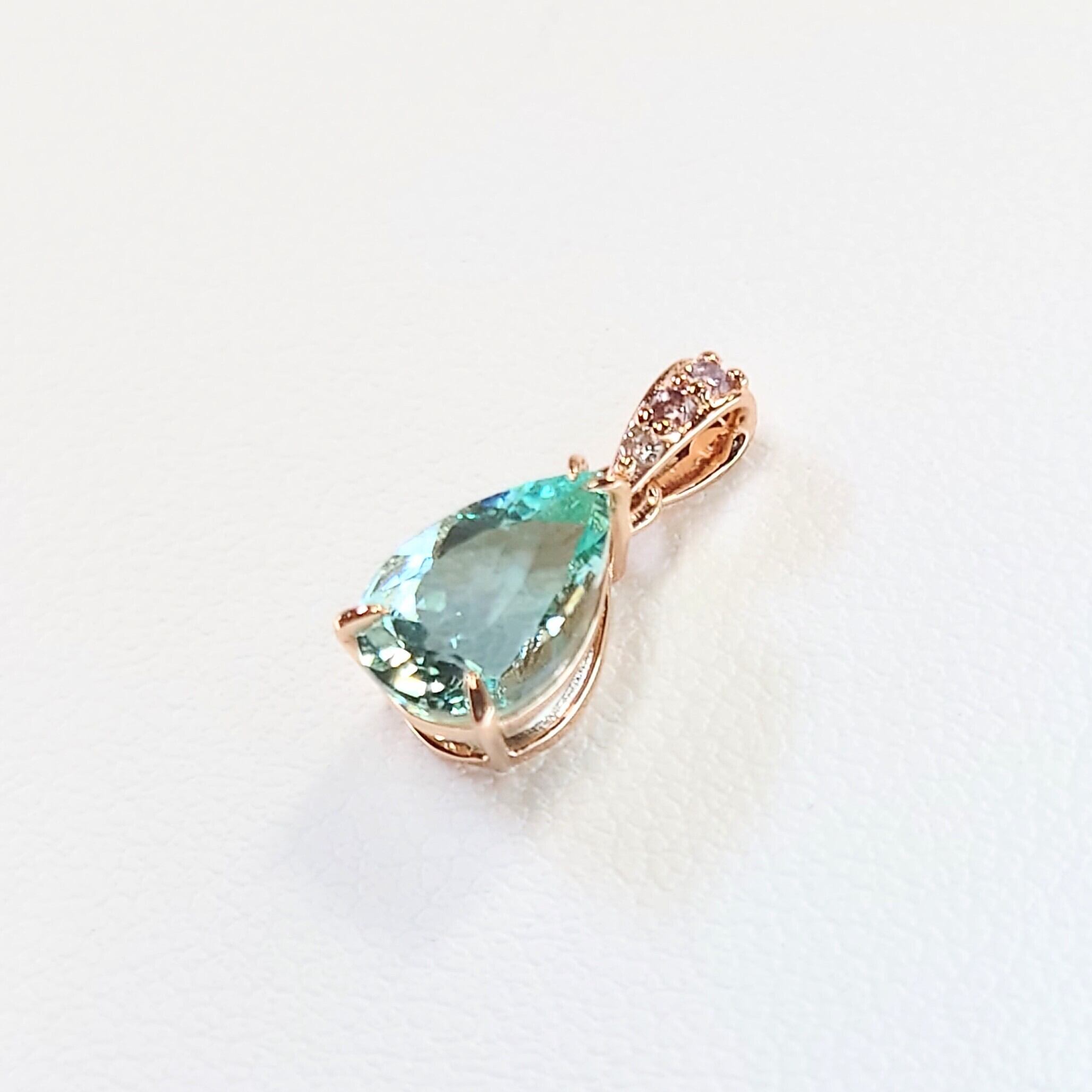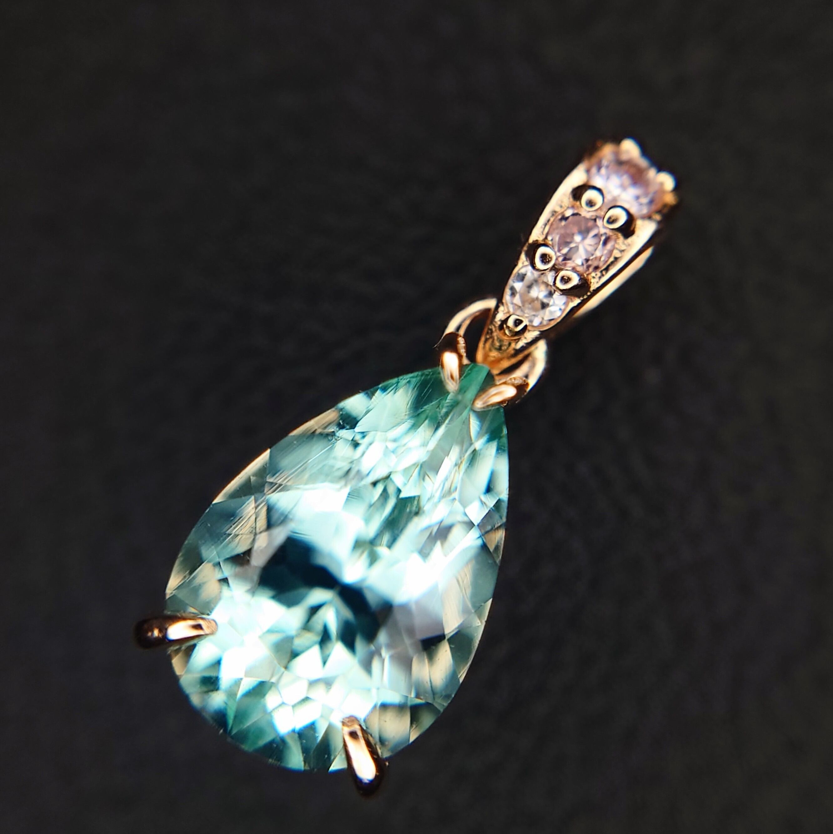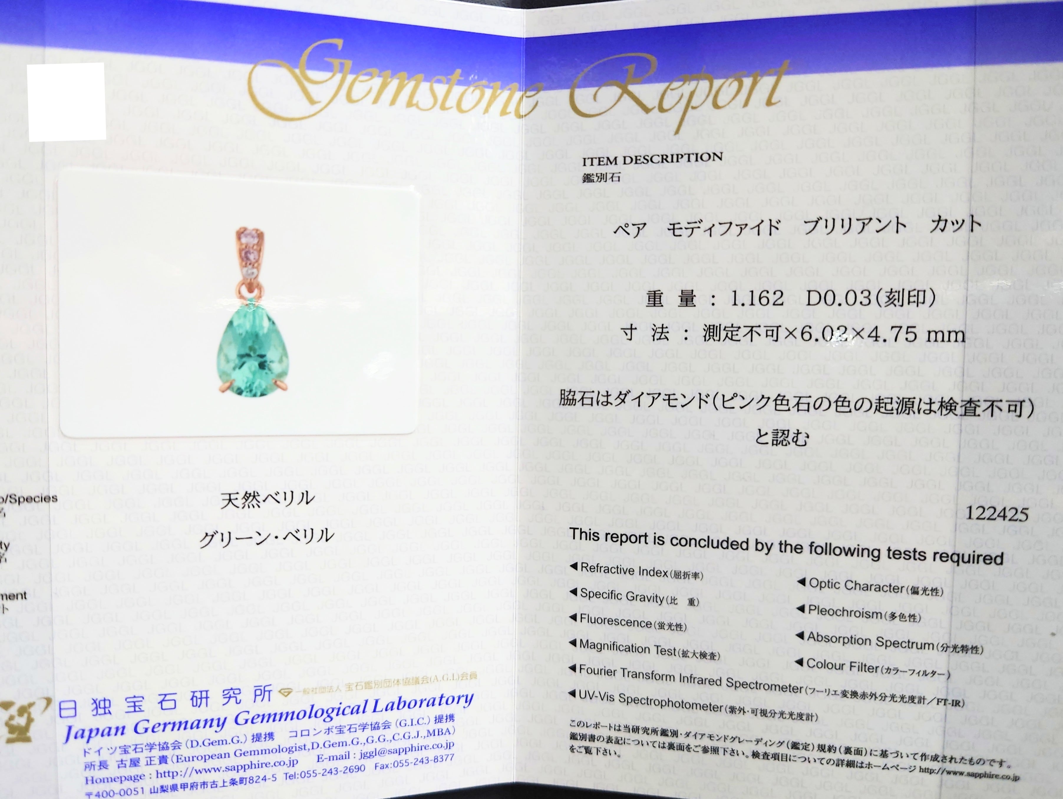 Order Made Pendant top K18PG Green Beryl 1.162ct / Pink Dia 0.03ct☆