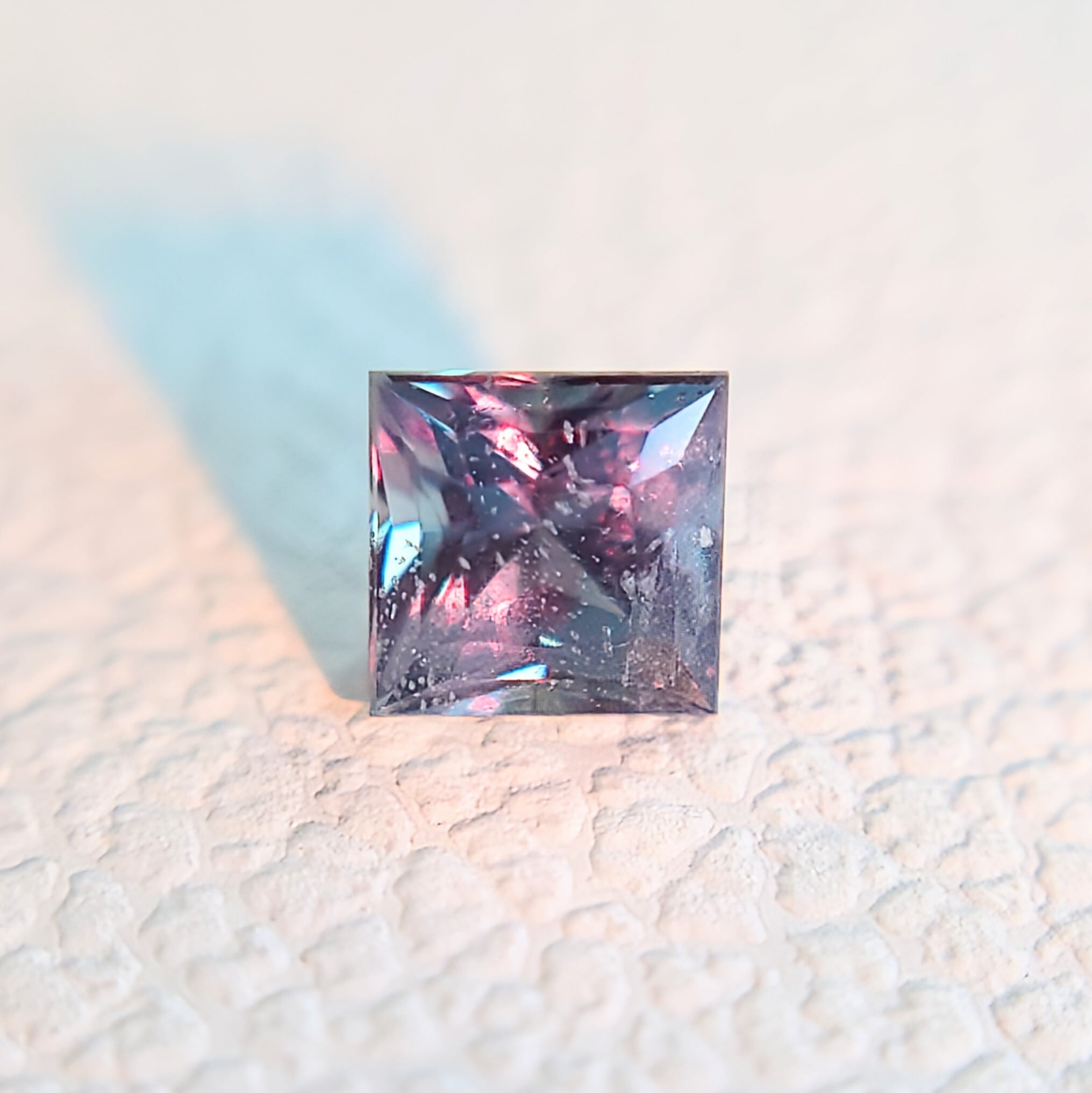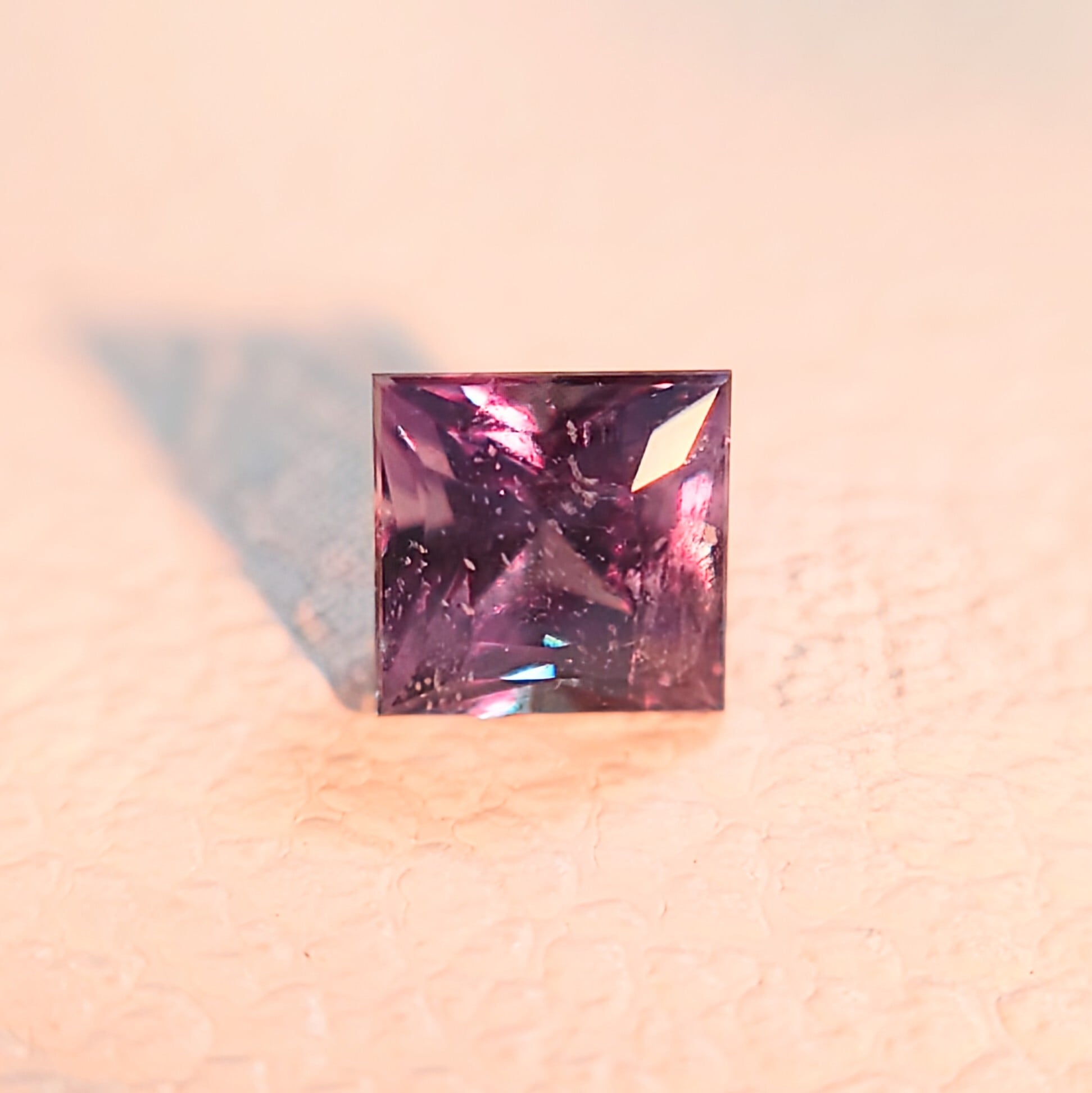 プリンセスカットを思わせる端正なフォルムは、ジュエリーへのセッティングにも最適で、シンプルなデザインでも高級感を引き立ててくれる一石です。