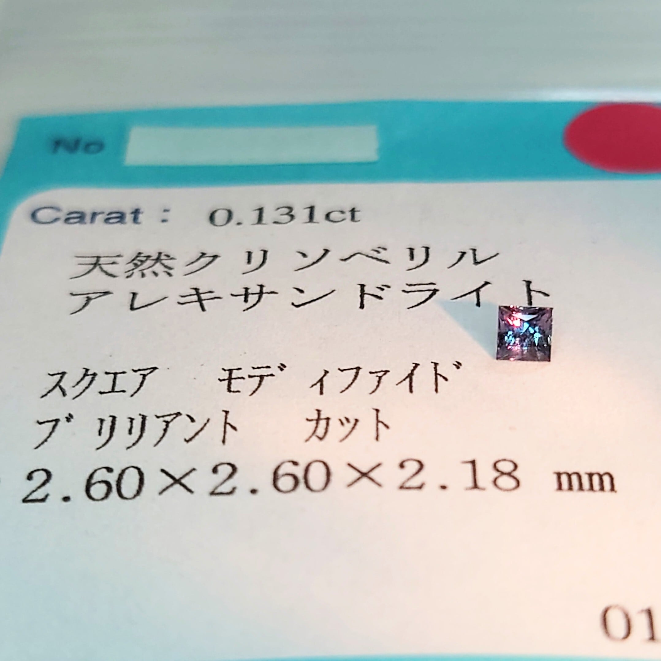 【ブラジル産 アレキサンドライト 0.131ct スクエアモディファイドブリリアント】