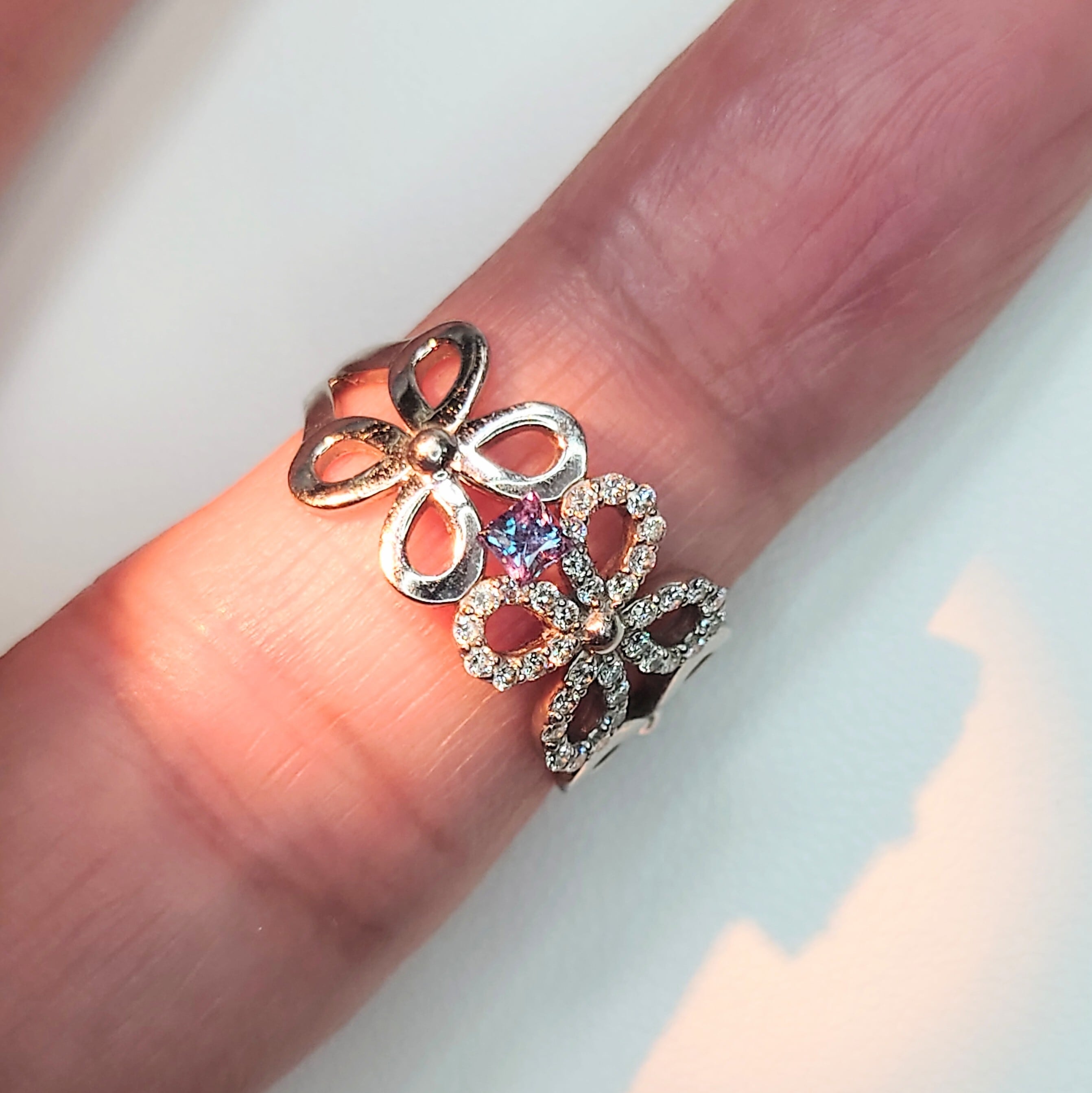 昼光ではクールなブルーグリーン、白熱灯下では鮮やかなパープルへと表情を変える、まさに「カメレオンストーン」と呼ばれるアレキサンドライト。