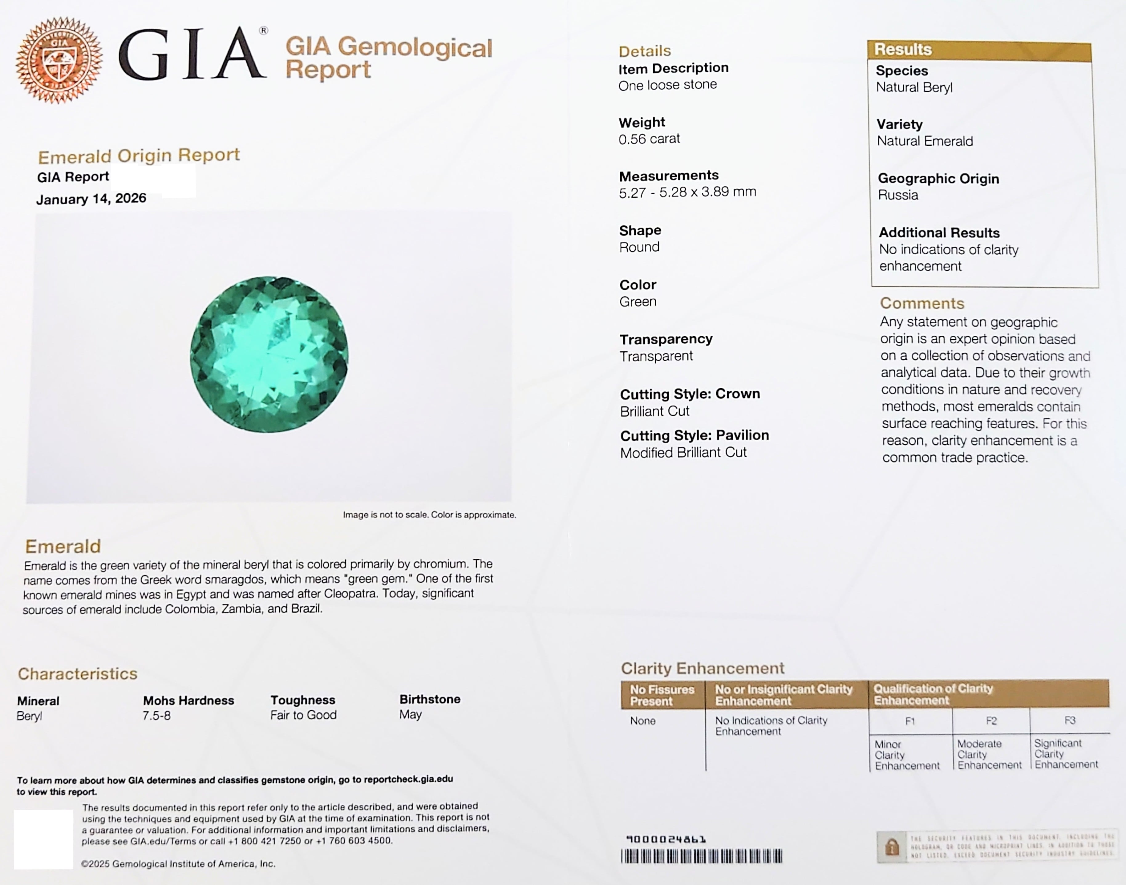付属:GIA Emerald Origin Report