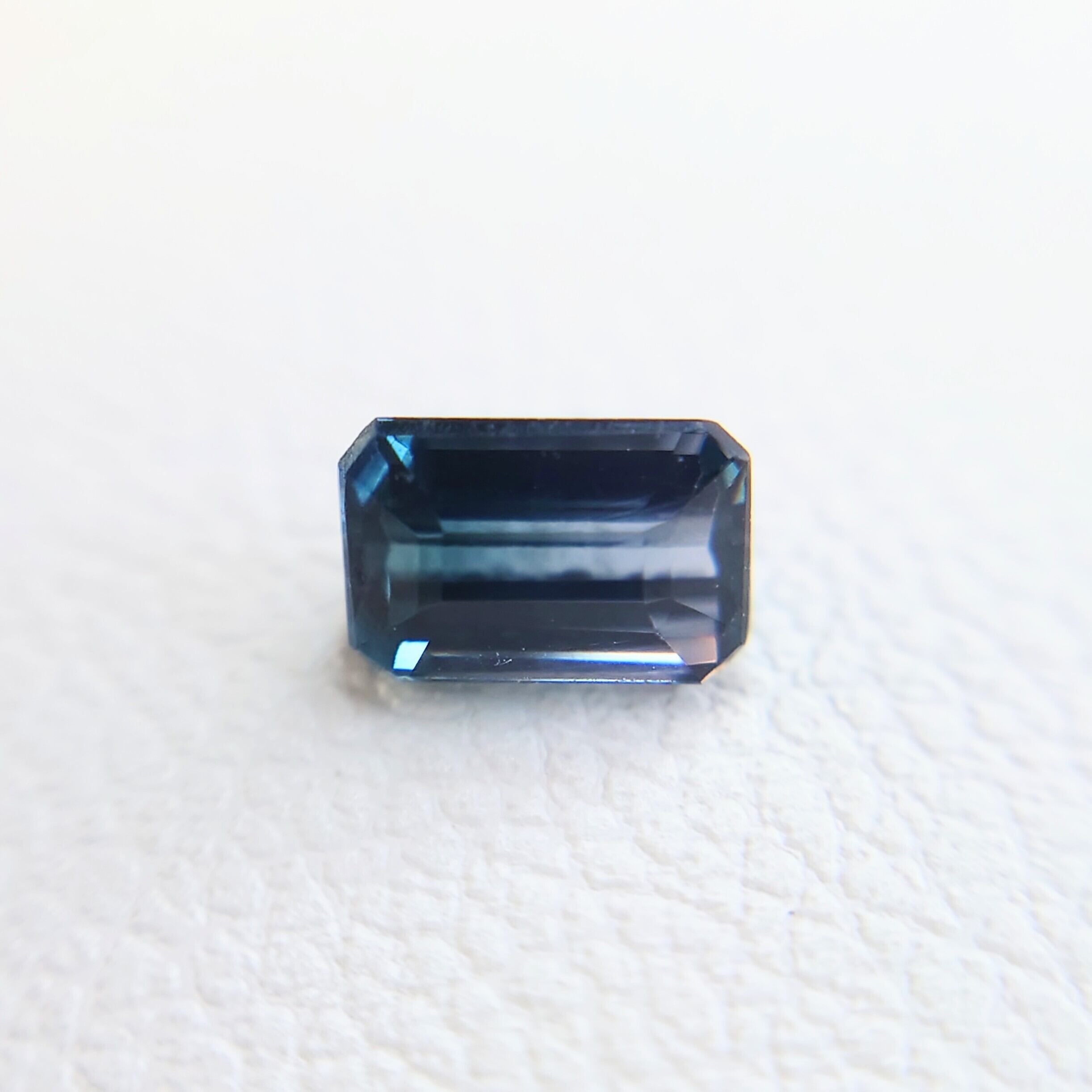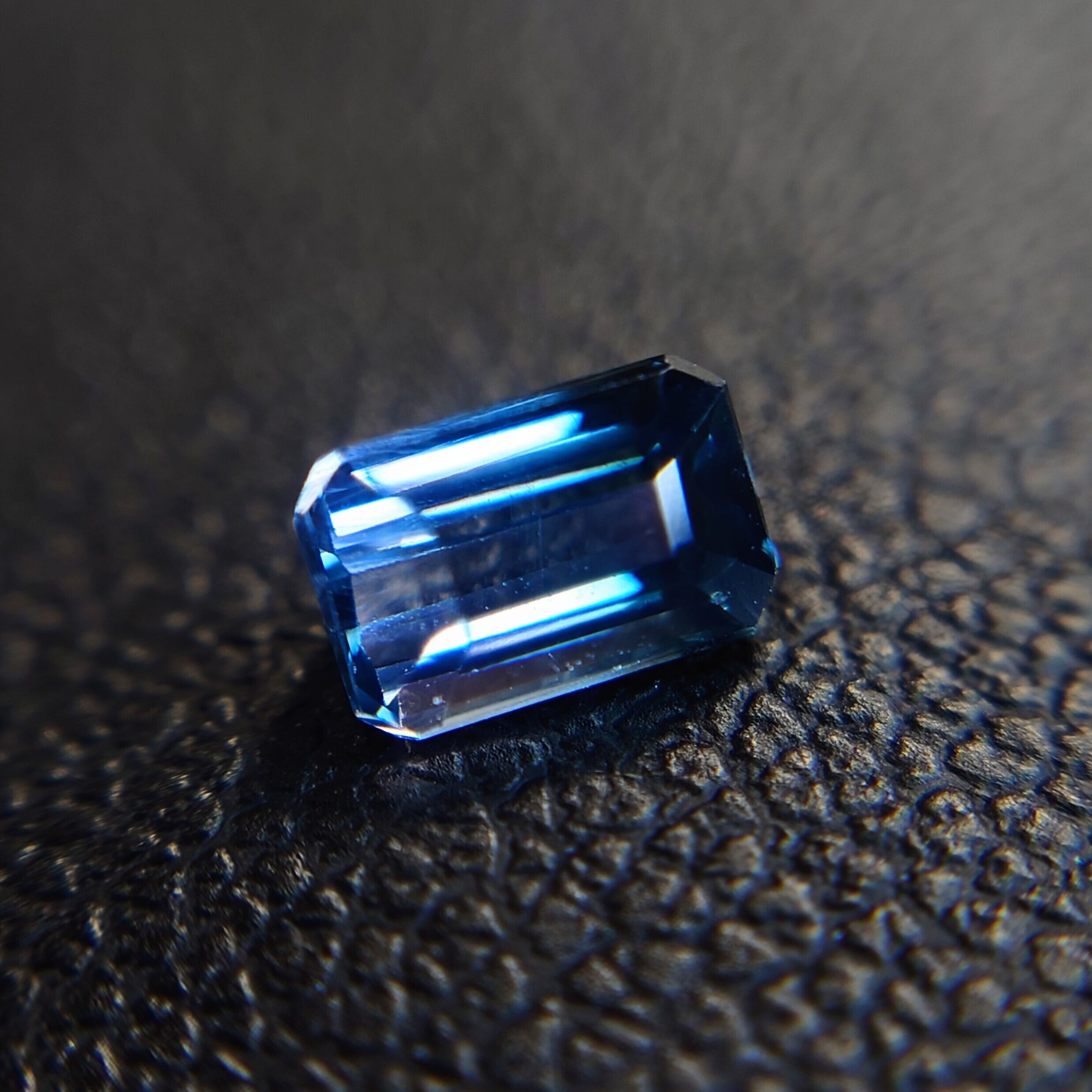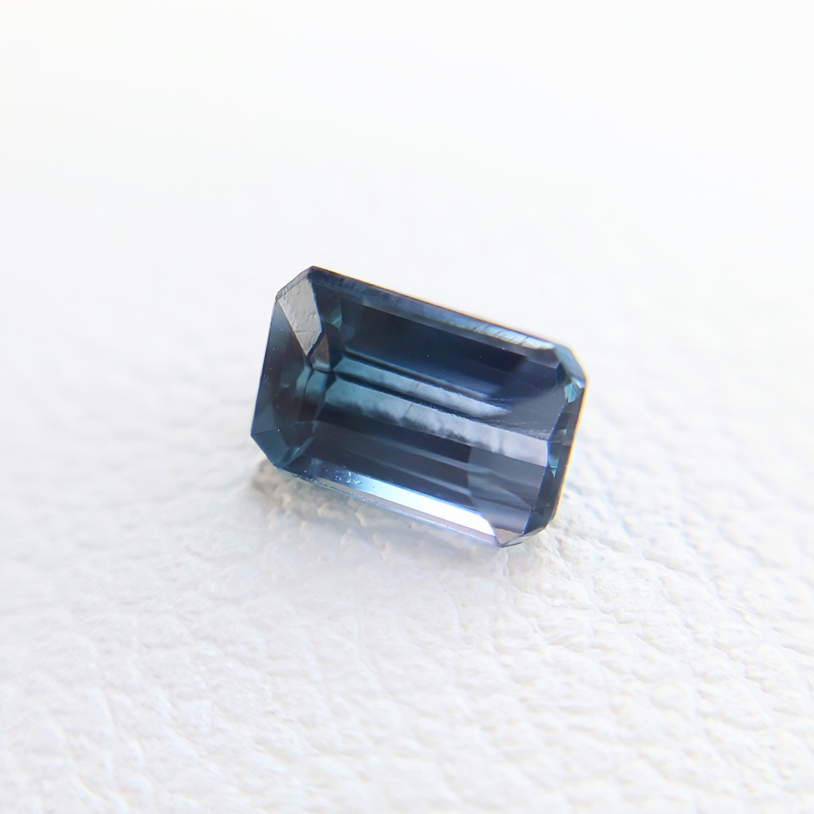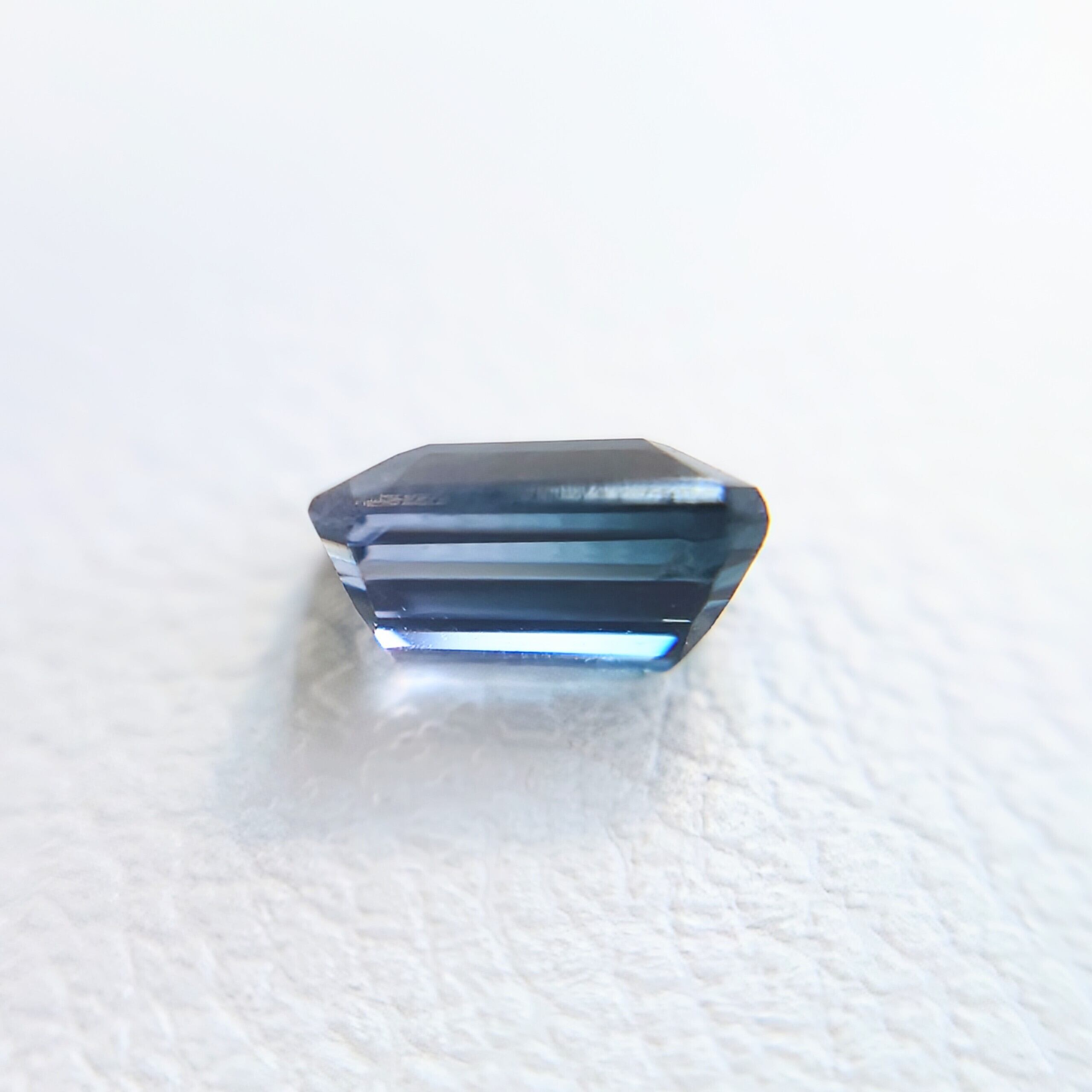 エメラルドカットならではの端正なフォルムが、色の境界を直線的かつシャープに映し出し、スピネル特有の高い透明感と艶やかな照りを際立たせています。光の角度によって、クールなネイビーブルーにも、落ち着いたヴァイオレット調にも表情を変え、見るたびに異なる魅力を楽しめる一石です。