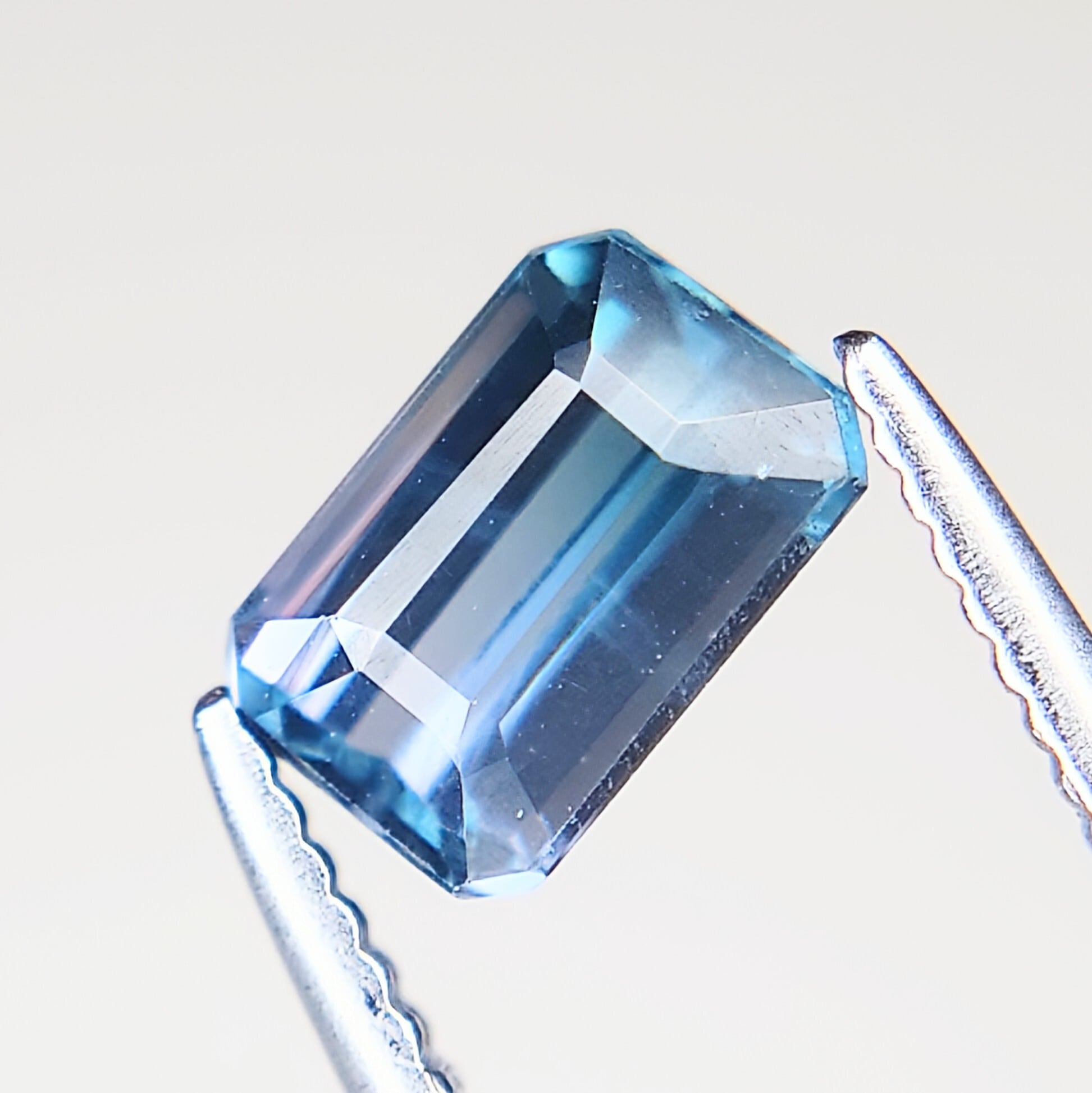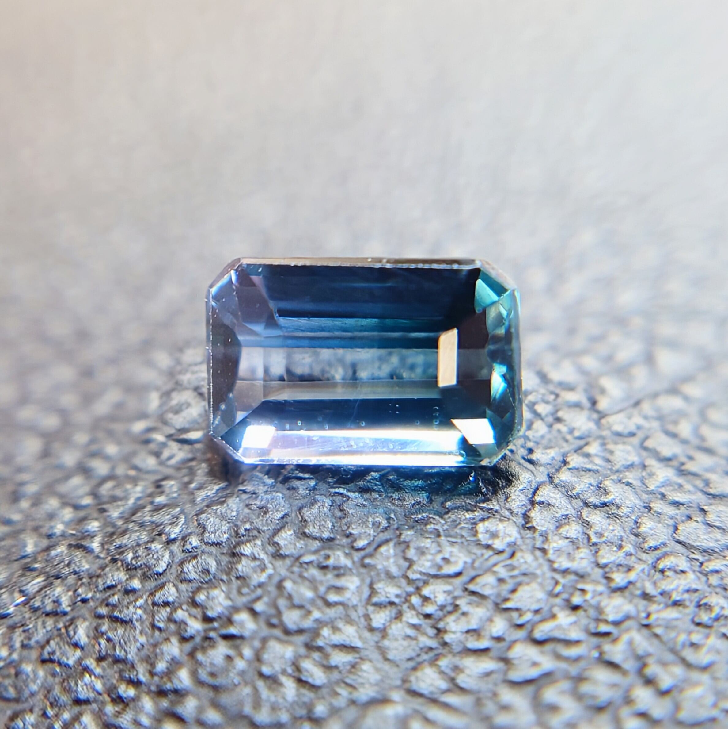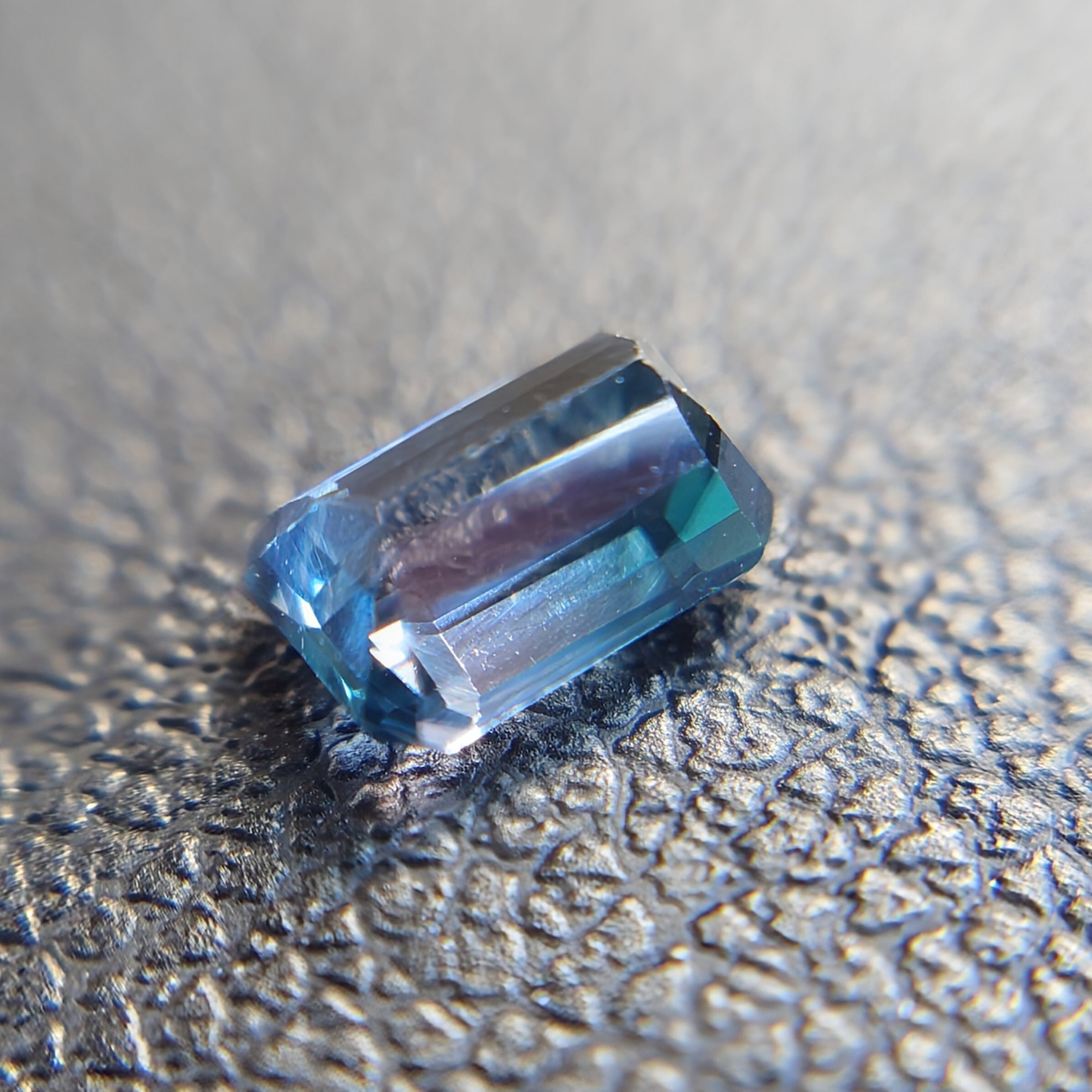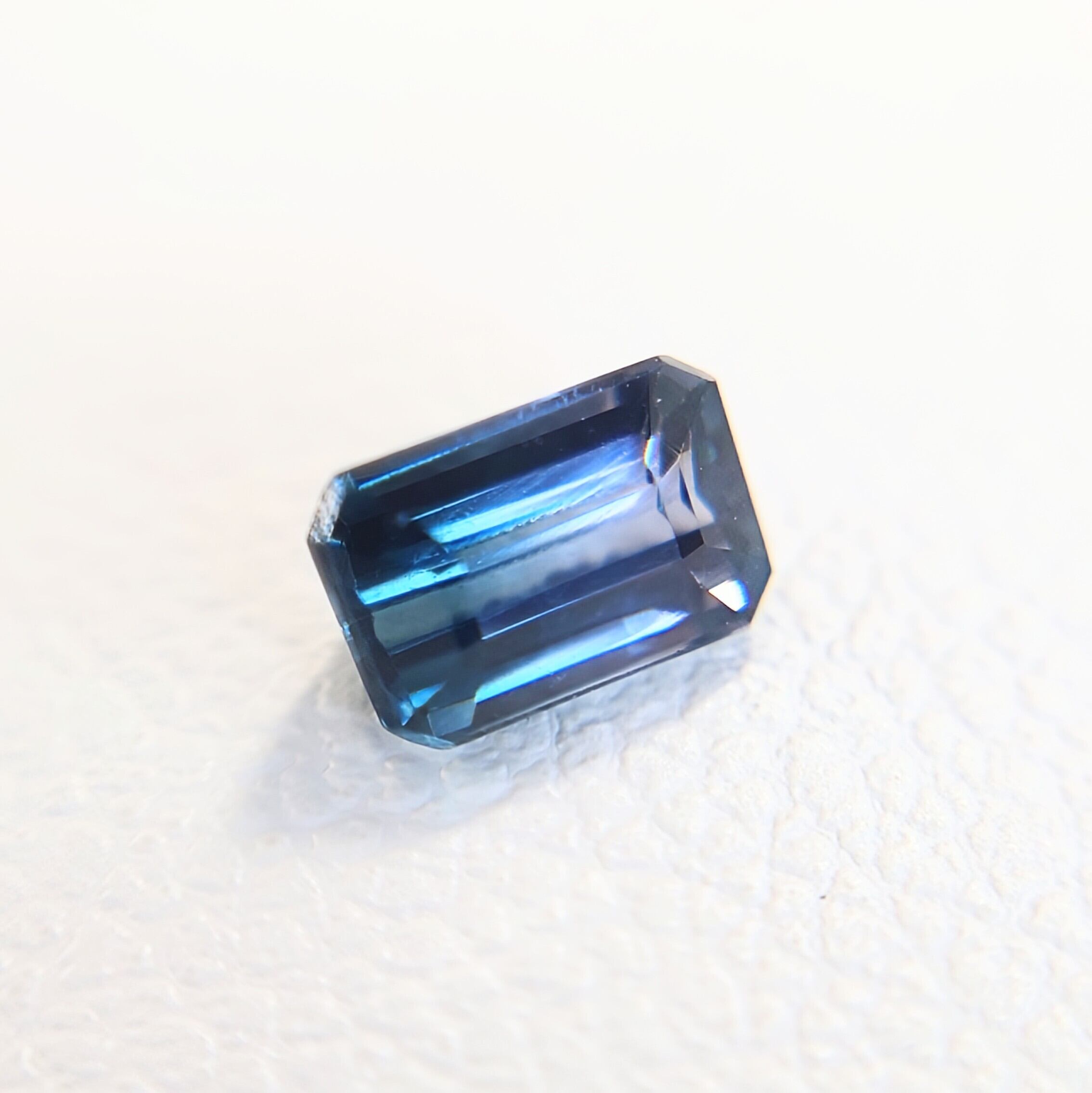 エメラルドカットならではの端正なフォルムが、色の境界を直線的かつシャープに映し出し、スピネル特有の高い透明感と艶やかな照りを際立たせています。光の角度によって、クールなネイビーブルーにも、落ち着いたヴァイオレット調にも表情を変え、見るたびに異なる魅力を楽しめる一石です。