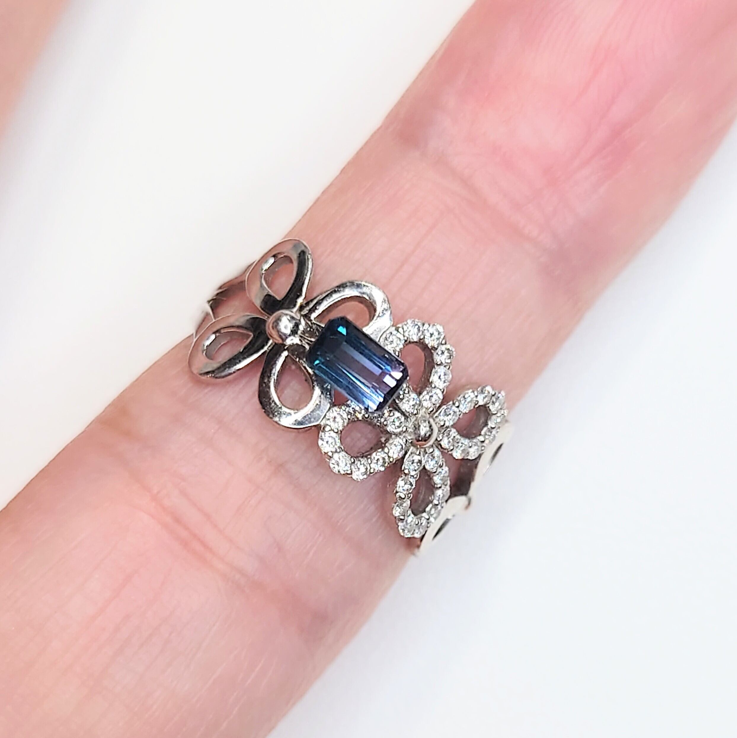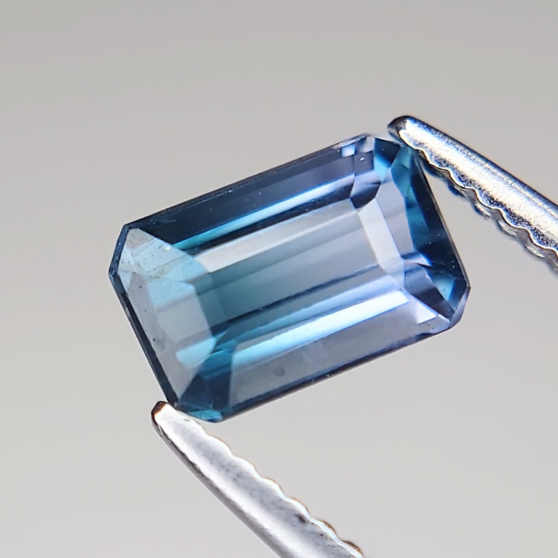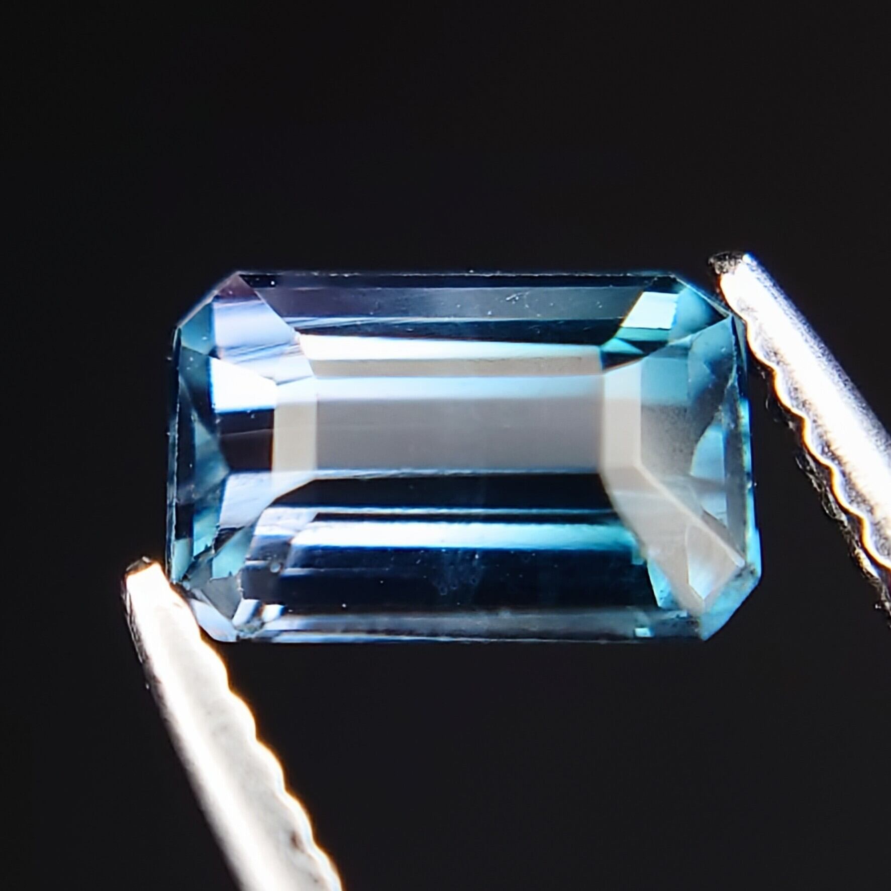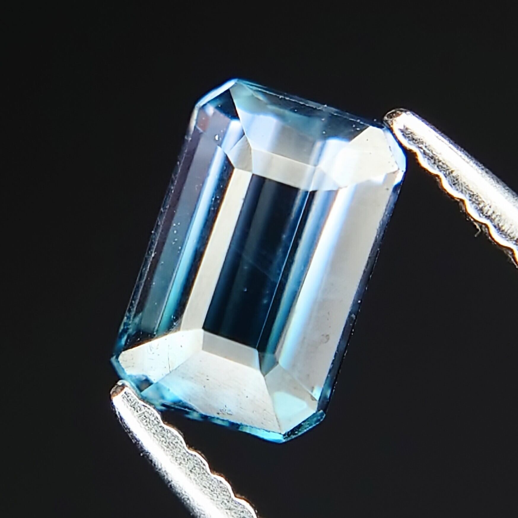 エメラルドカットならではの端正なフォルムが、色の境界を直線的かつシャープに映し出し、スピネル特有の高い透明感と艶やかな照りを際立たせています。光の角度によって、クールなネイビーブルーにも、落ち着いたヴァイオレット調にも表情を変え、見るたびに異なる魅力を楽しめる一石です。