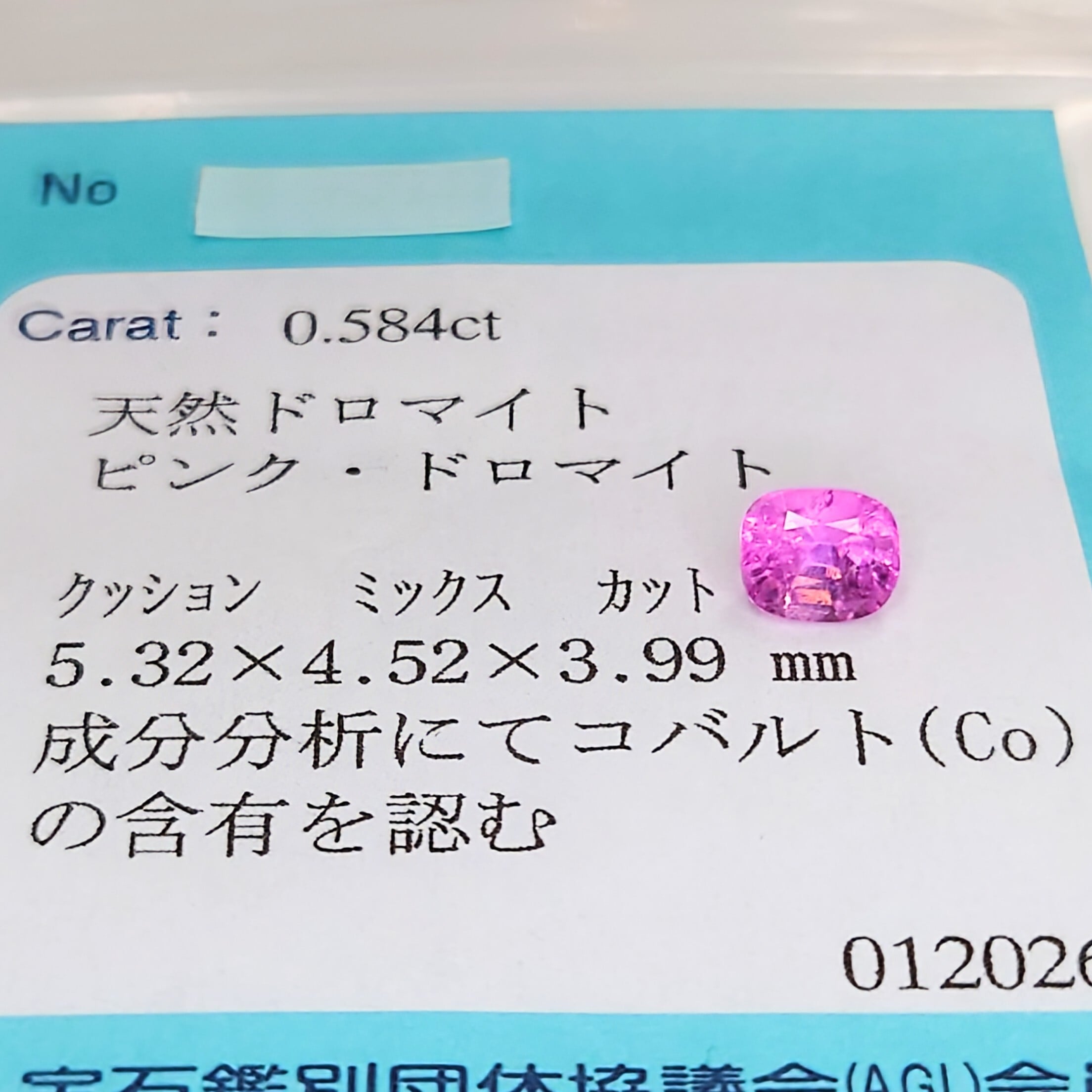 希少 Cobalt Dolomite 0.584ct Pink Dolomite JGGLソ付 ルース☆