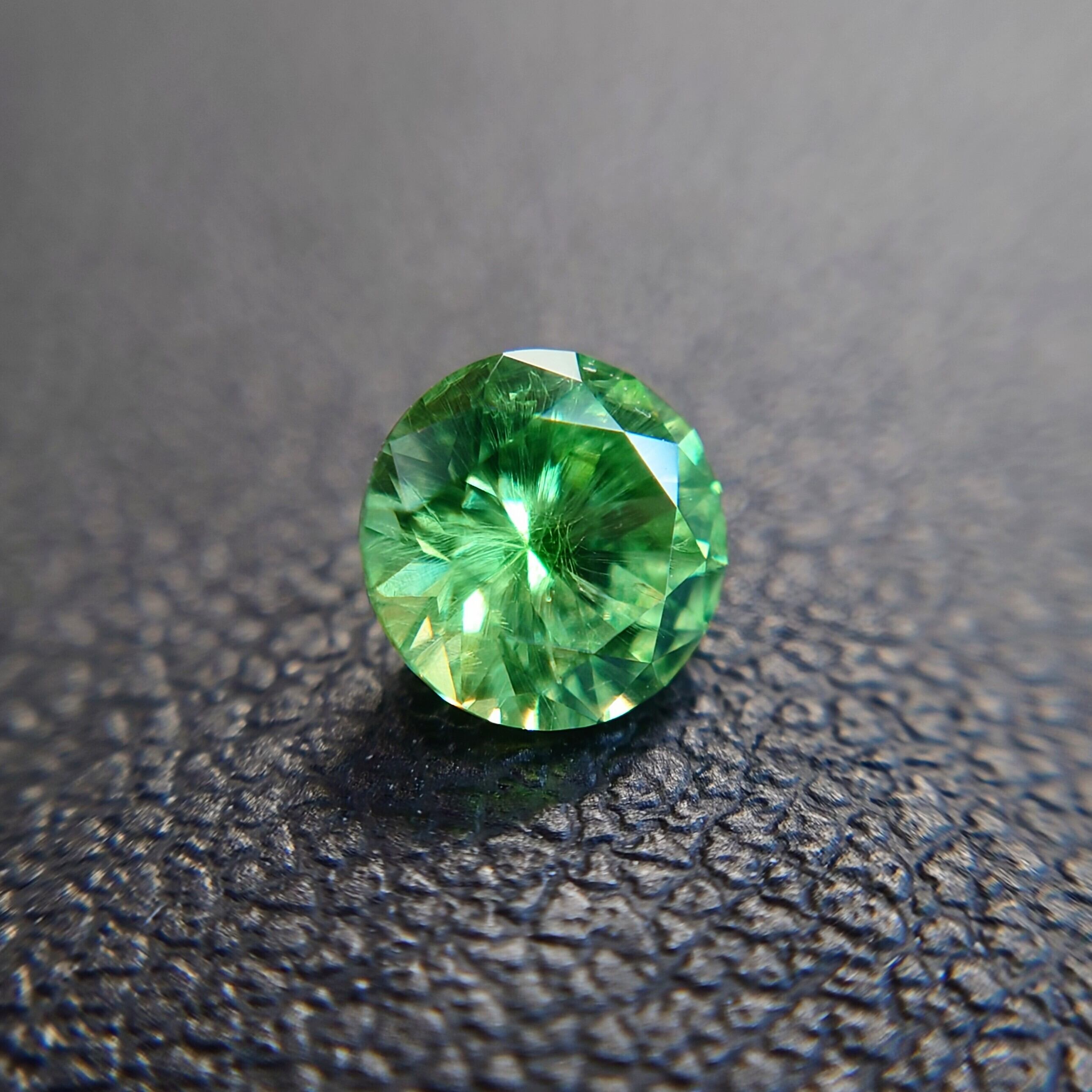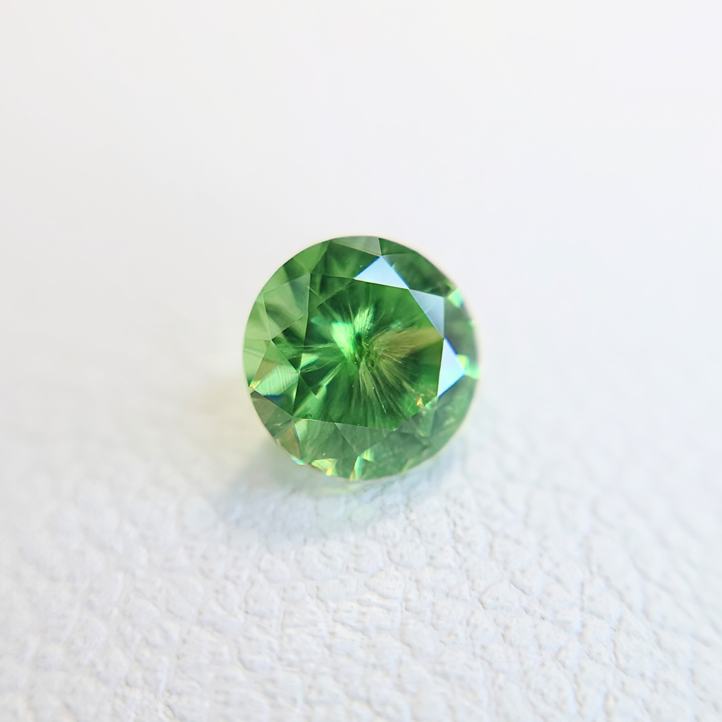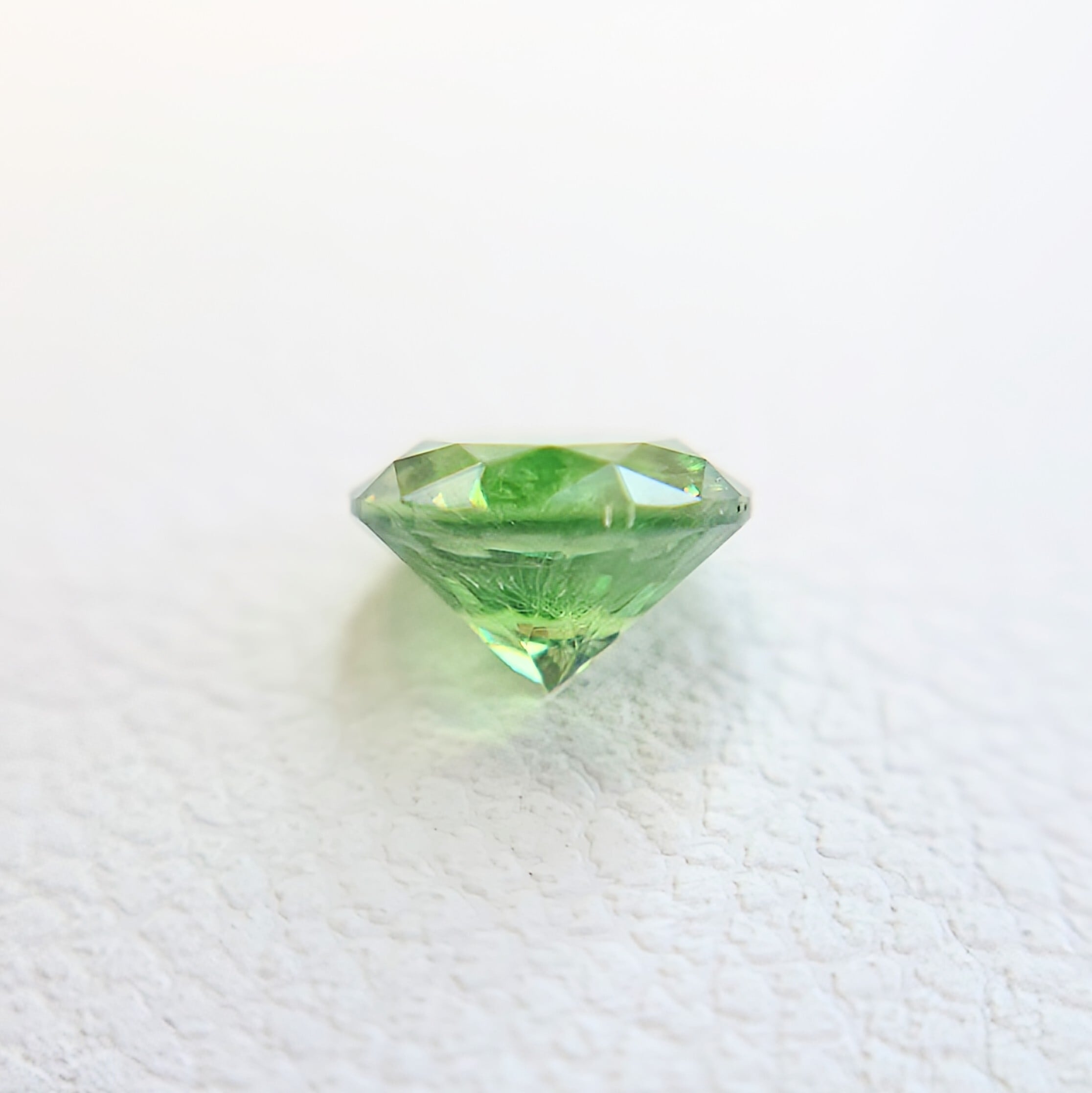 デマントイド特有の高い分散(ファイア)により、角度を変えるたびにきらめきが弾け、サイズ以上の存在感を感じさせます。
