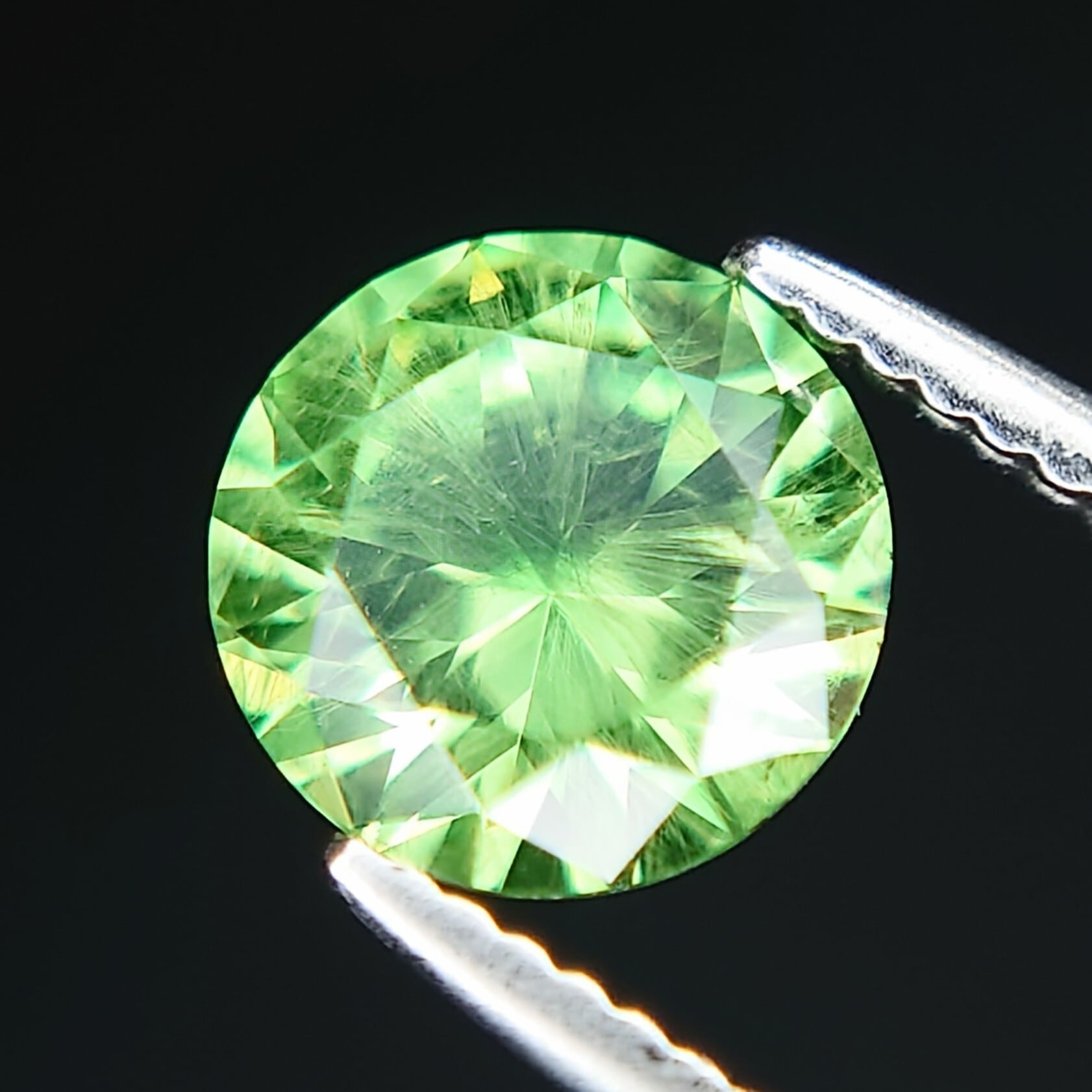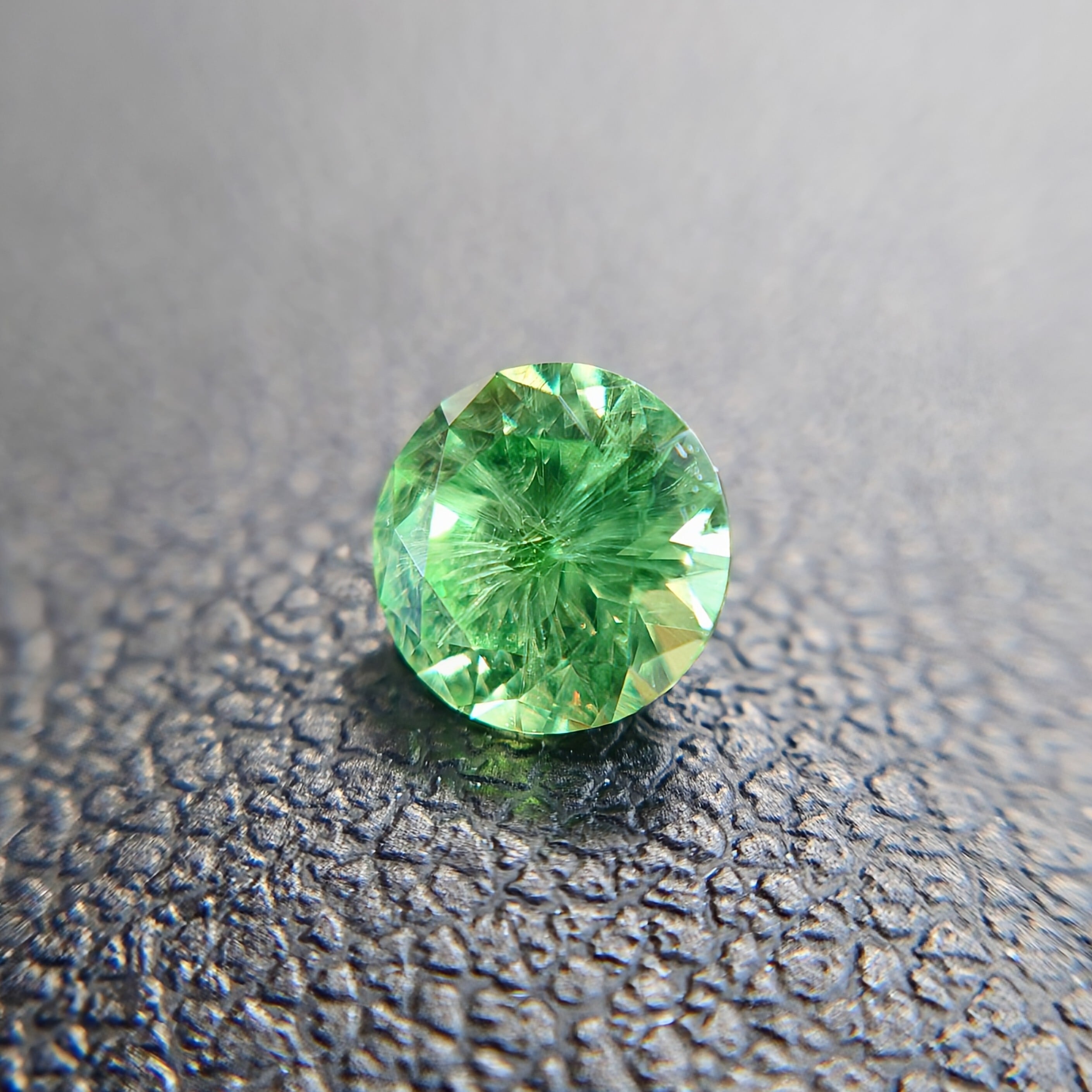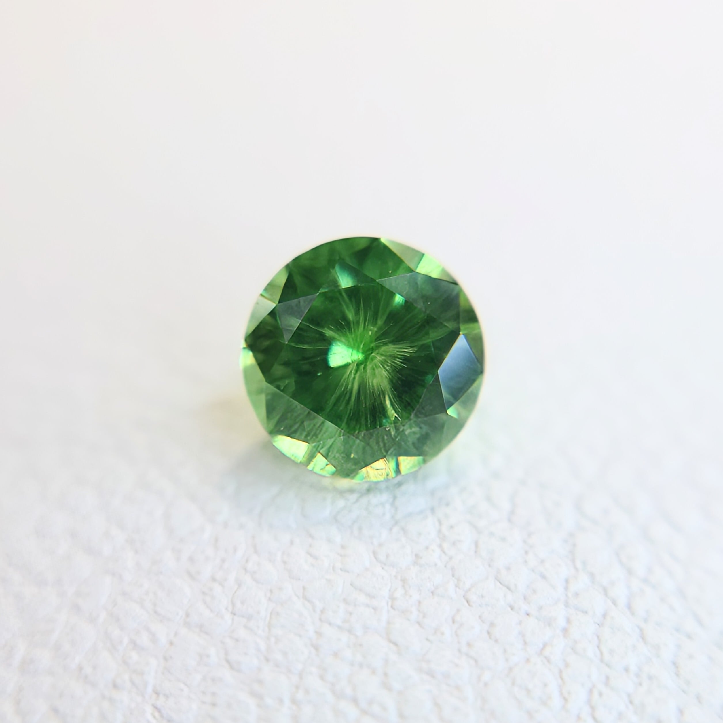 デマントイド特有の高い分散(ファイア)により、角度を変えるたびにきらめきが弾け、サイズ以上の存在感を感じさせます。