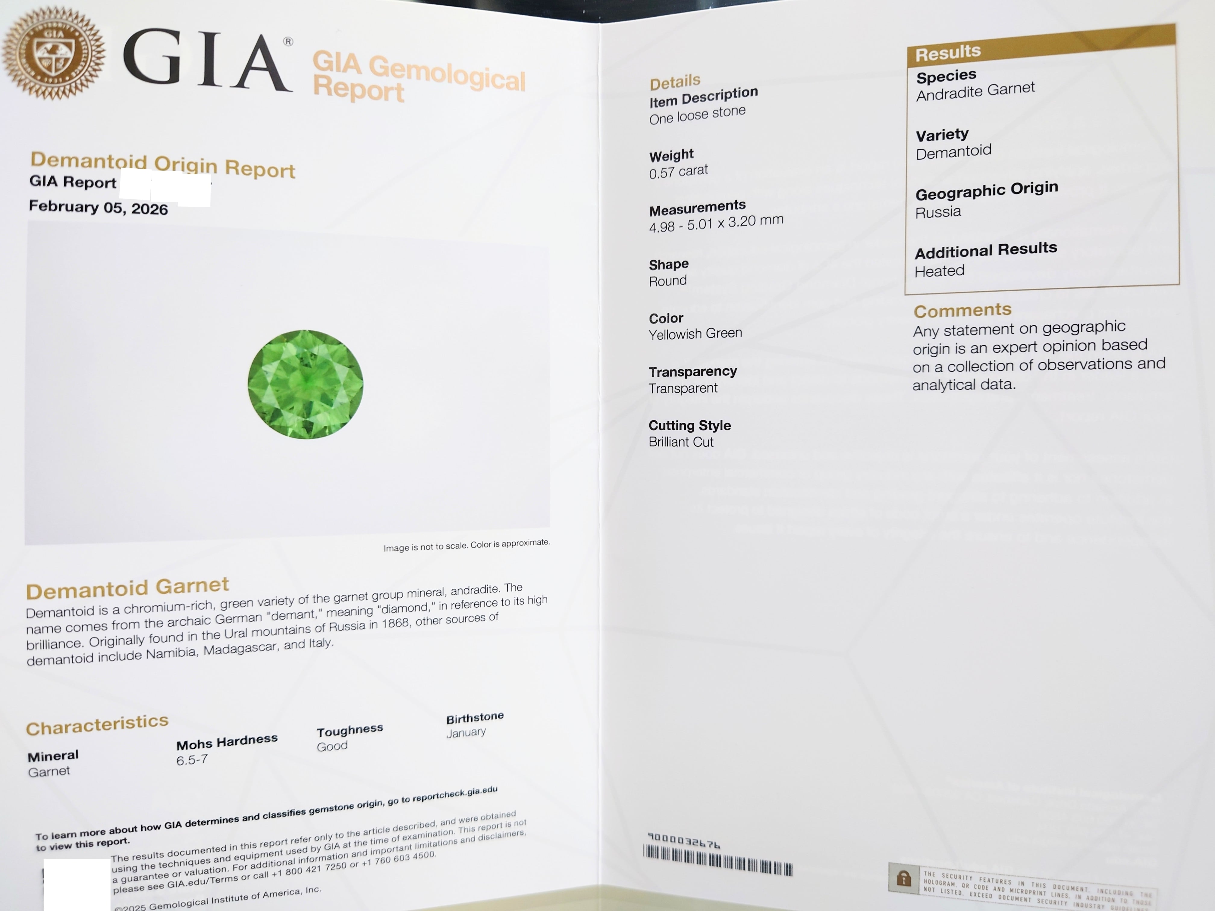 Demantoid Garnet 0.57ct Russia GIA ルース☆