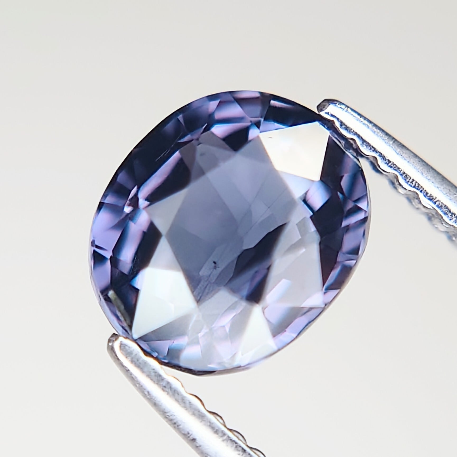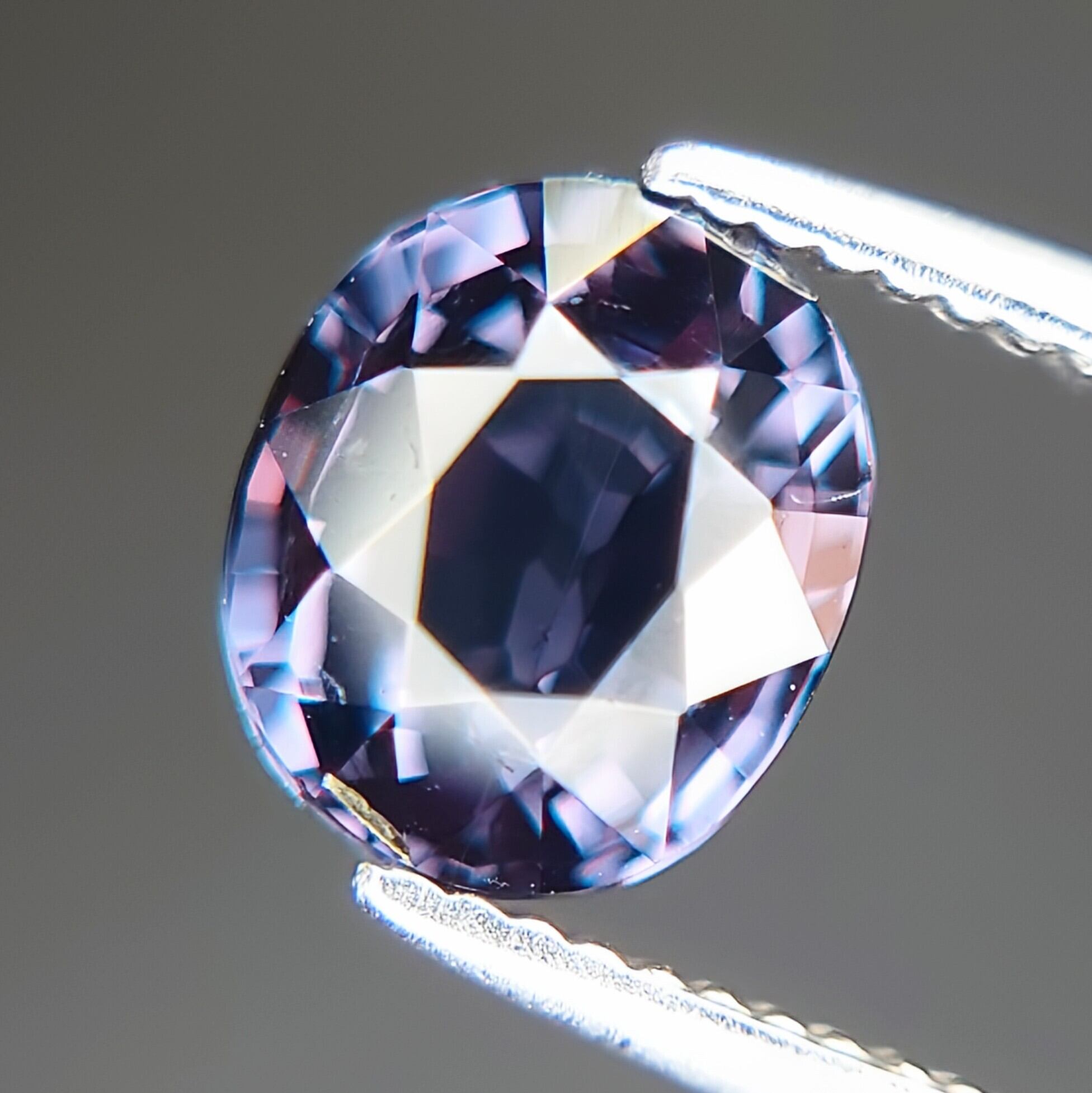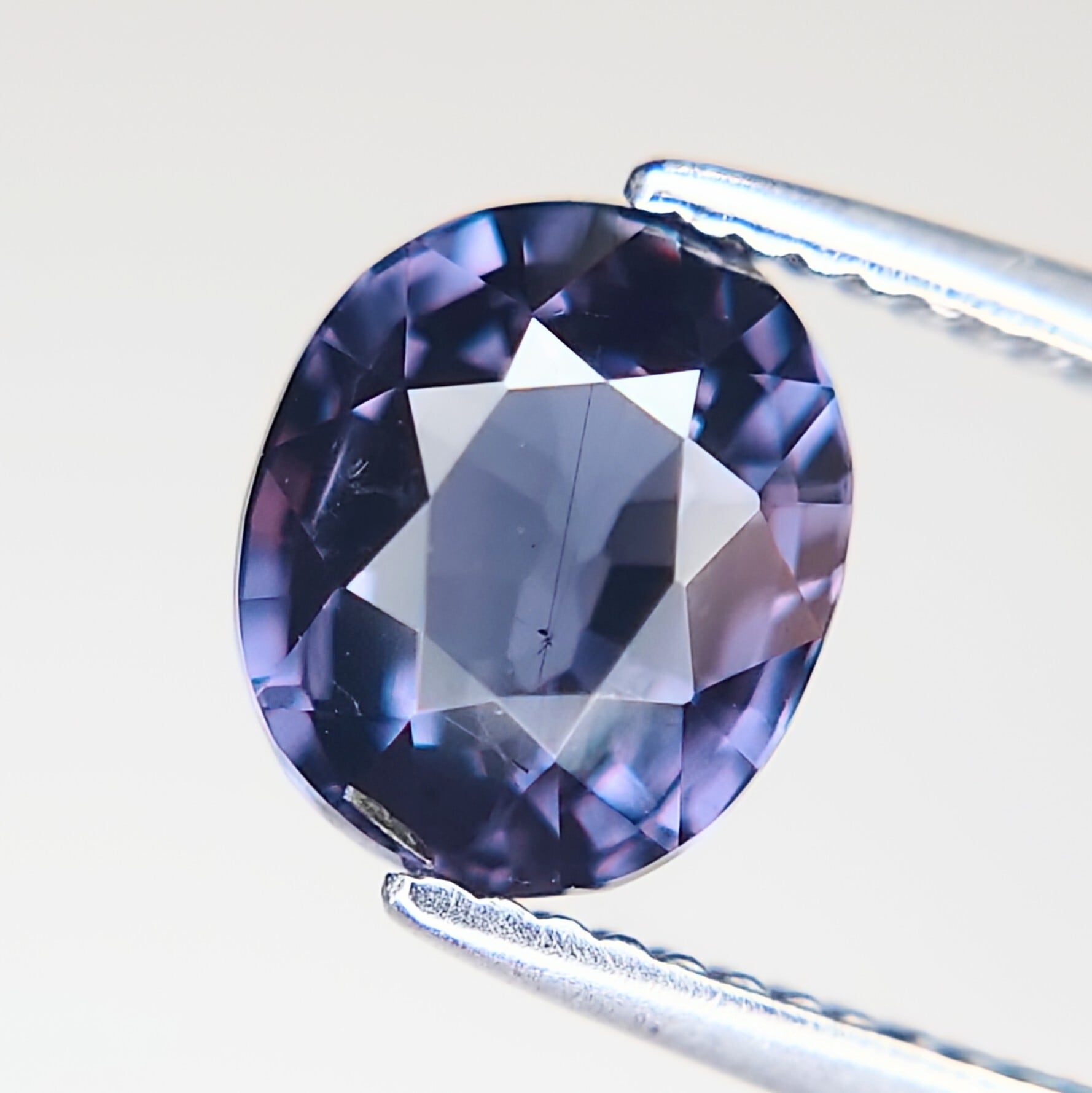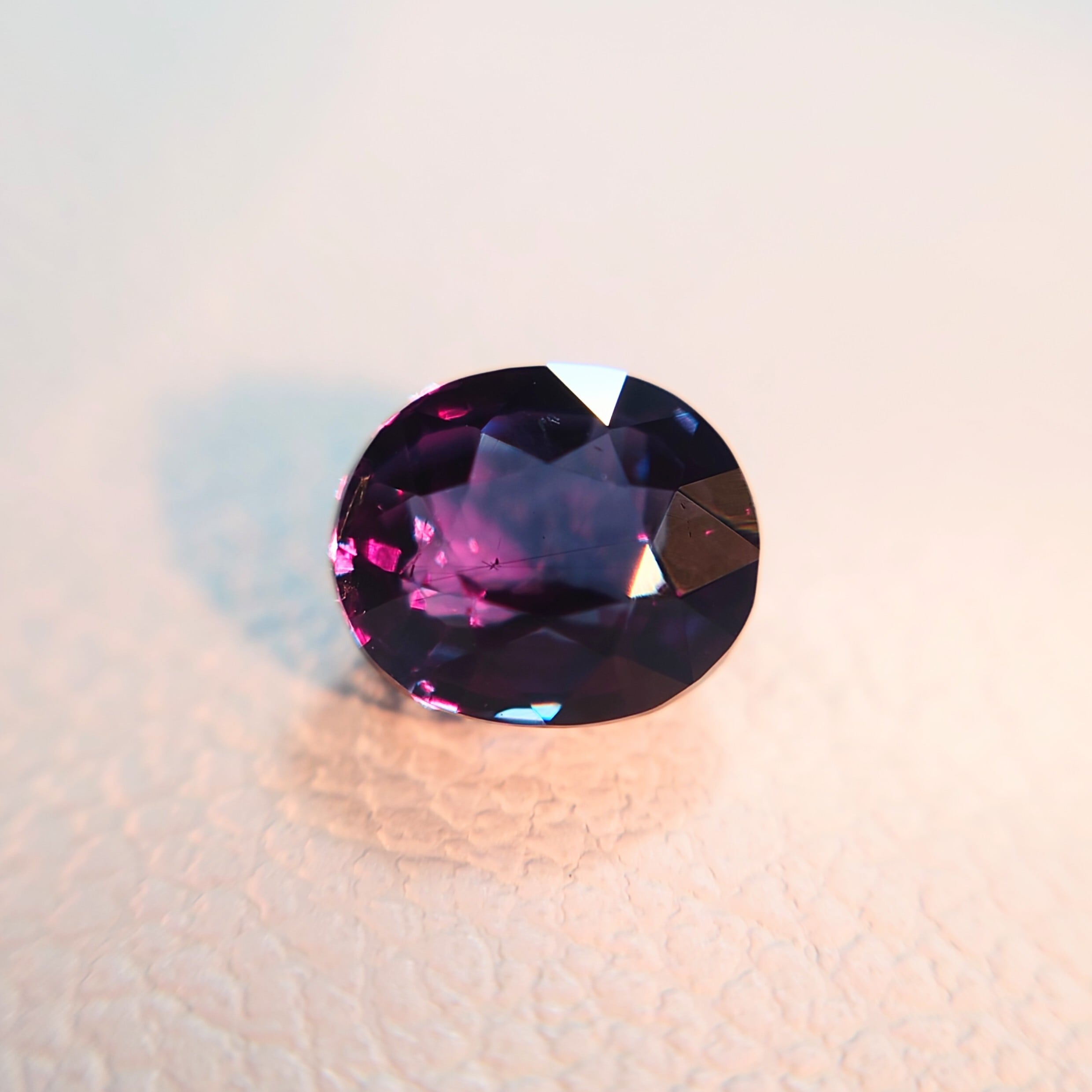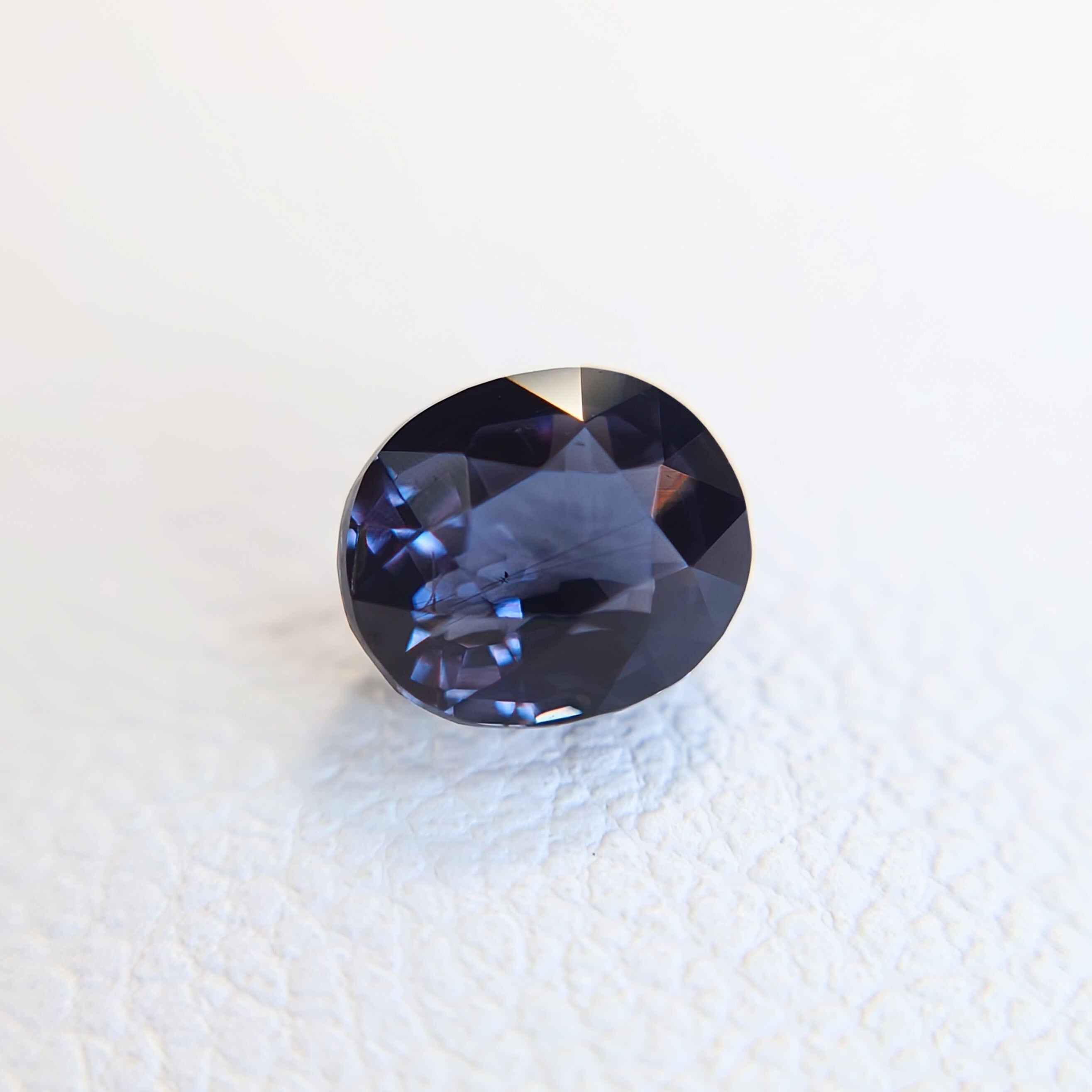 自然光下では深みのあるブルー〜ブルーバイオレットを呈し、白熱灯や暖色光のもとでは鮮やかなレディッシュパープルへと劇的に変化する、神秘的な色彩を備えた一石です。