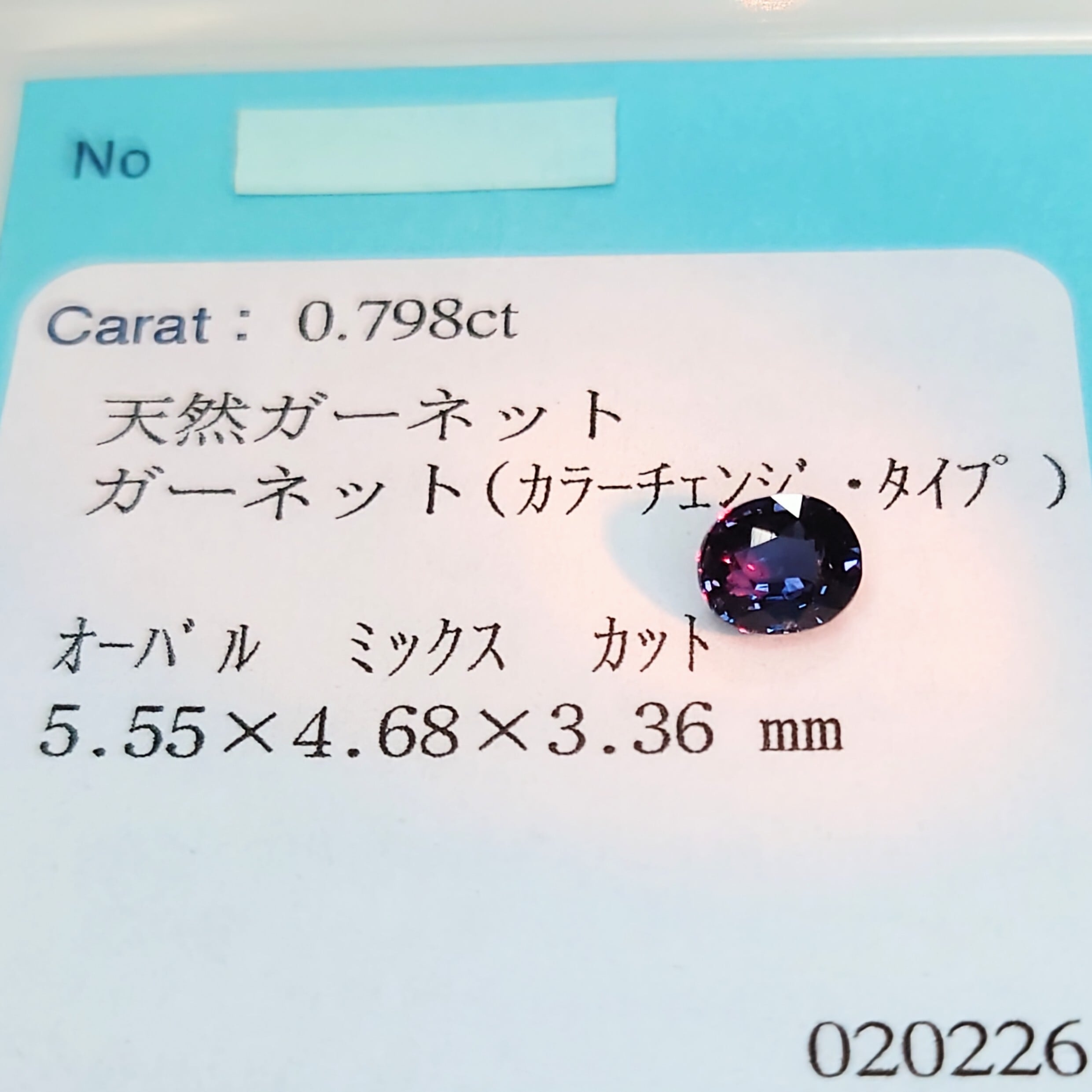 希少 Bekily Blue Garnet color change type 0.798ct JGGLソ付 ルース☆