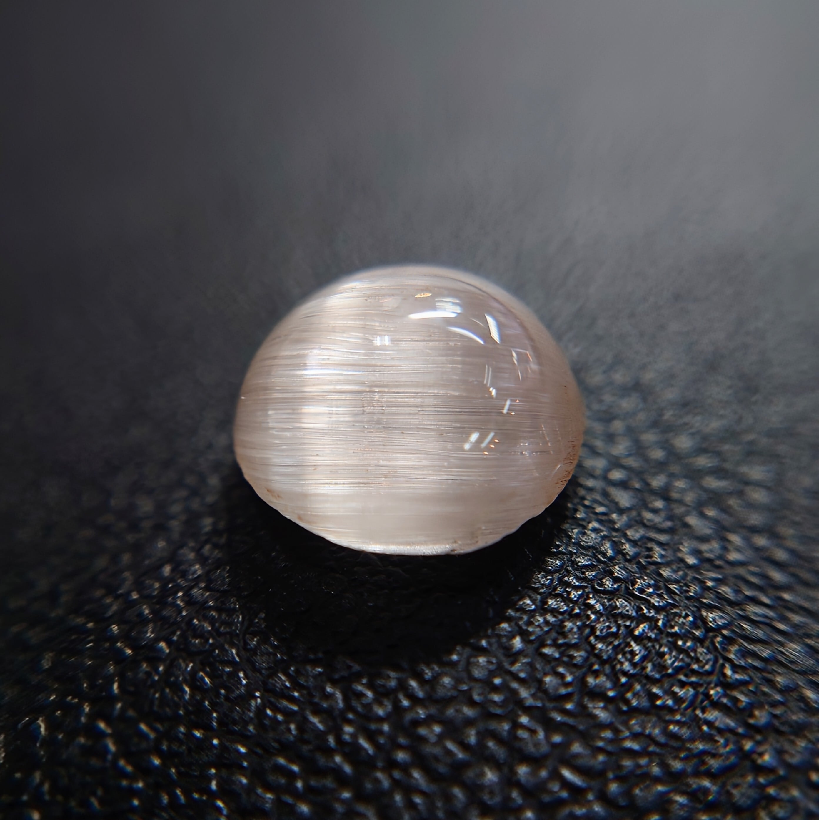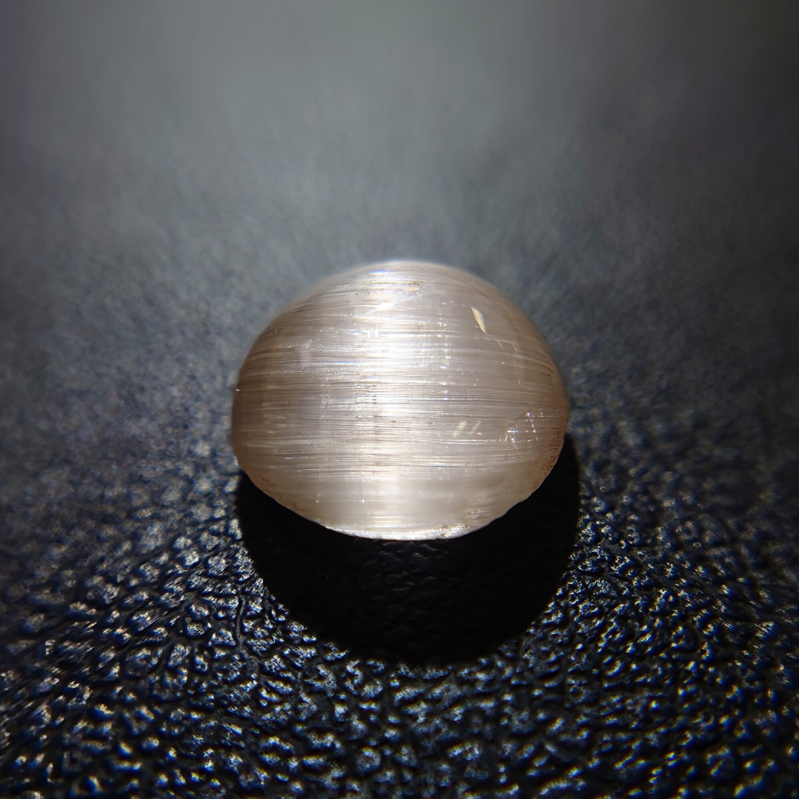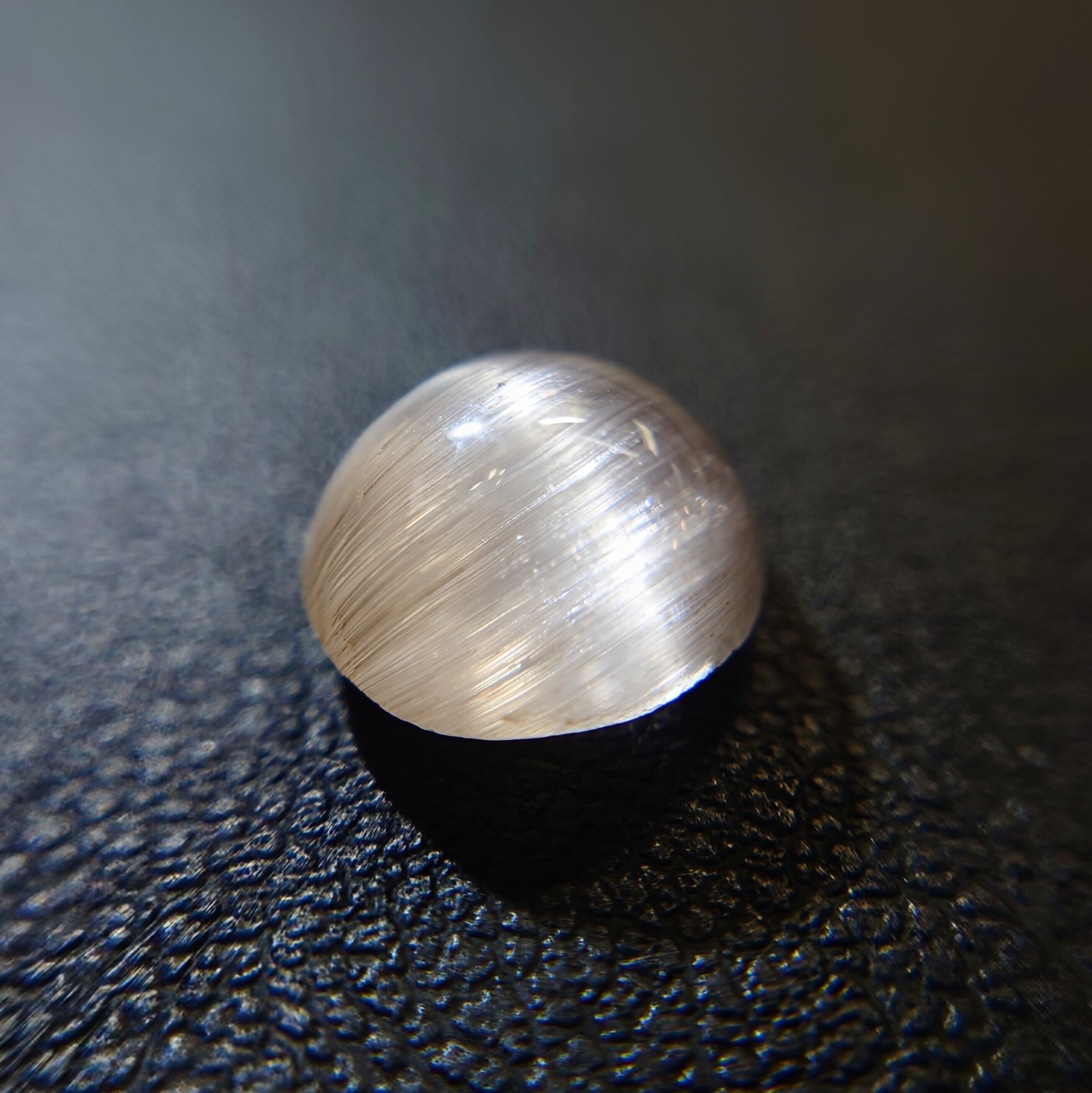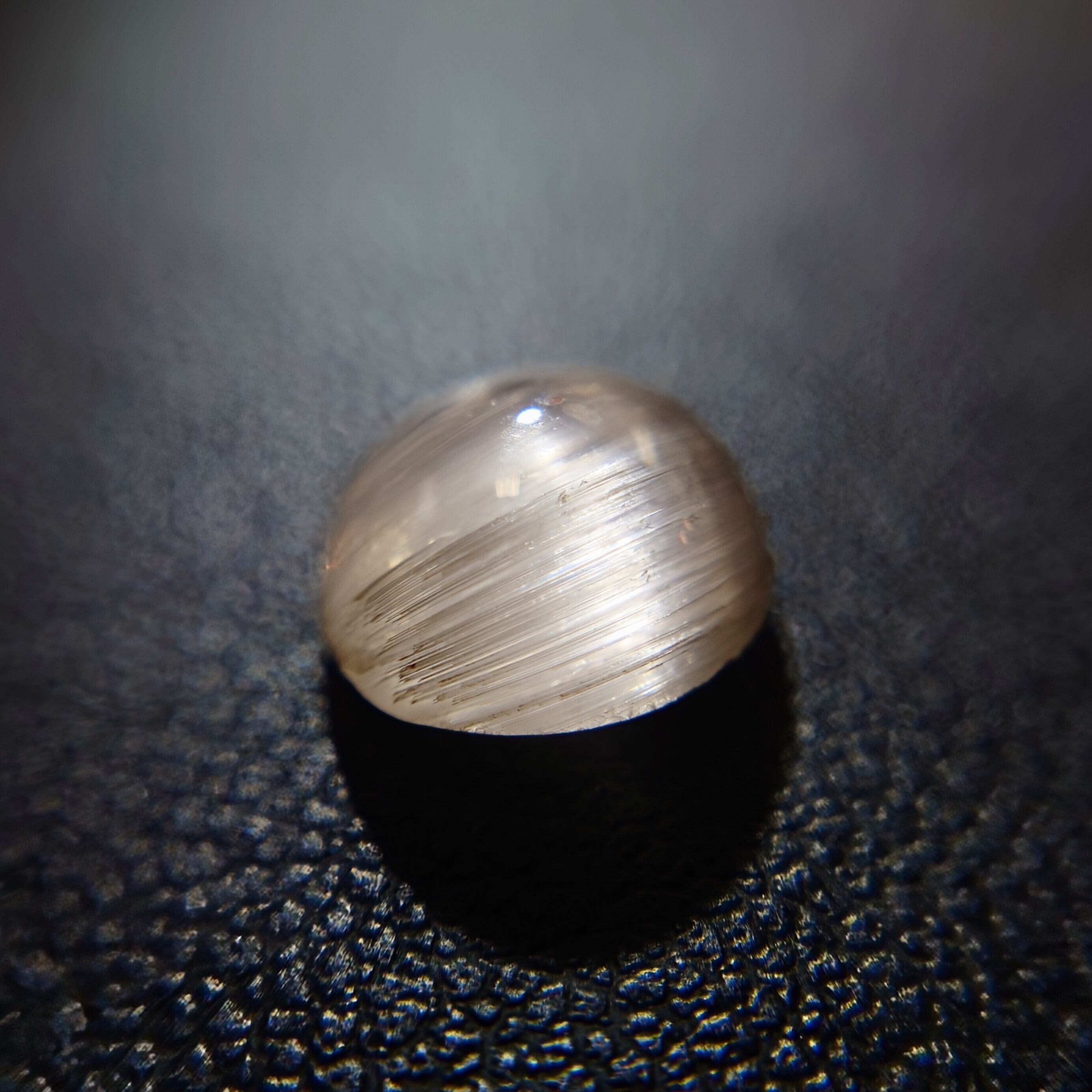 光を当てる角度によって鋭く走る光条は、シルクのような滑らかな質感を生み、透明感の中に幻想的な表情を宿します。