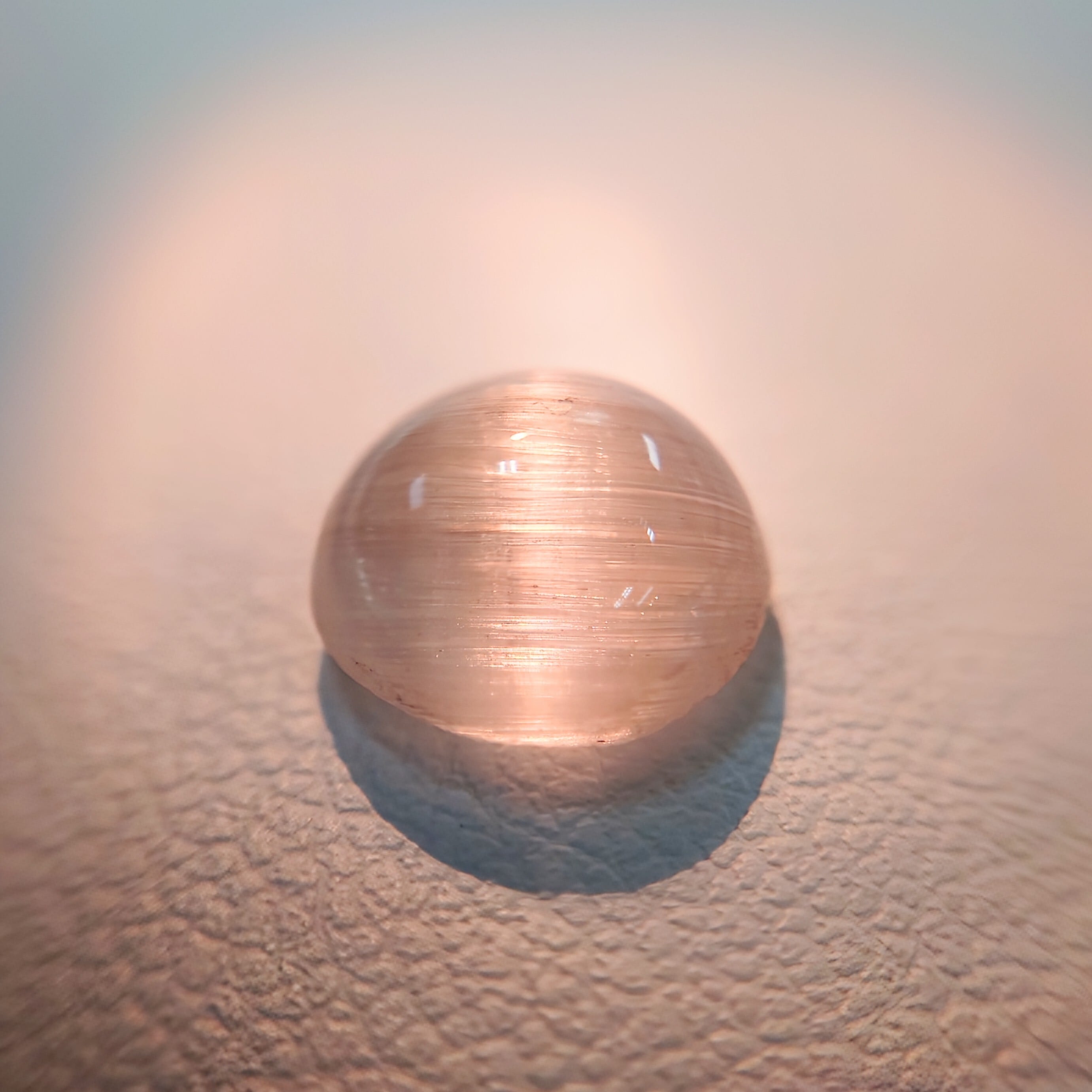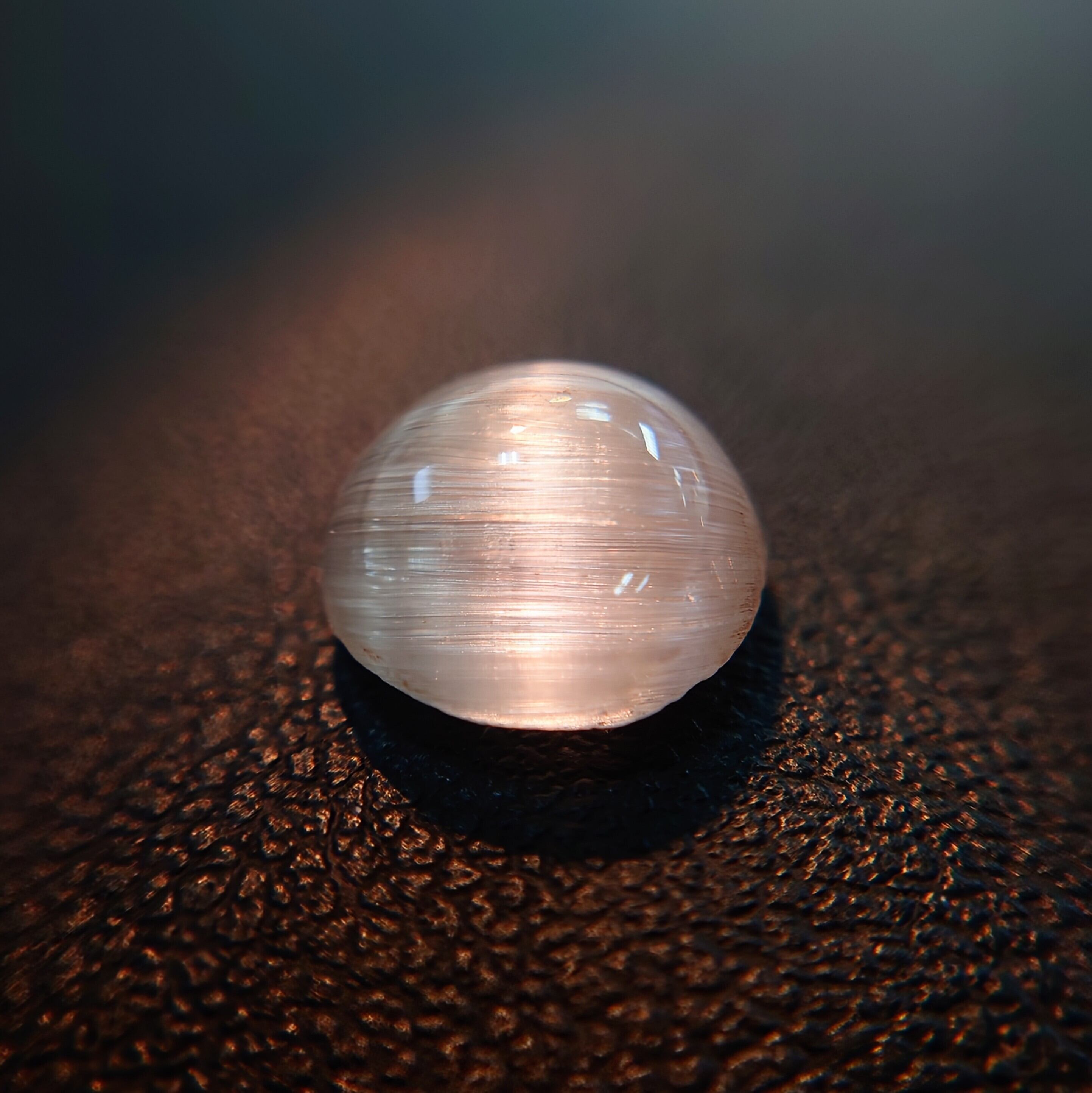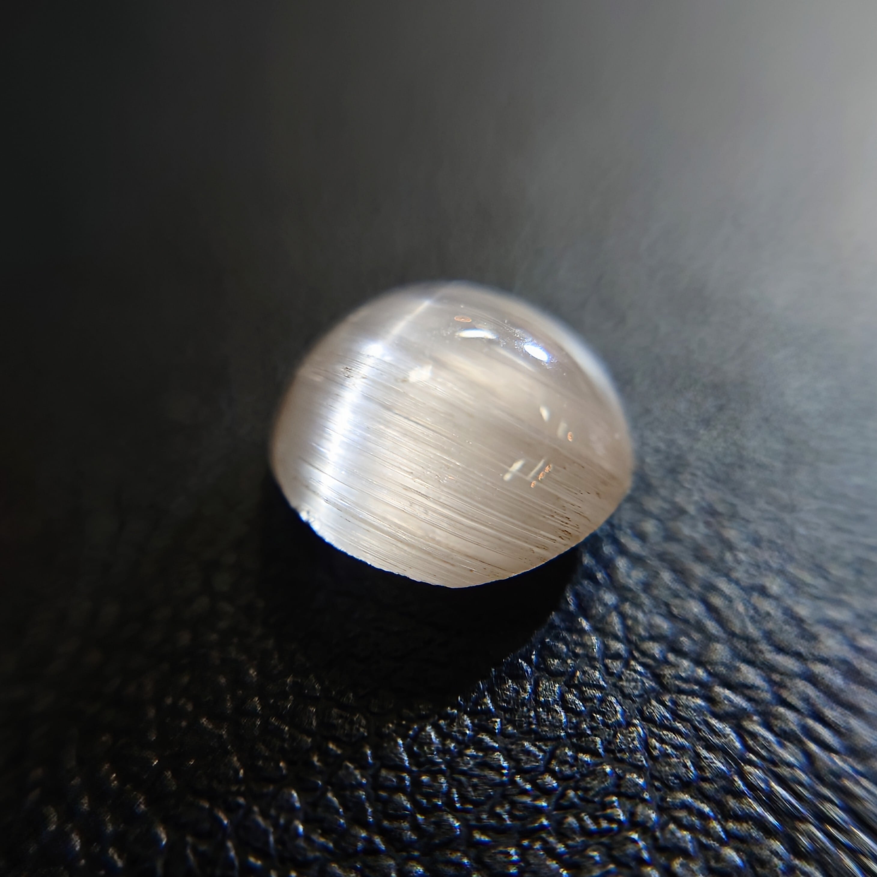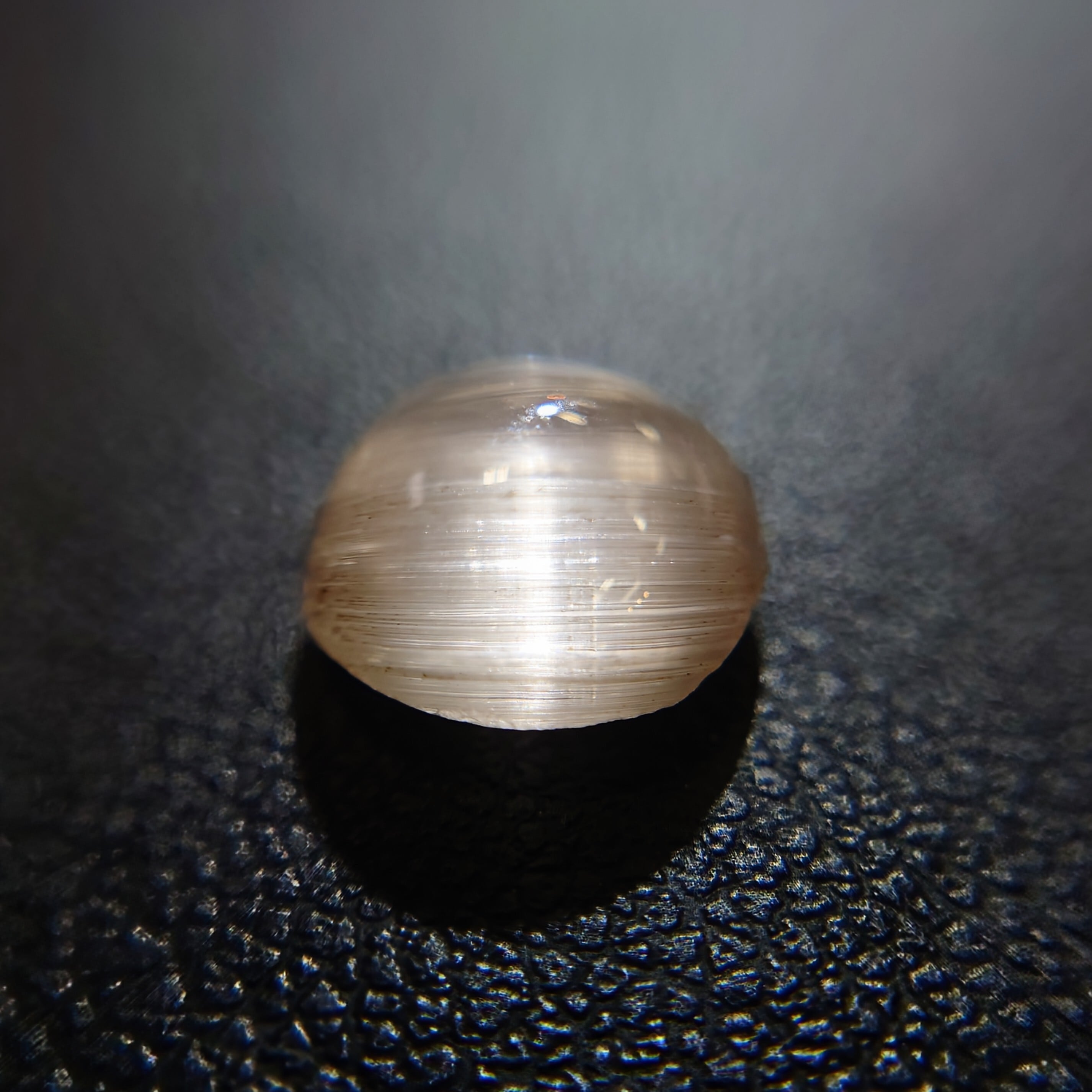 光を当てる角度によって鋭く走る光条は、シルクのような滑らかな質感を生み、透明感の中に幻想的な表情を宿します。