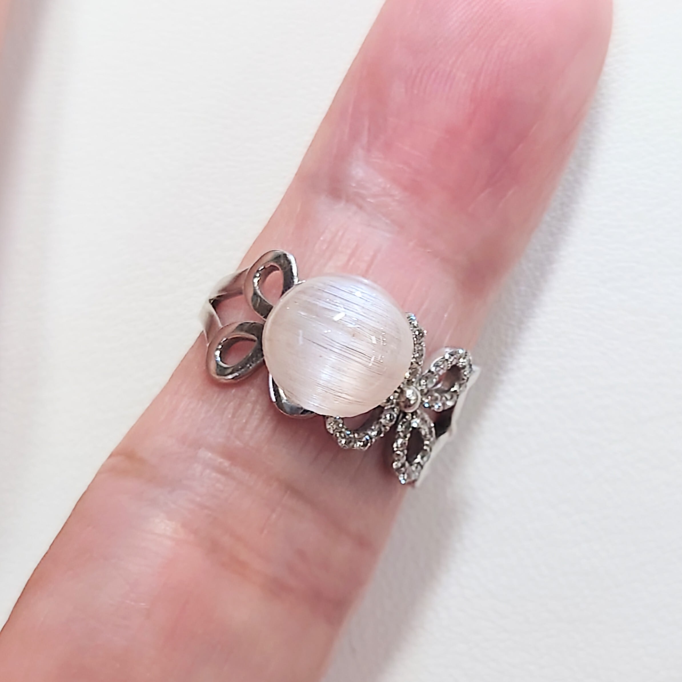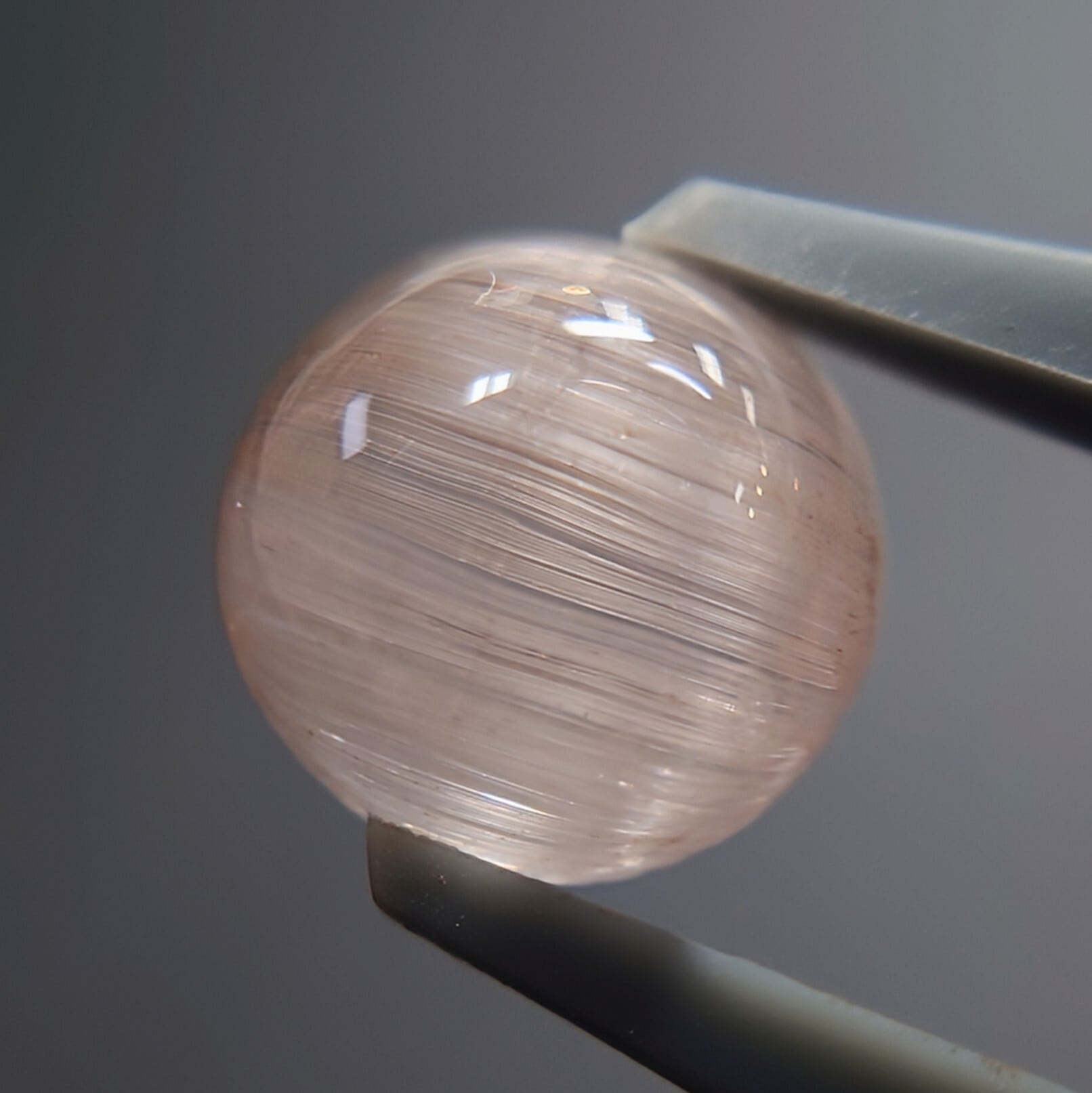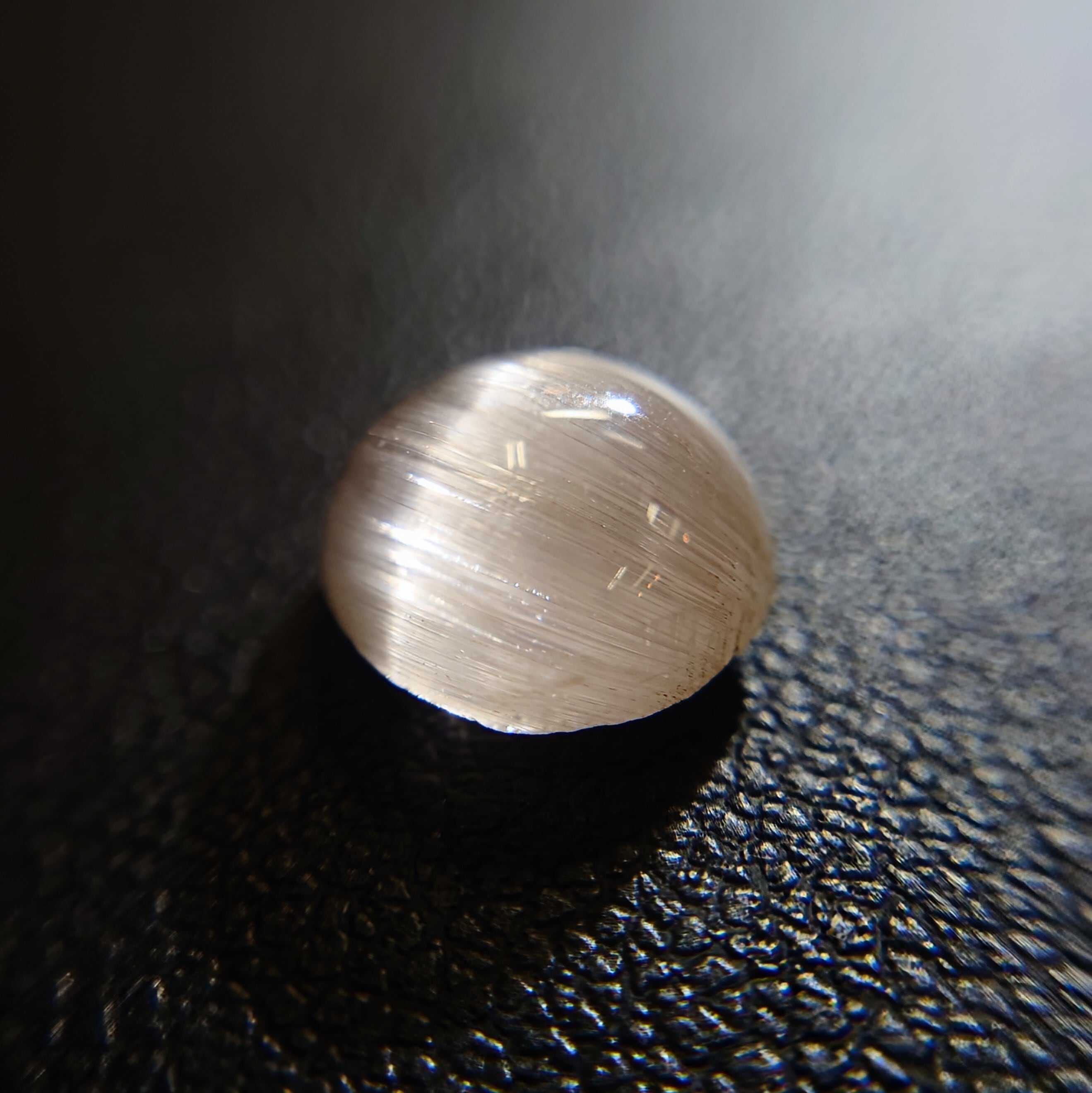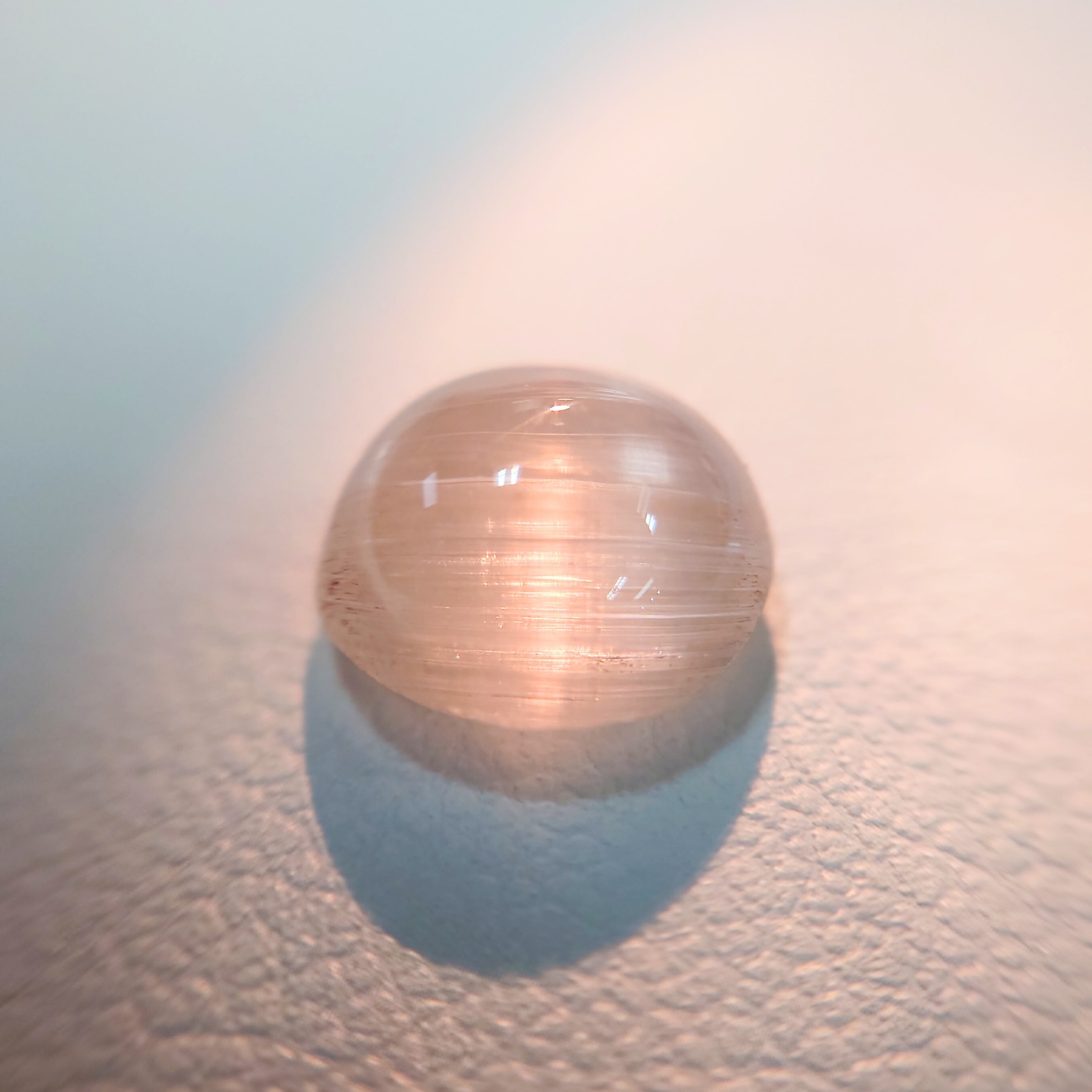 光を当てる角度によって鋭く走る光条は、シルクのような滑らかな質感を生み、透明感の中に幻想的な表情を宿します。