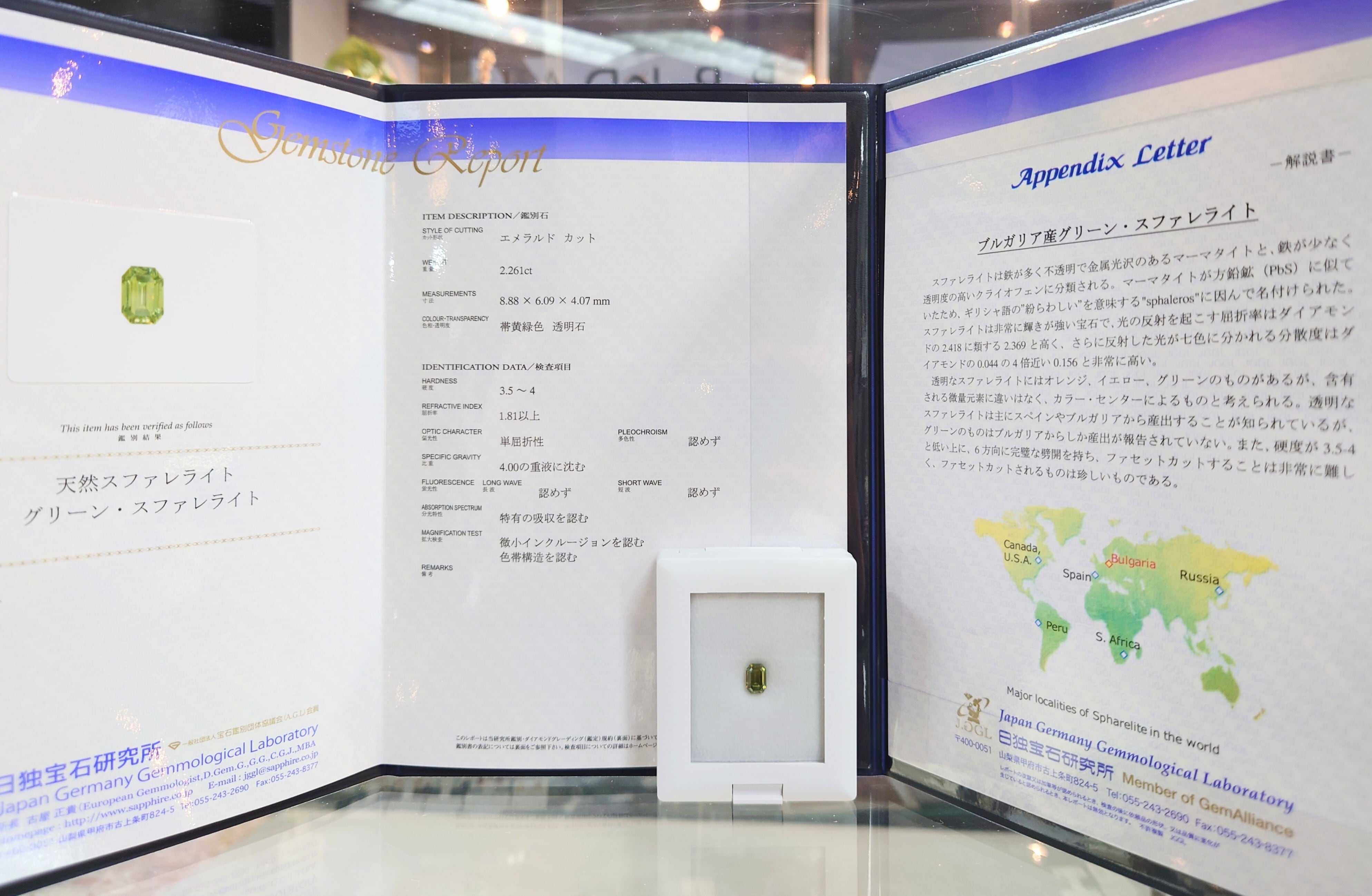 付属品:JGGL(Japan Germany Gemmological Laboratory)解説鑑別書