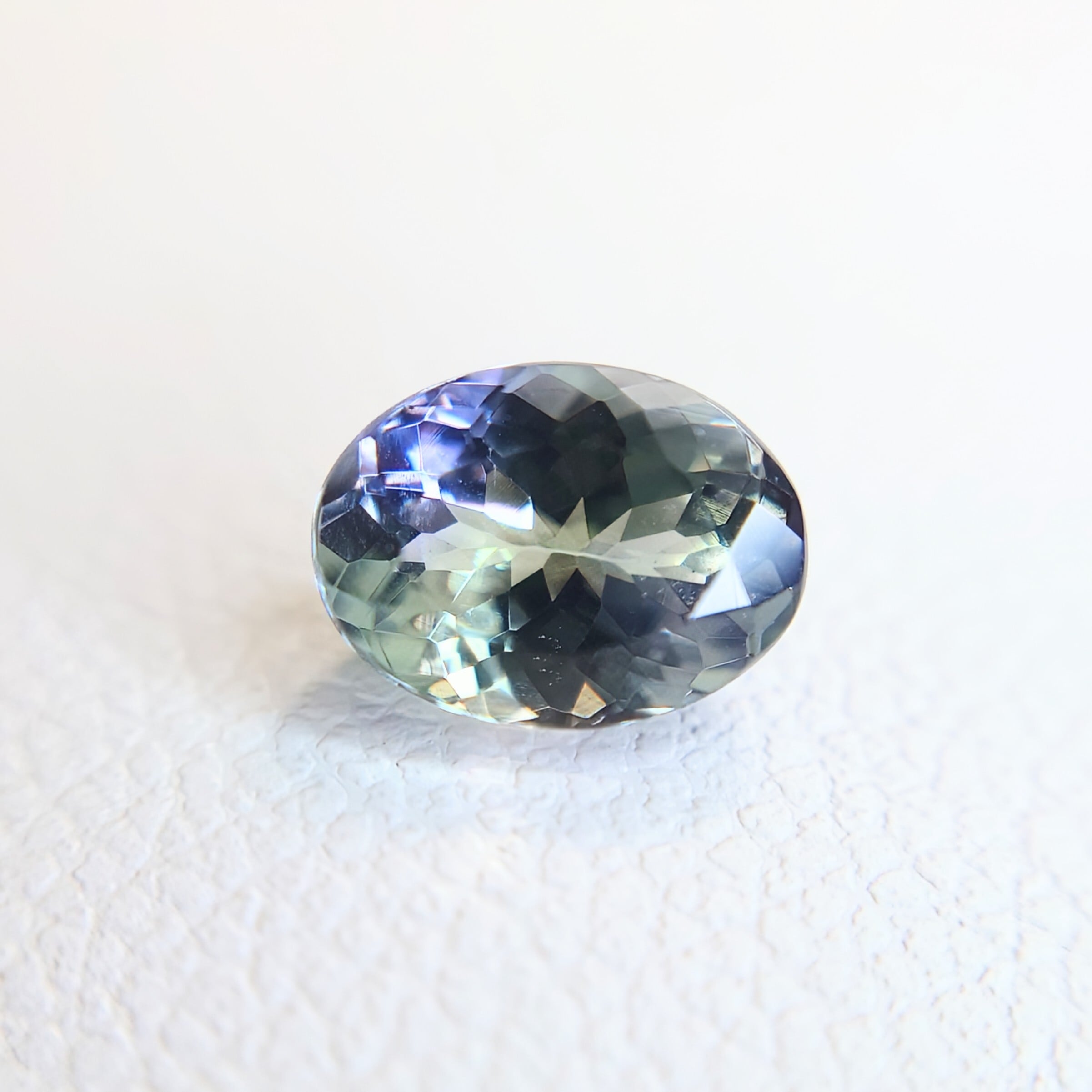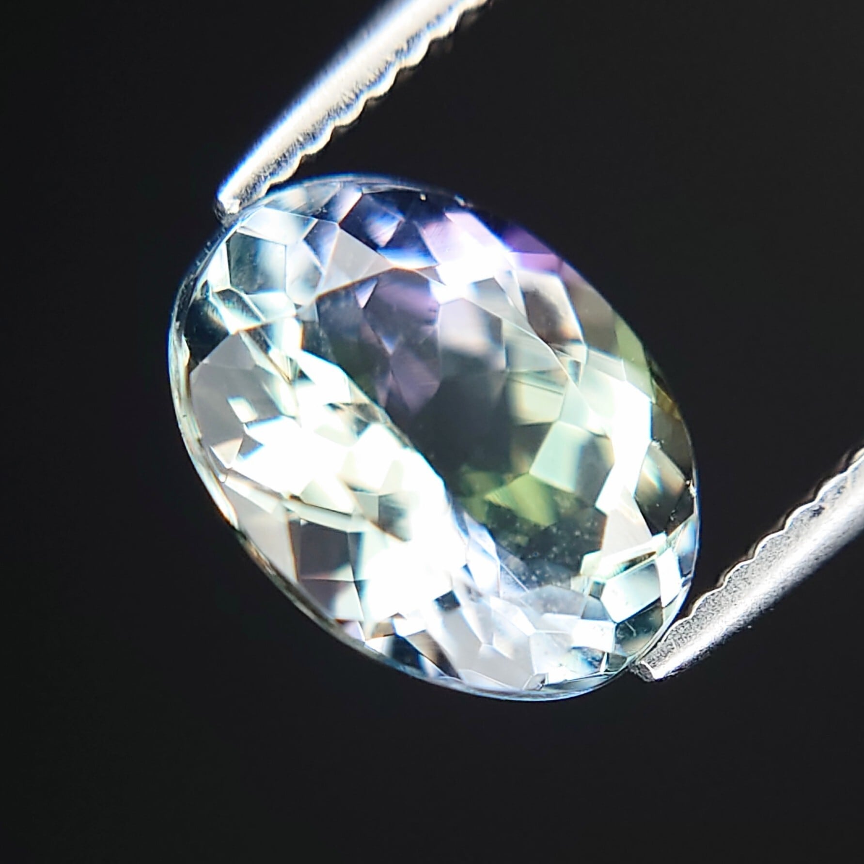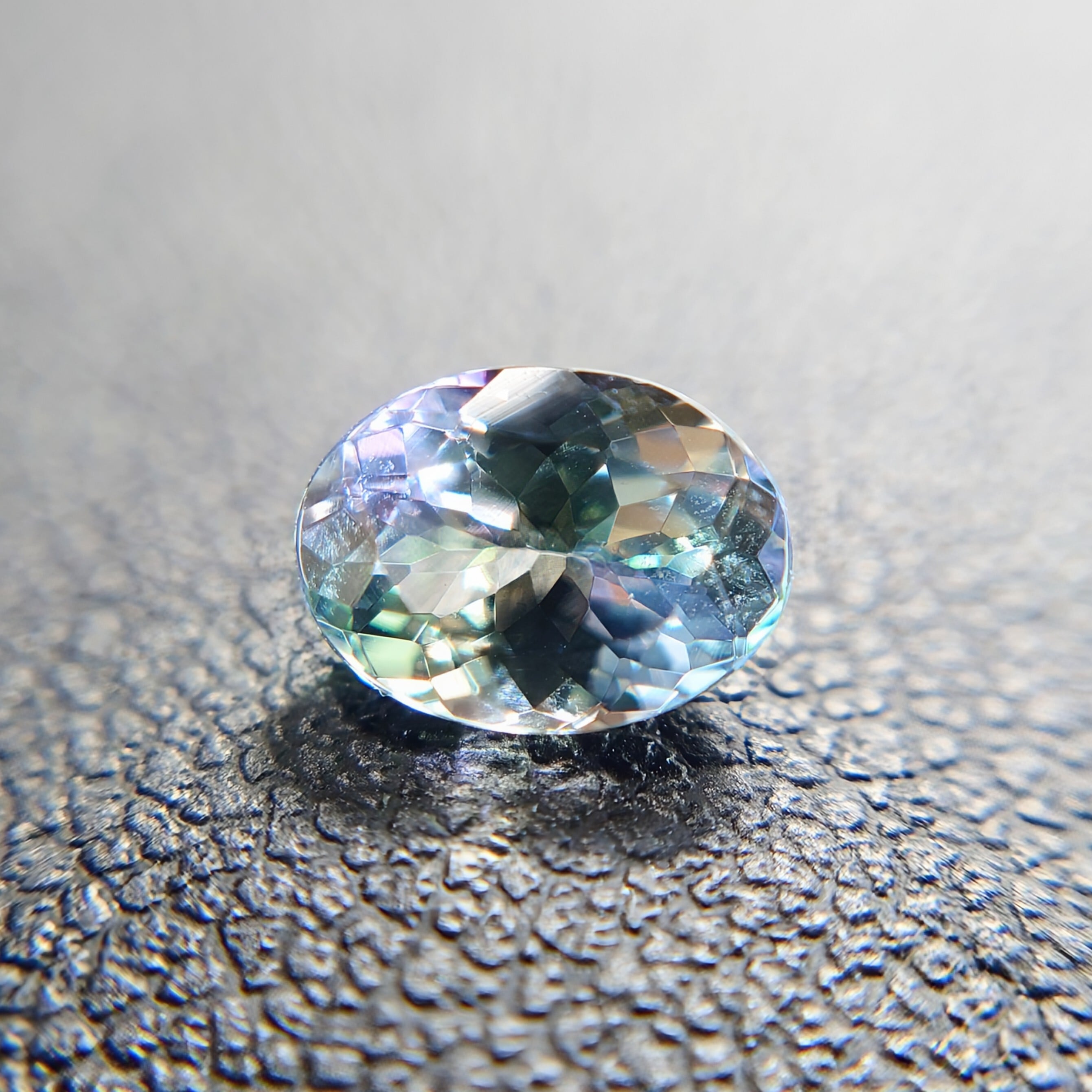 透明度の高い結晶に施されたオーバル・モディファイドブリリアントカットにより、内部の色のグラデーションと輝きがバランス良く引き出されています。