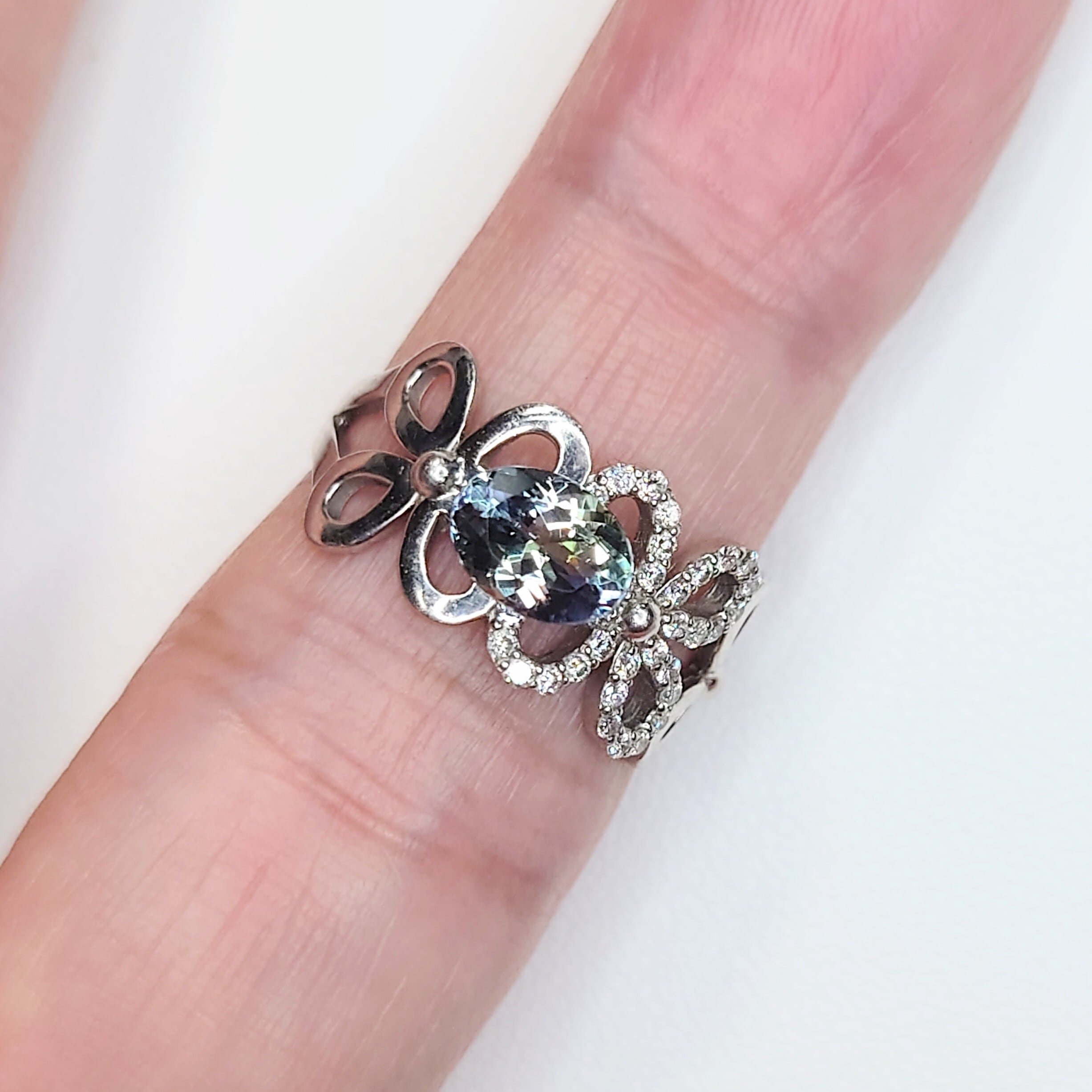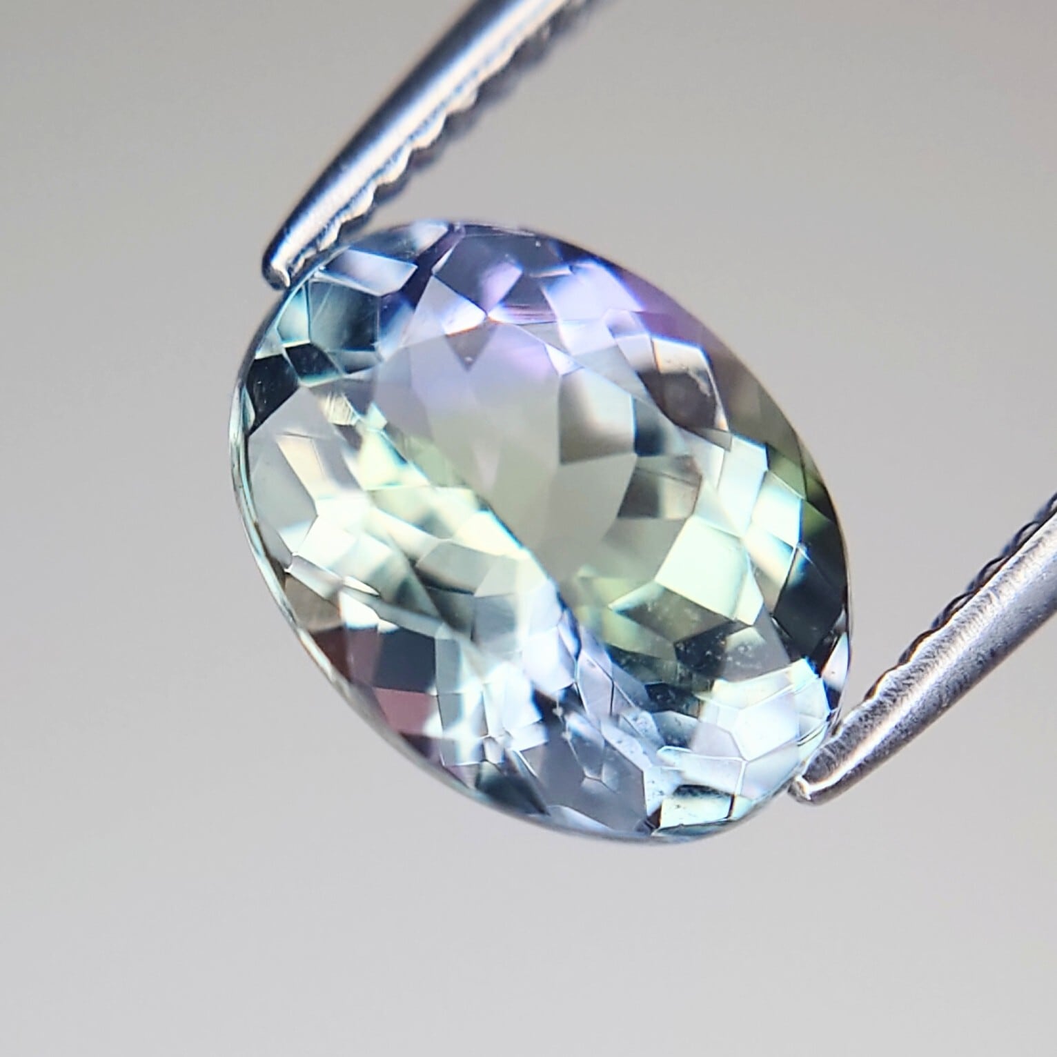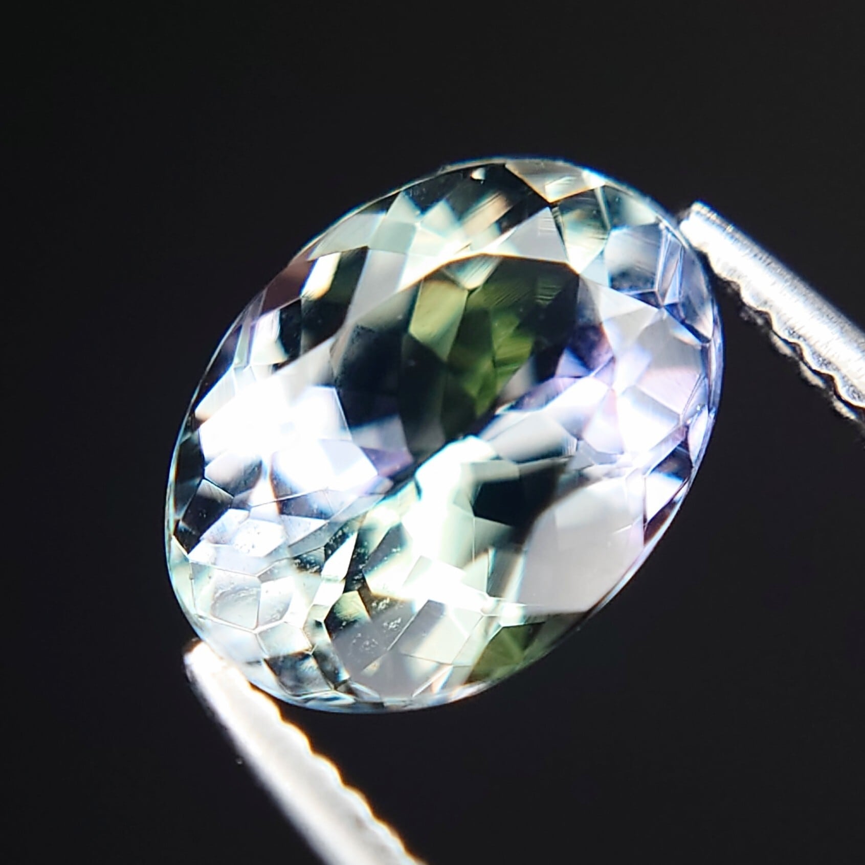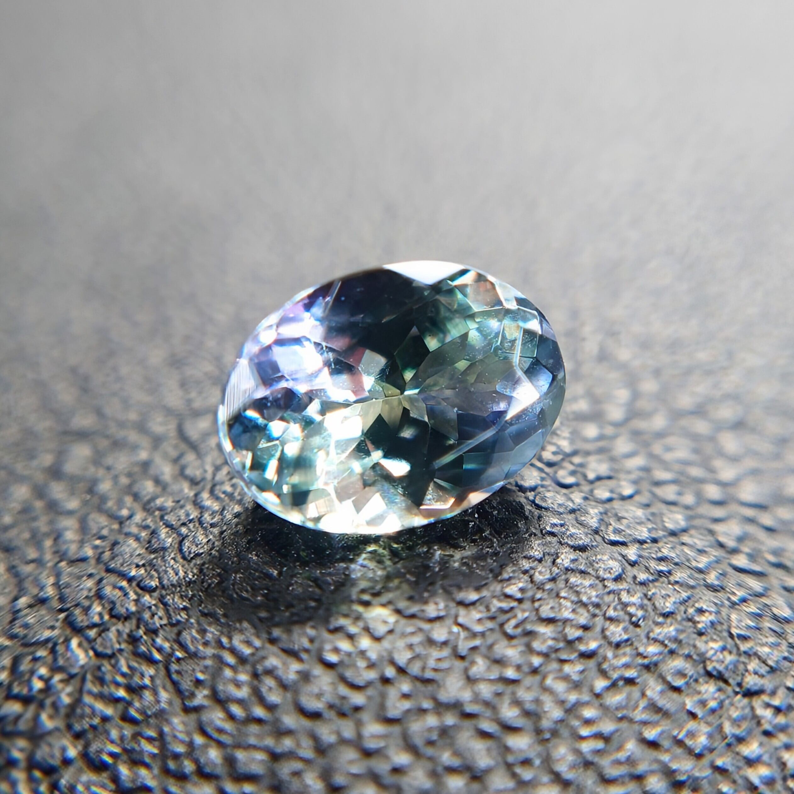透明度の高い結晶に施されたオーバル・モディファイドブリリアントカットにより、内部の色のグラデーションと輝きがバランス良く引き出されています。