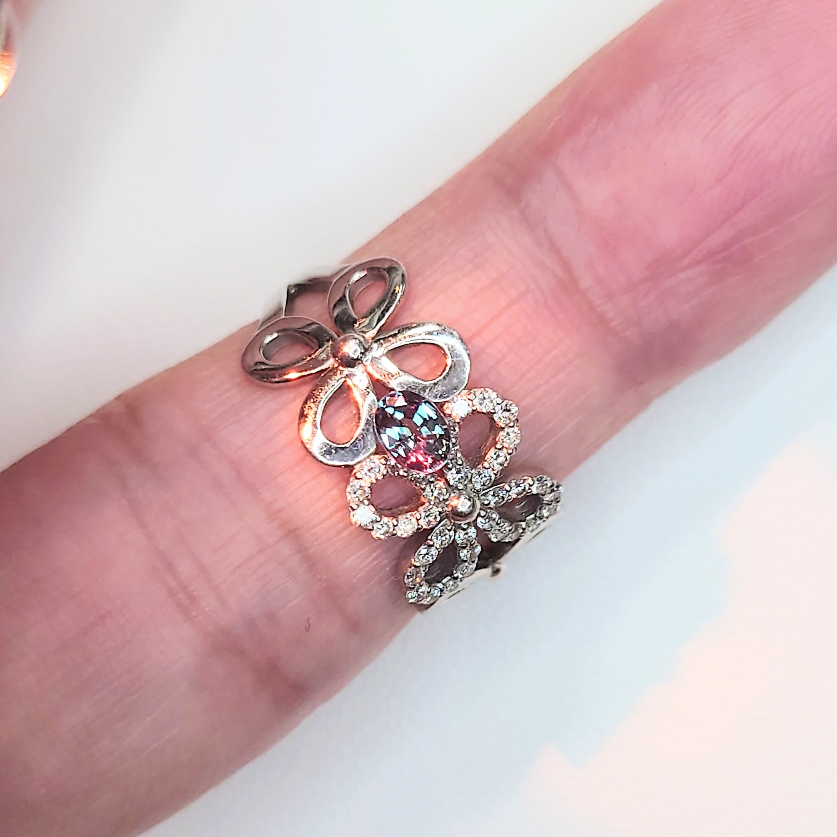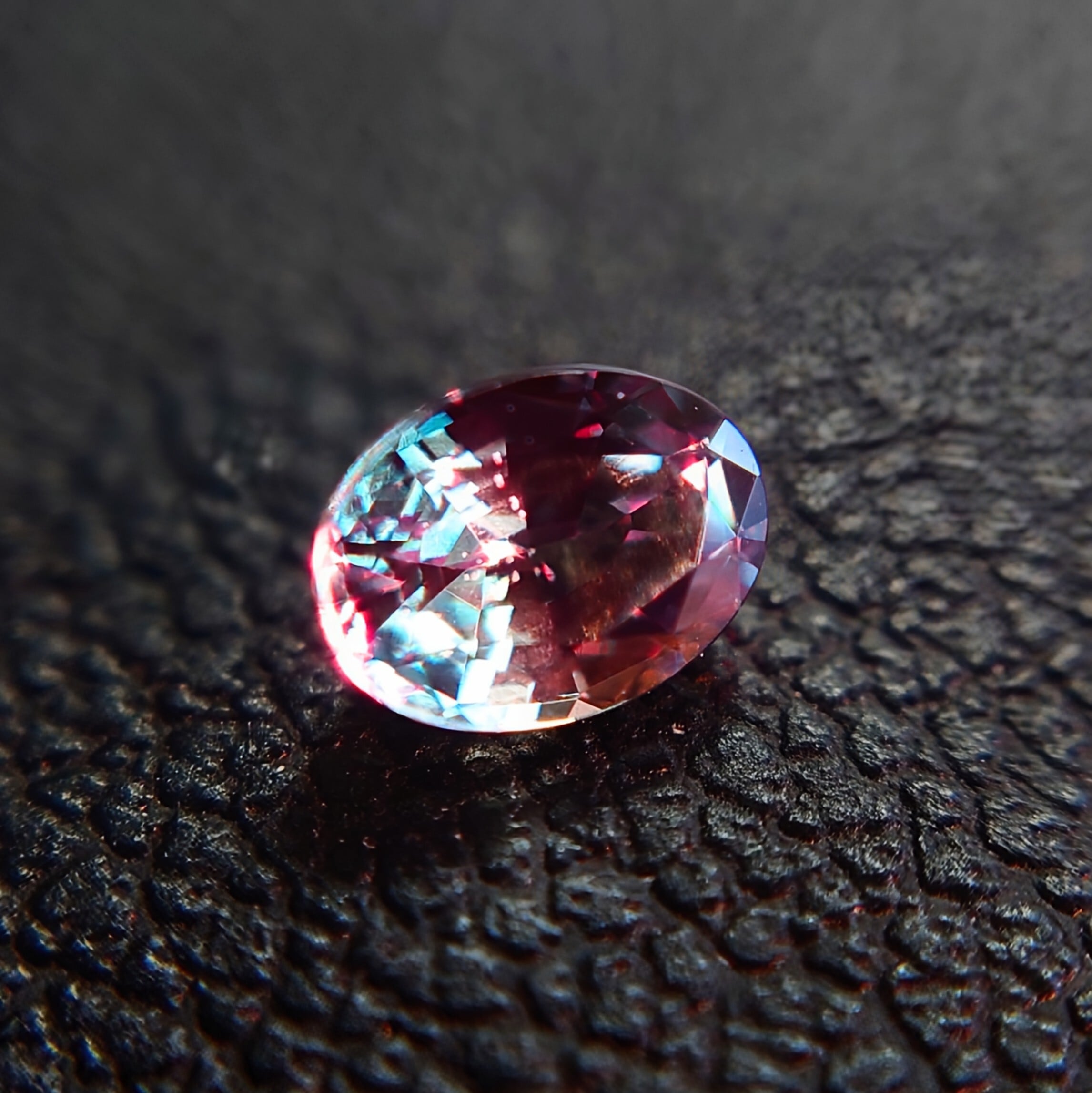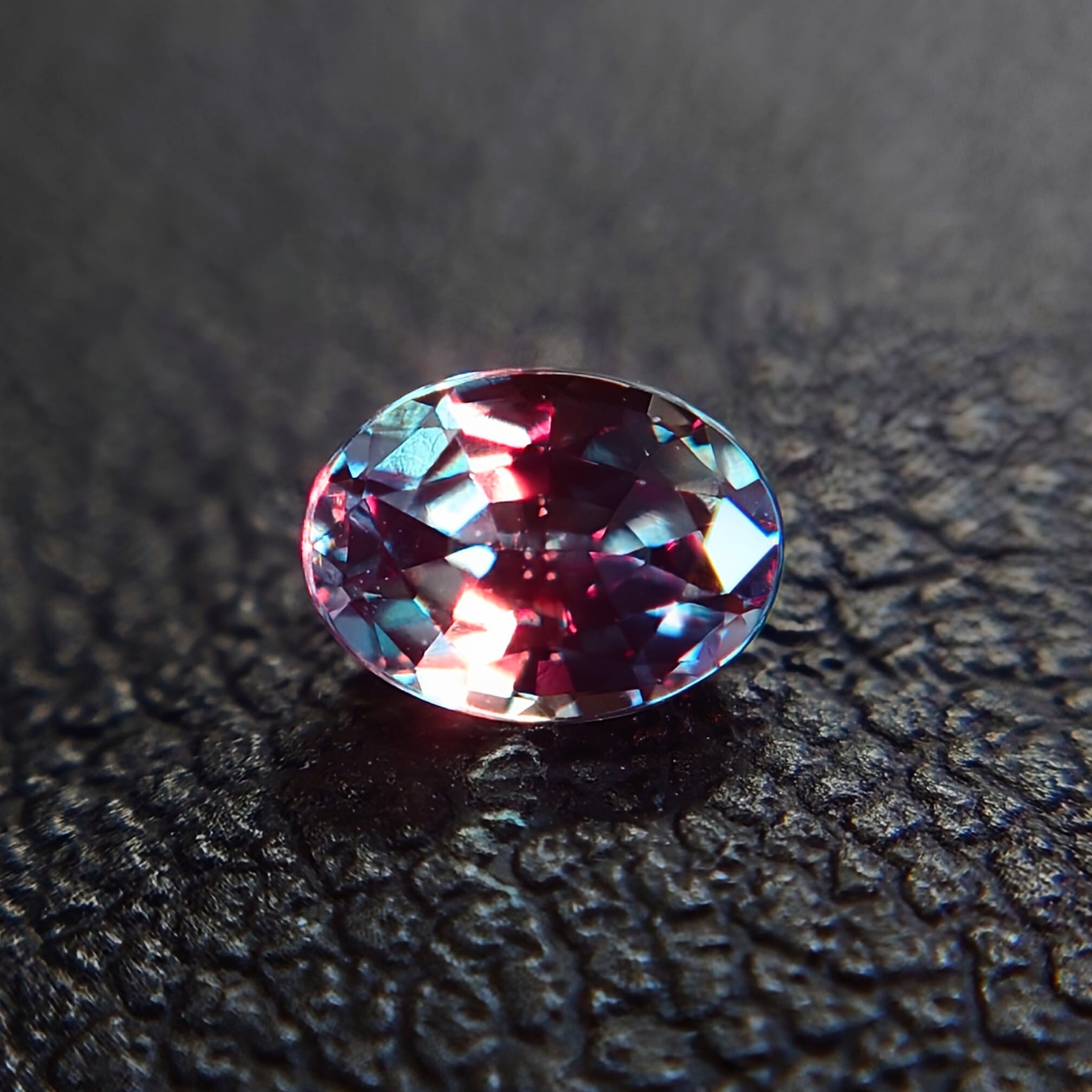 一方、白熱灯や暖色光の下では深みのあるパープル〜ラズベリーレッドへと変化し、アレキサンドライトならではのドラマティックなカラーチェンジをお楽しみいただけます。