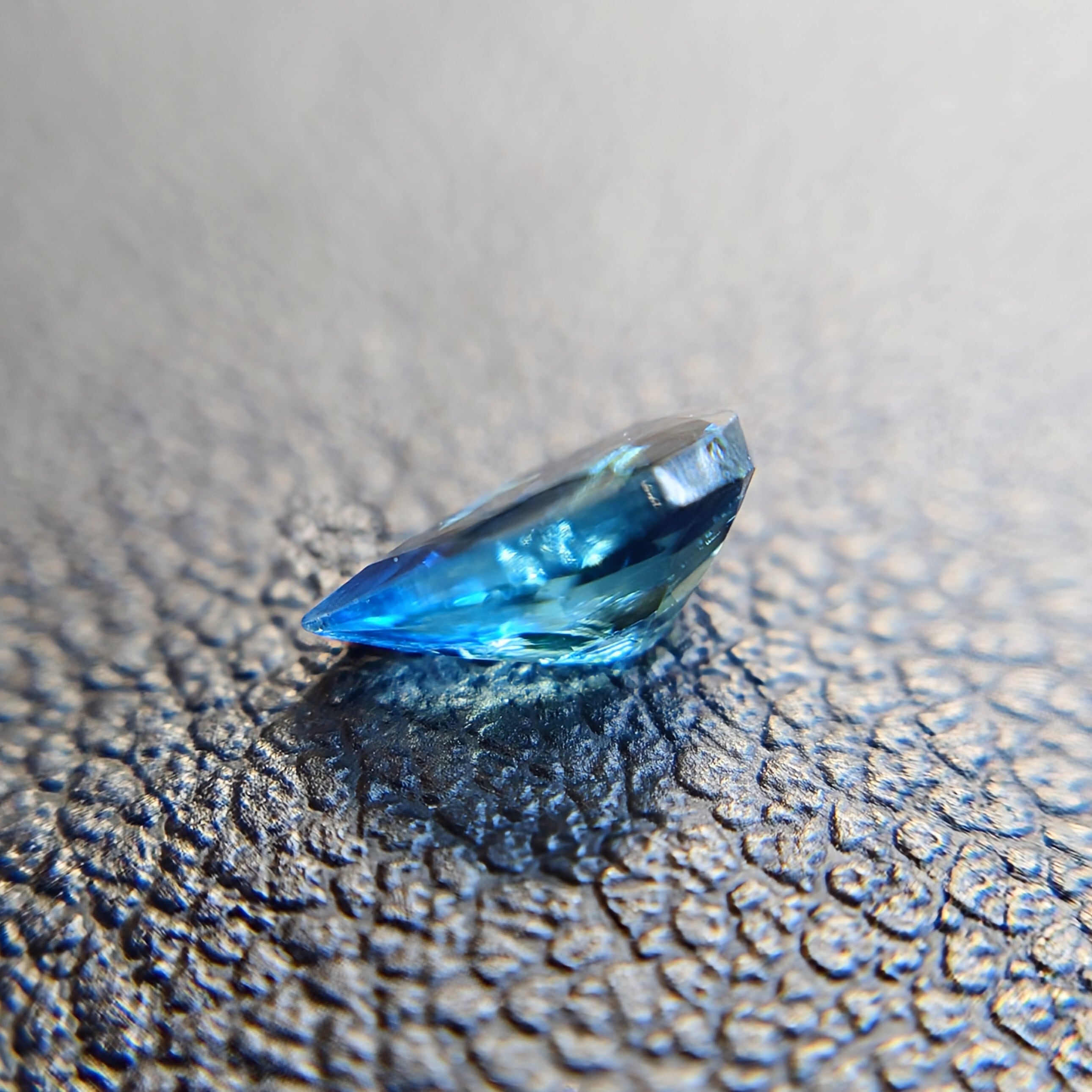 本石は光を受けることで鮮やかなブルーからややグリーンを含んだブルーまで、奥行きのある色彩をお楽しみいただけます。