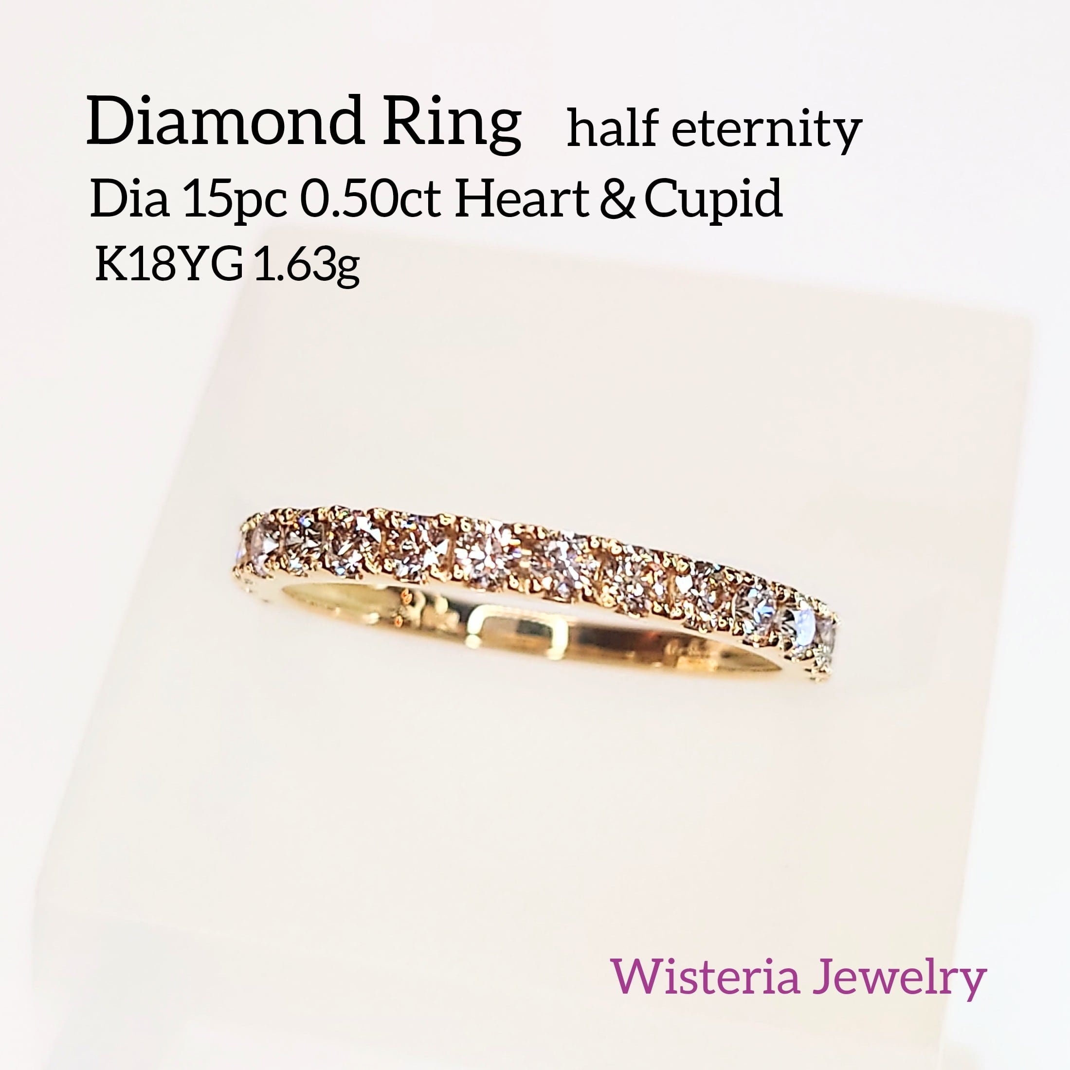 Diamond Ring half eternity Dia 0.50ct Heart&Cupid K18YG☆