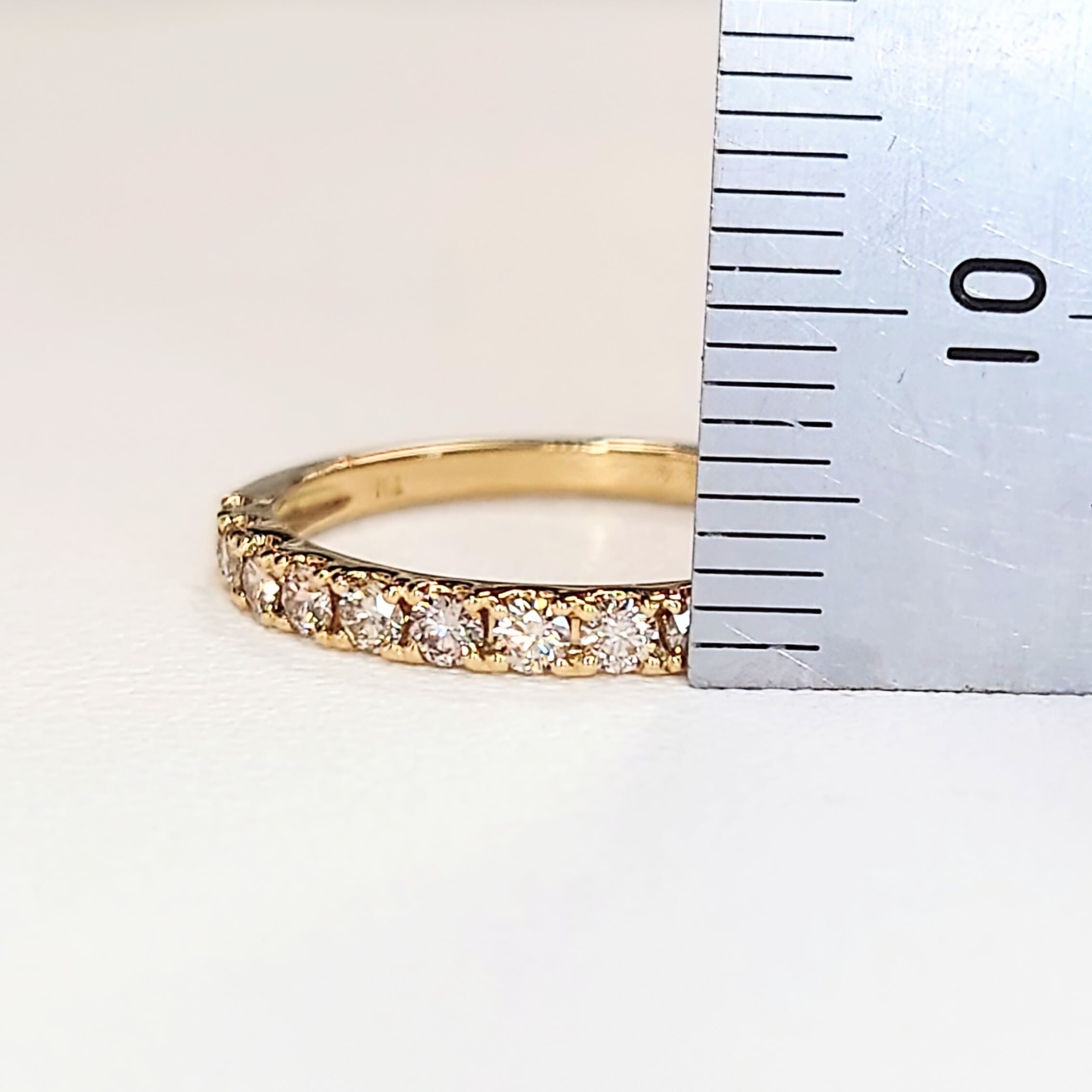 繊細に並ぶ15石のダイヤモンドが、指元に上品な輝きをもたらすハーフエタニティリング。