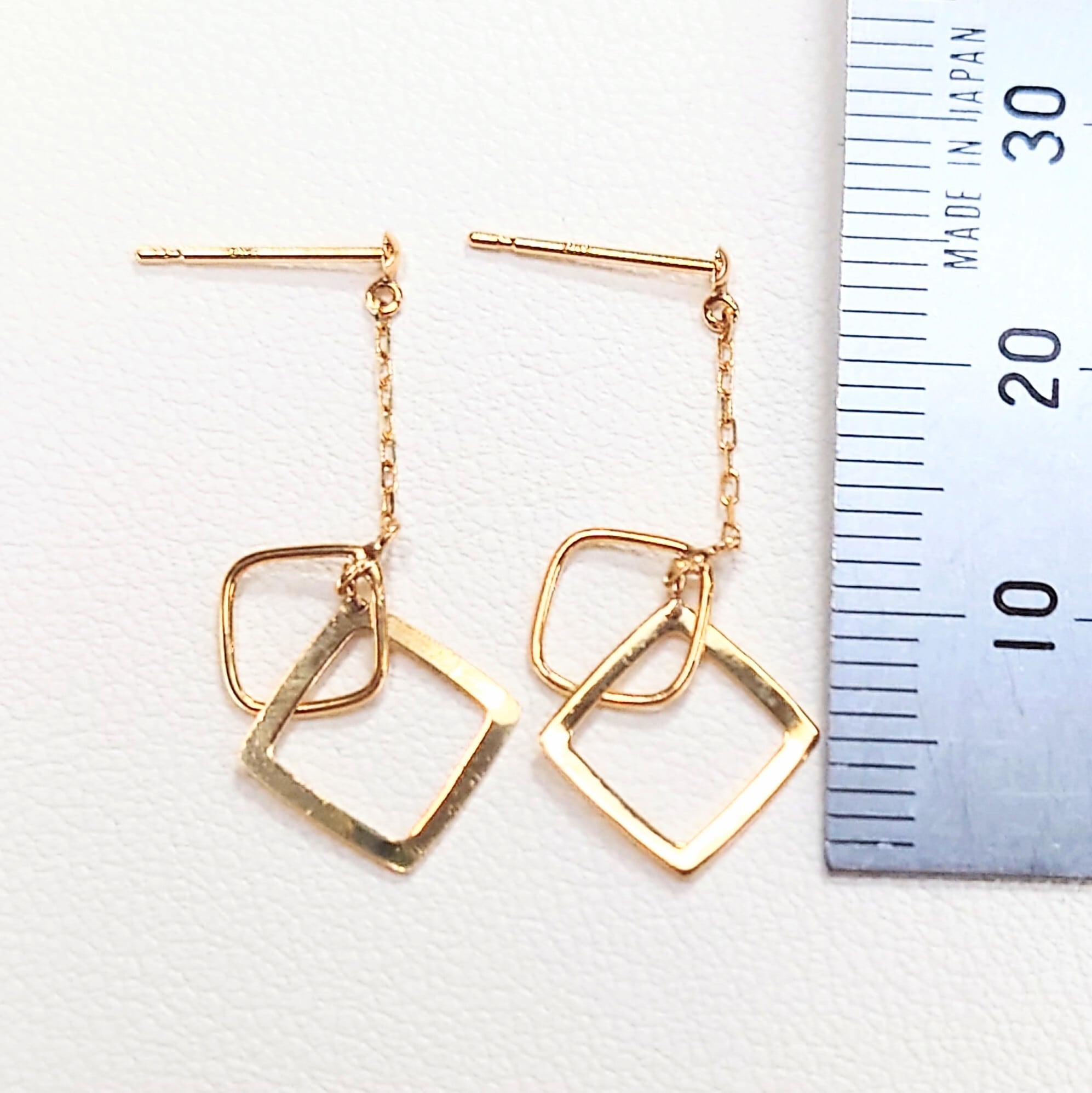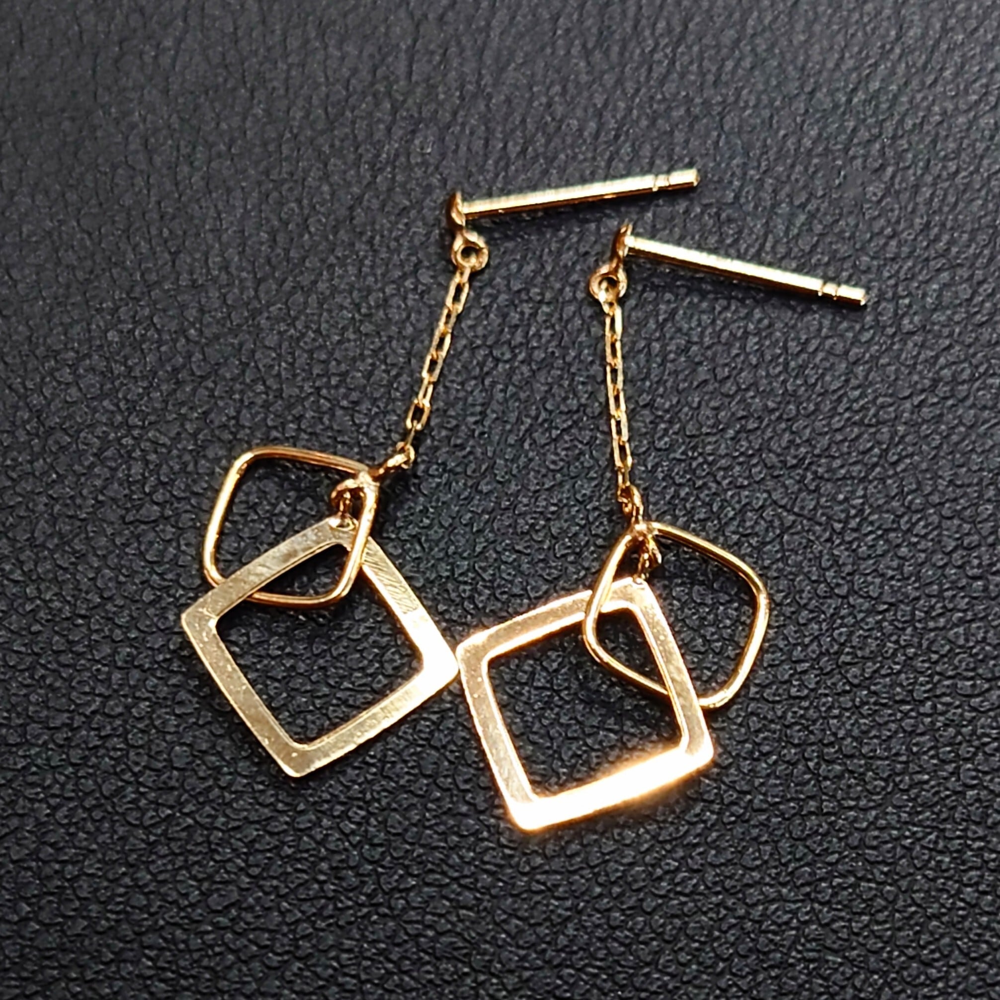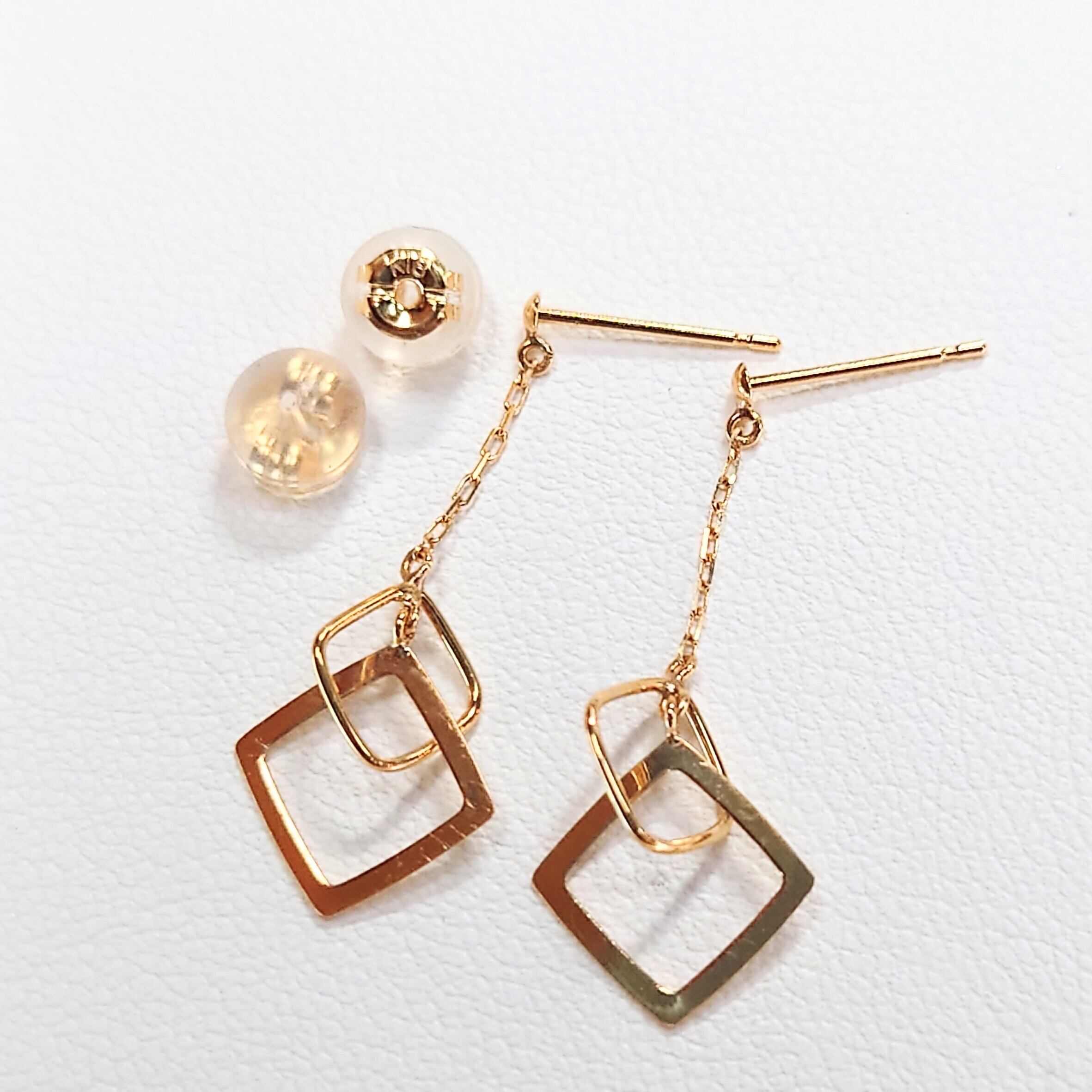 軽やかに揺れるチェーンと、重なり合うスクエアモチーフが印象的なピアス。