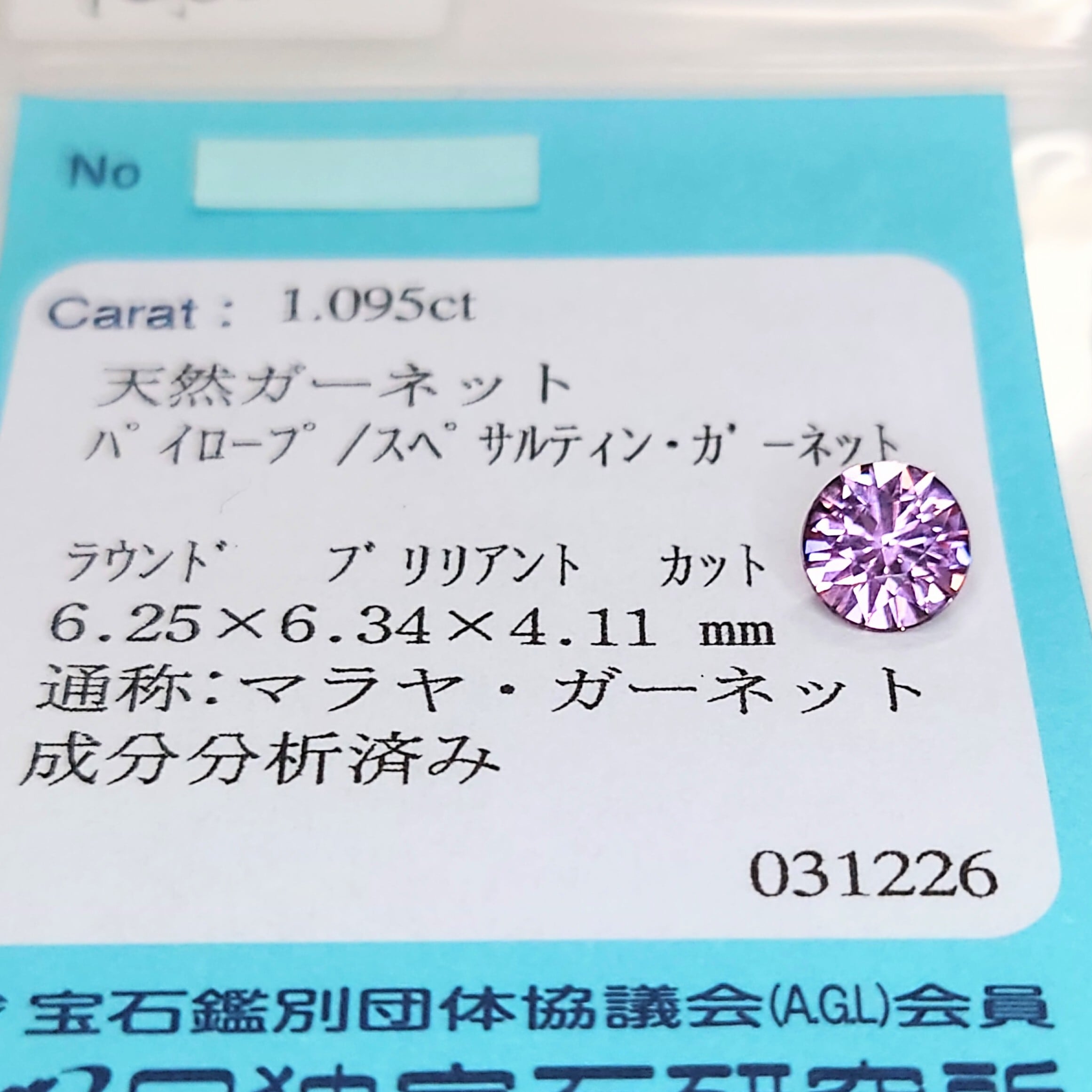 Malaya Garnet / Dragon Garnet 1.095ct JGGLソ付 ルース☆