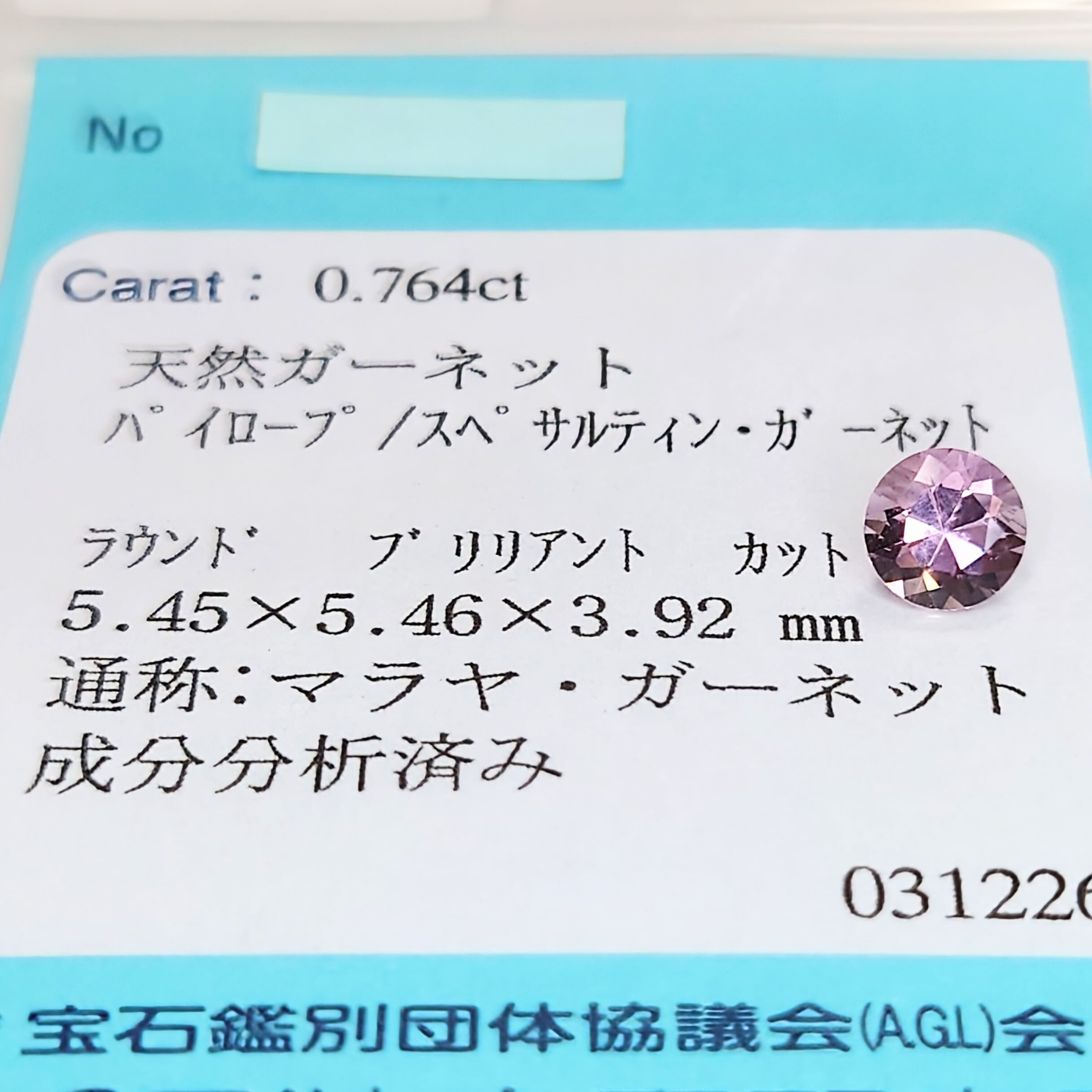 マラヤガーネット 0.764ct ☆☆☆