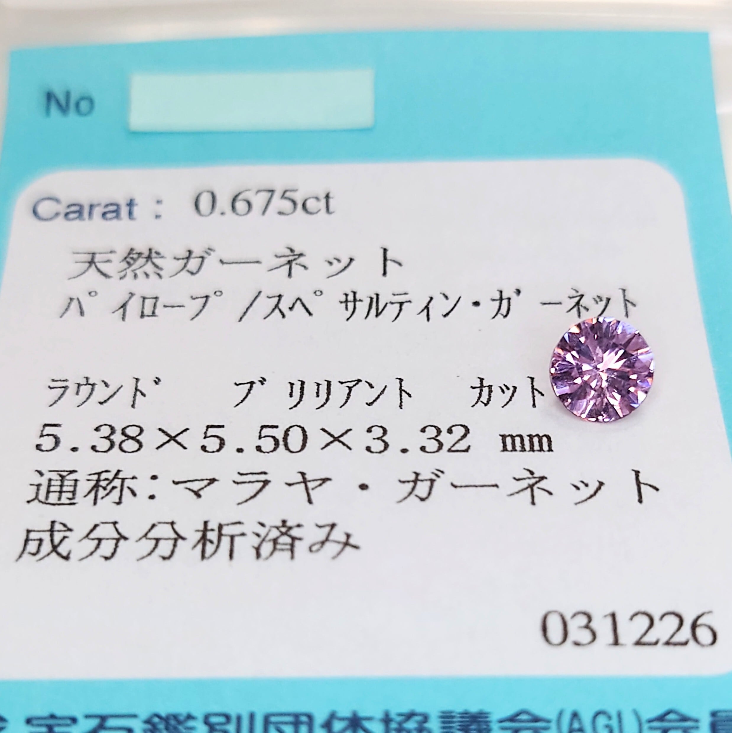 マラヤガーネット 0.675ct ☆☆☆