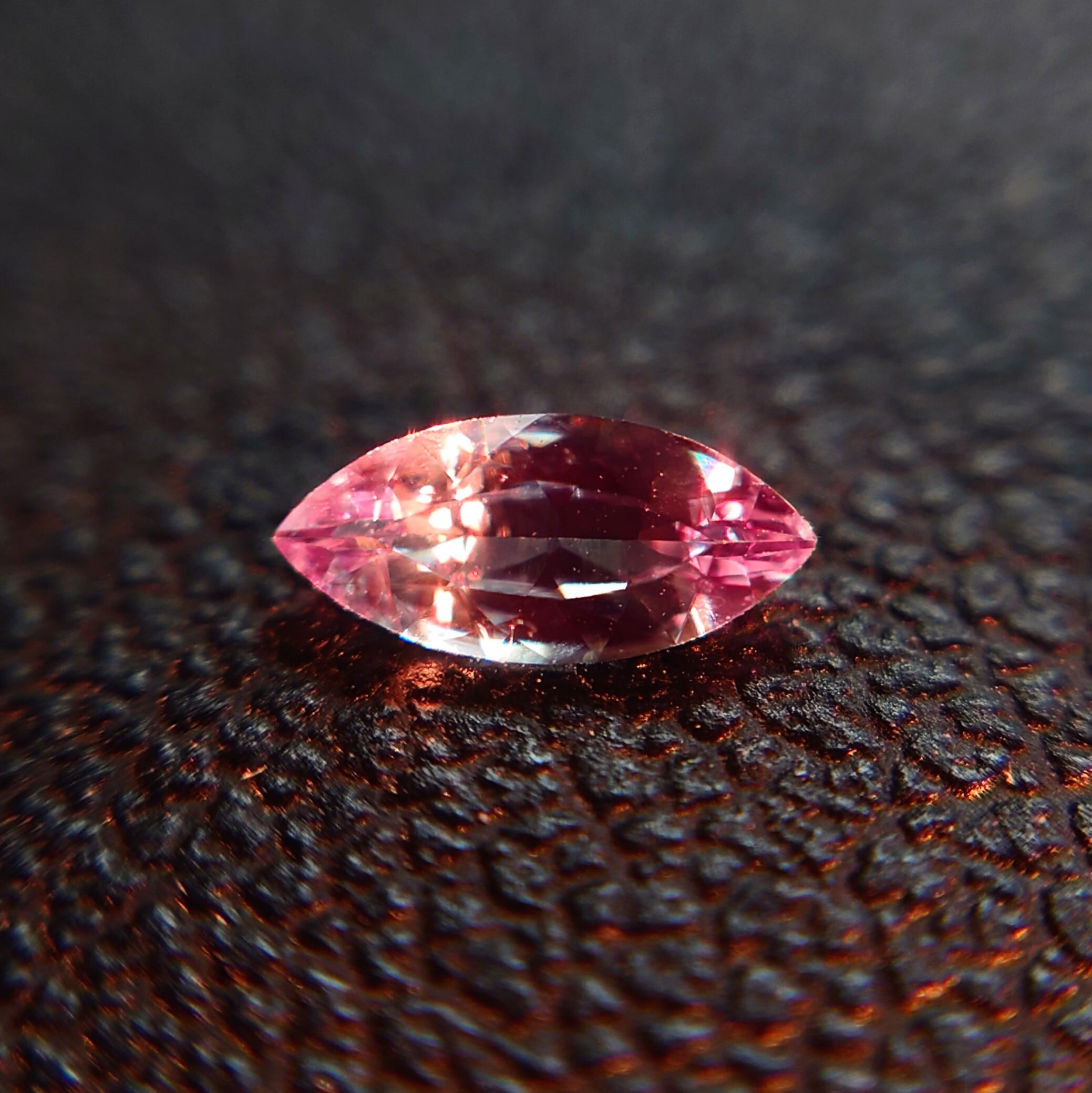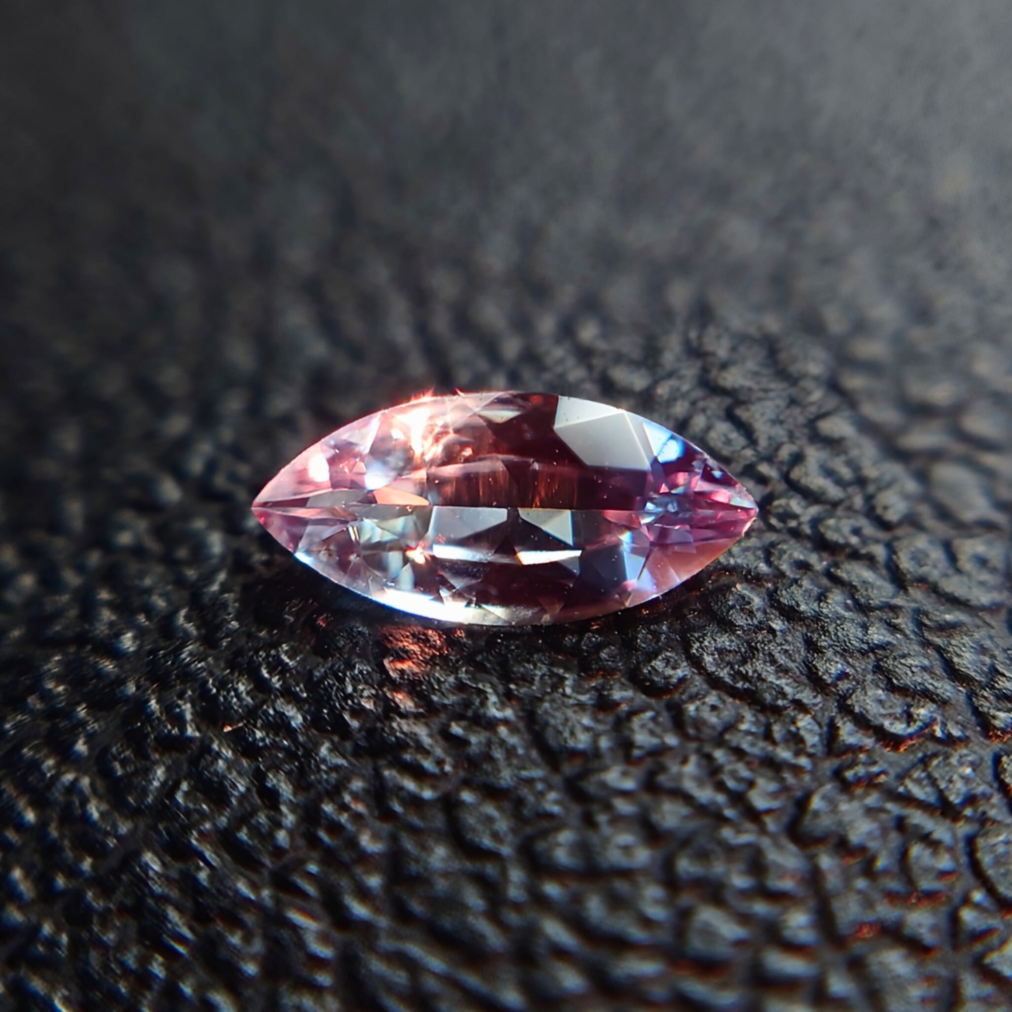 本石はマーキスカットによる洗練されたプロポーションを持ち、シャープな輝きと優雅なシルエットが印象的。