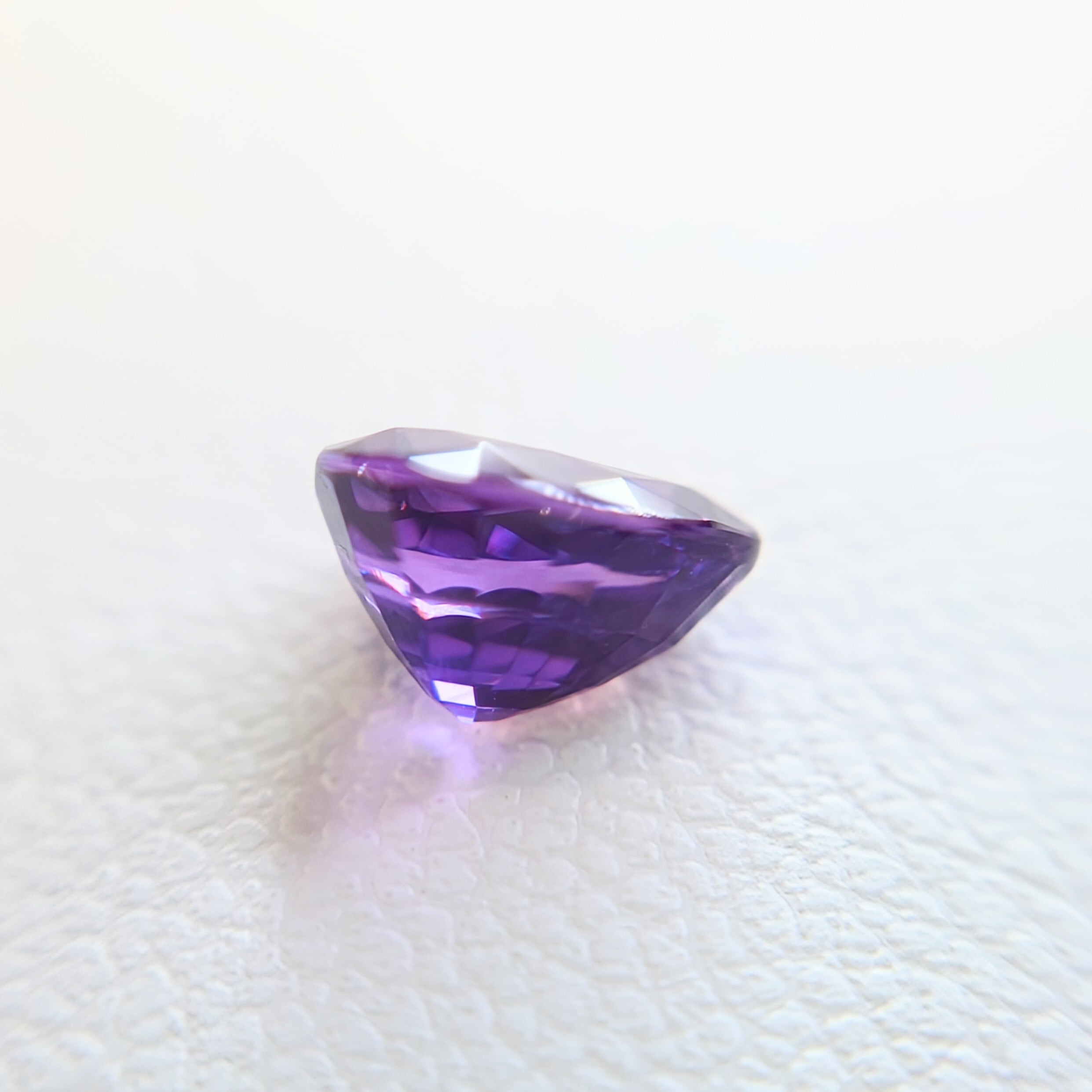 市場でも流通量の少ないパープルサファイアの中でも、ここまで色乗りと輝きのバランスが整った個体は希少。