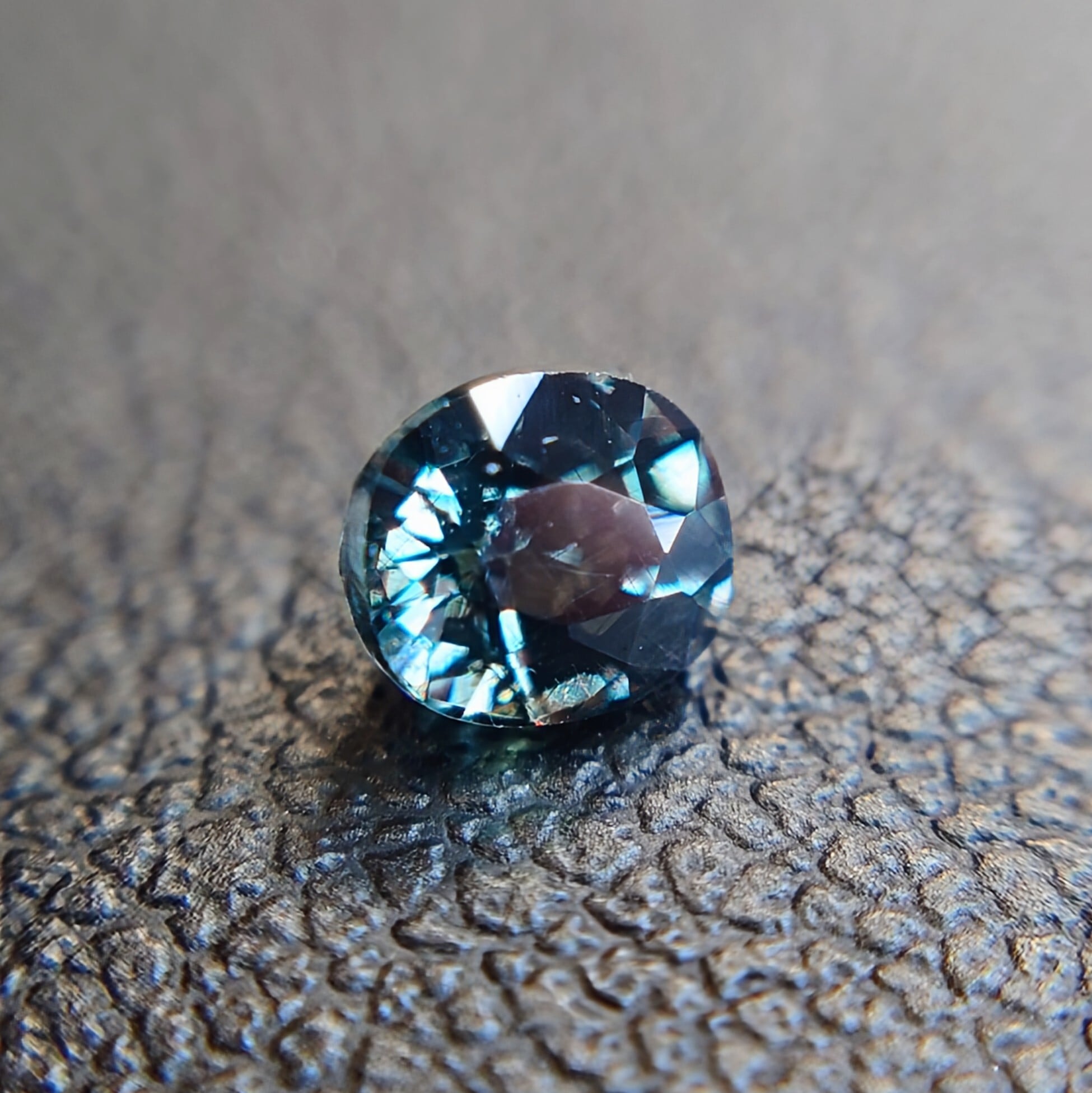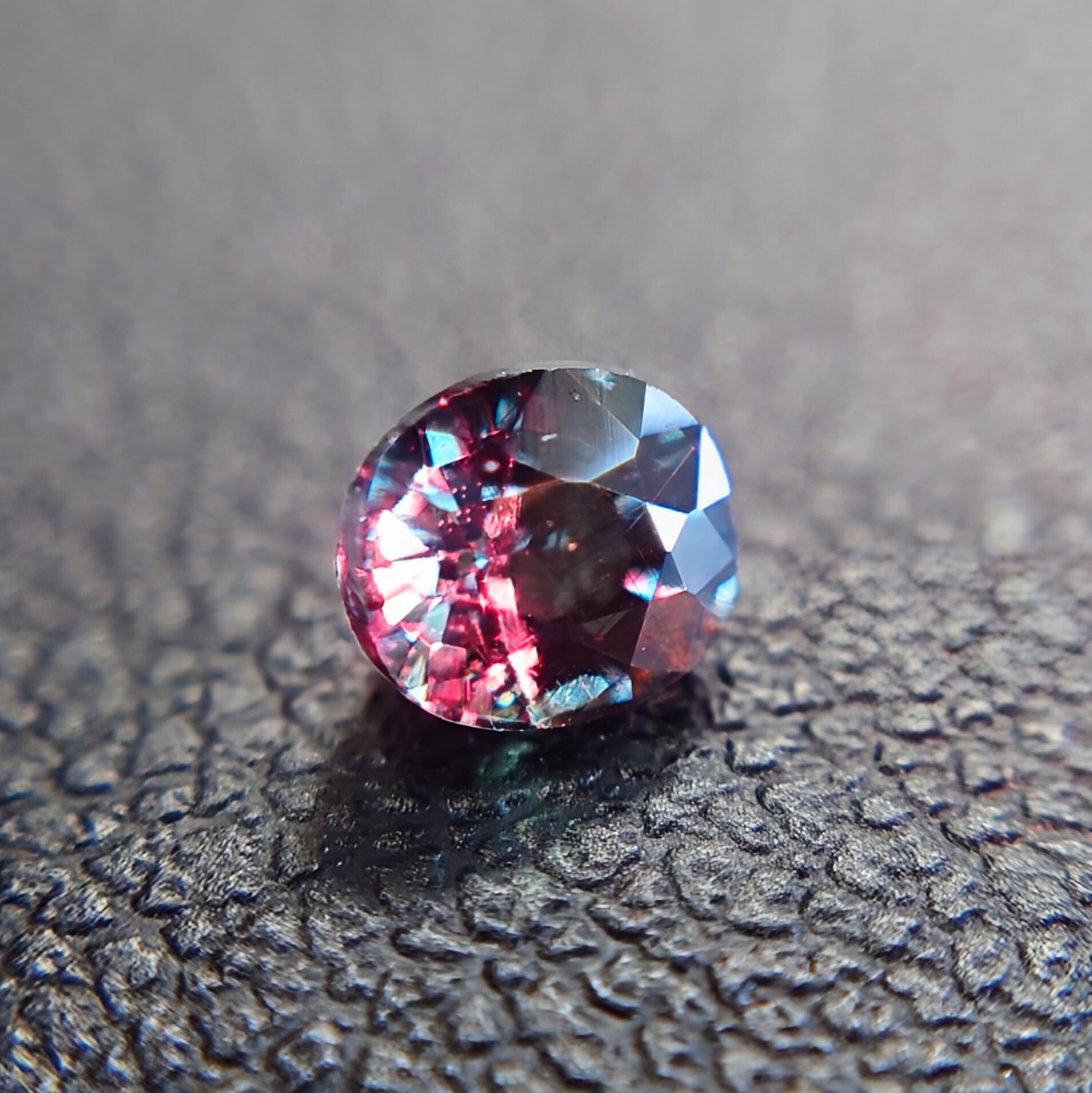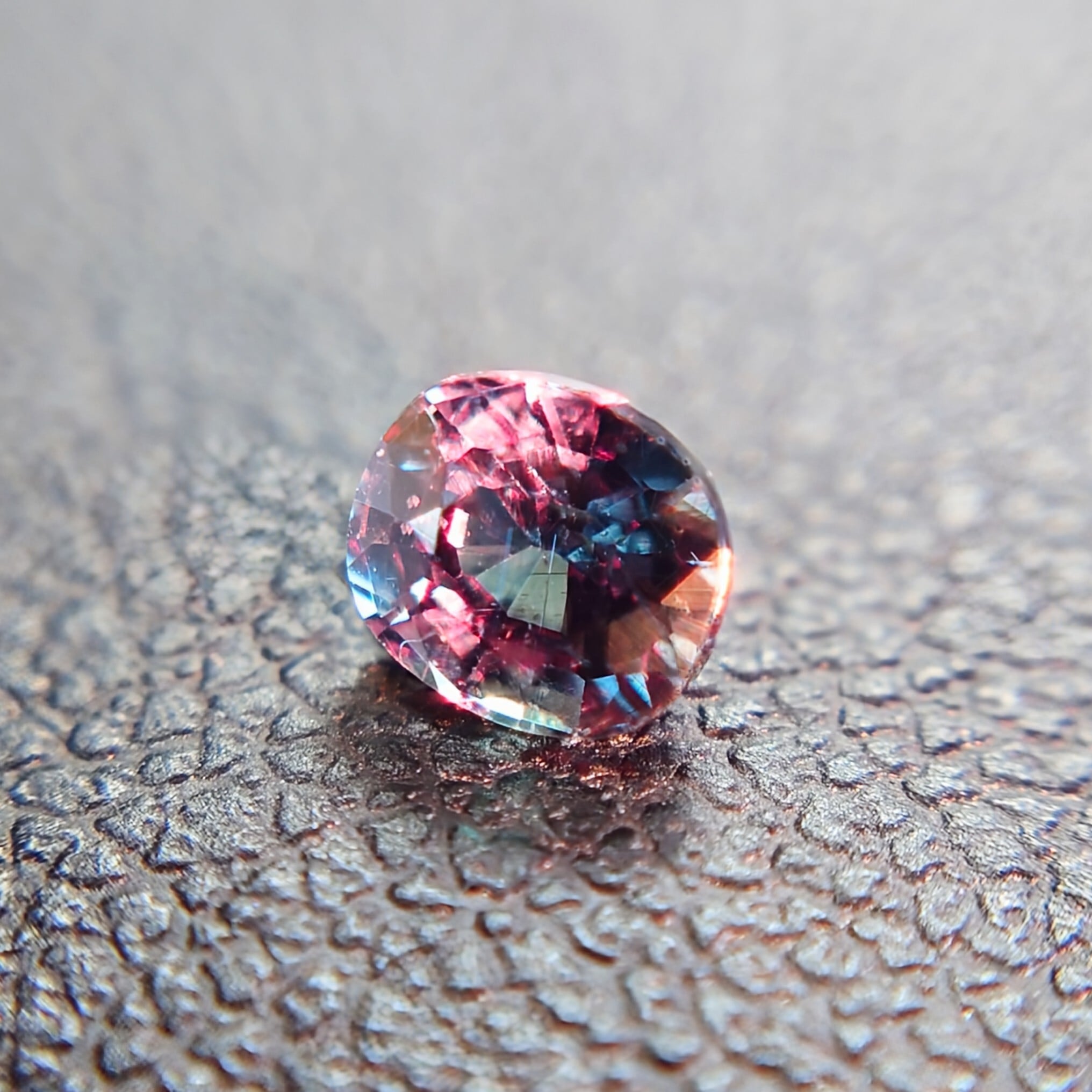 自然光下では深みのあるブルーグリーン〜ティールカラーを呈し、白熱光下では鮮やかなレッド〜パープリッシュレッドへと劇的に変化する、神秘的な色彩変化が最大の魅力です。