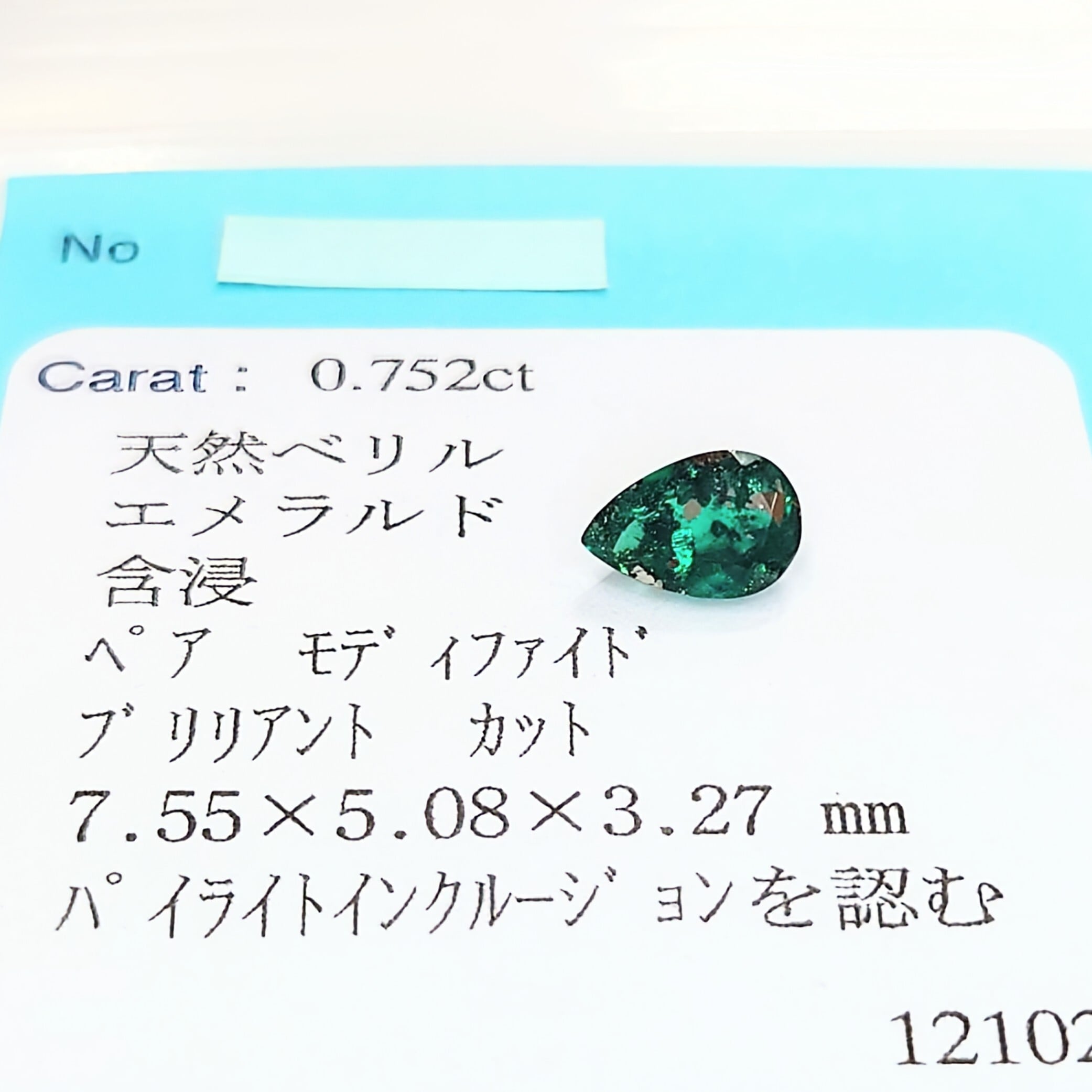 ・宝石名:天然ベリル(エメラルド)