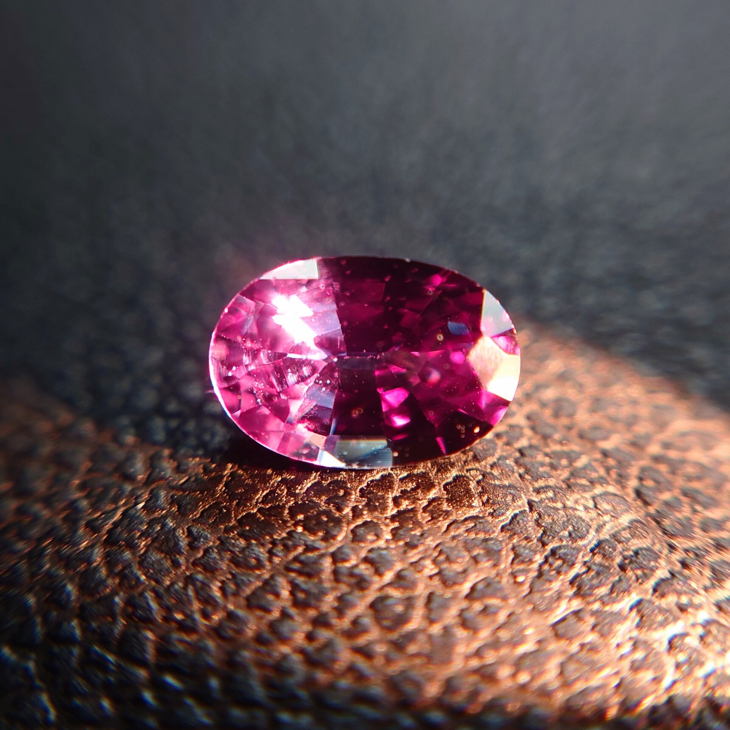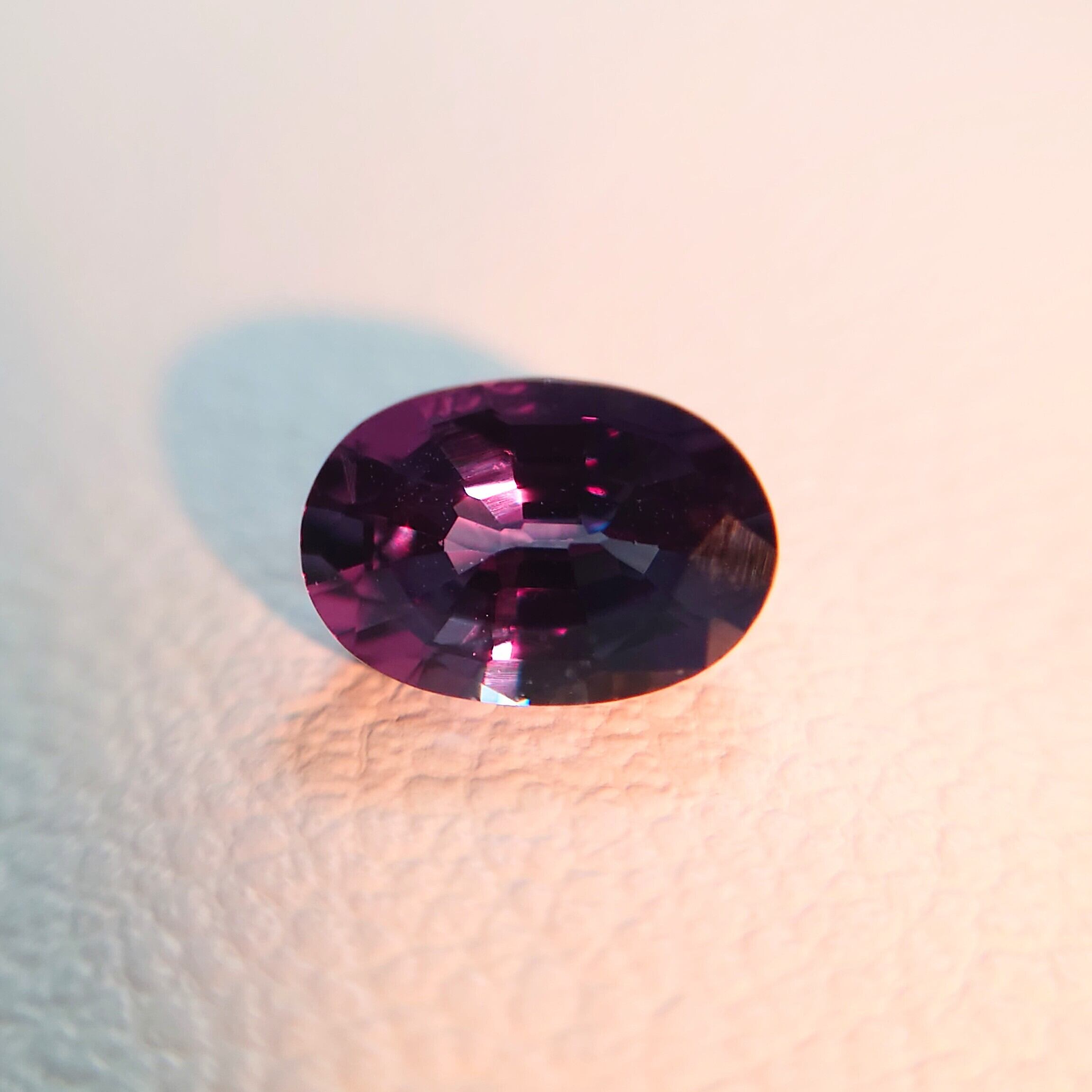 自然光下では透明感のあるクールなブルーを呈し、白熱光下では深みのあるピンク〜パープリッシュレッドへと劇的に変化。