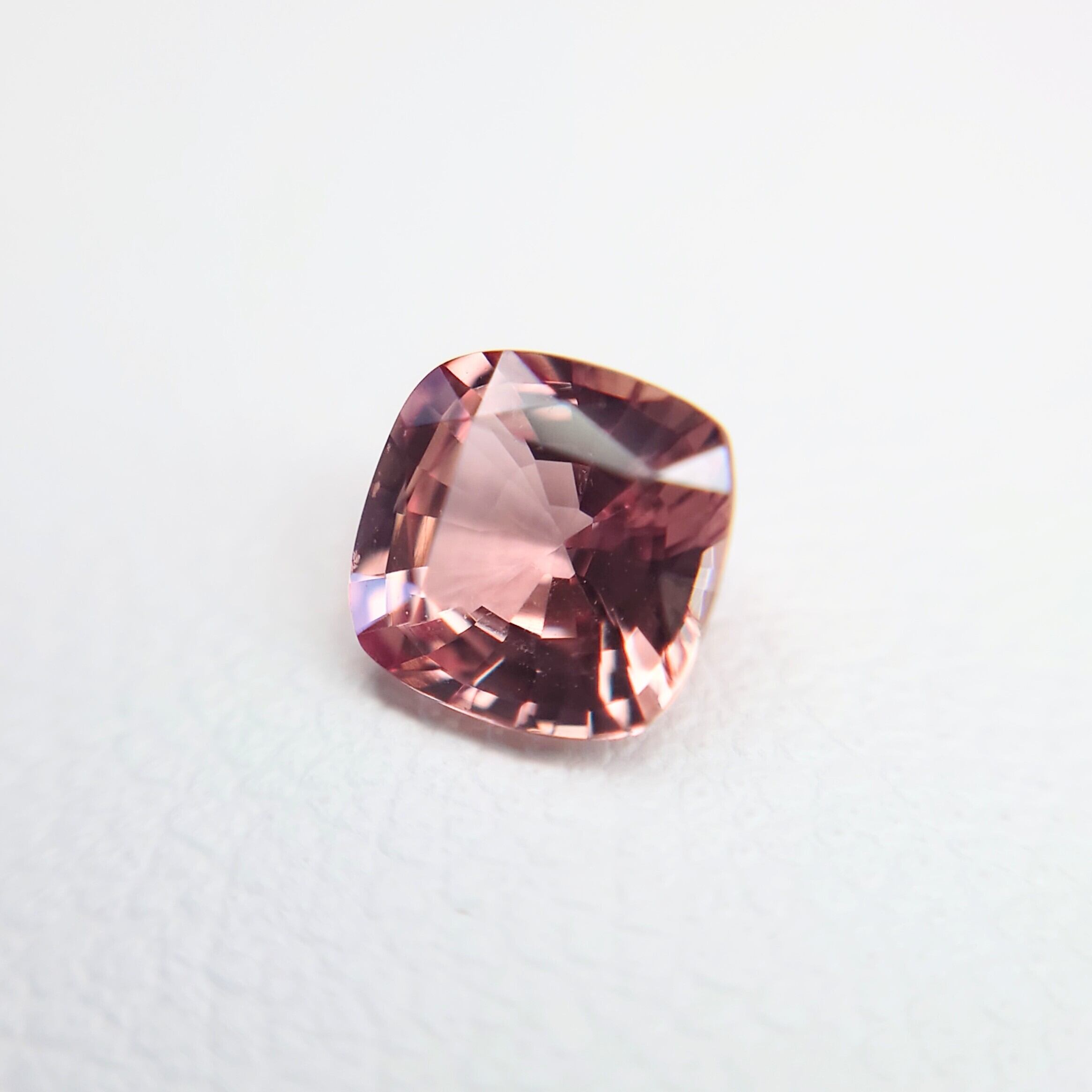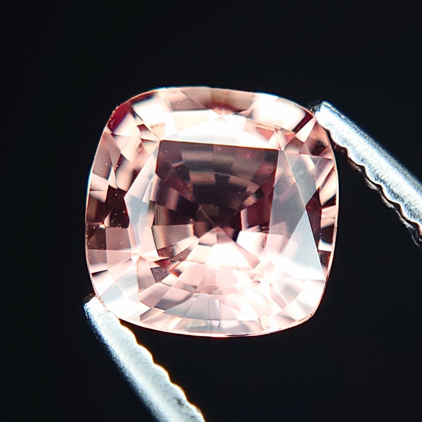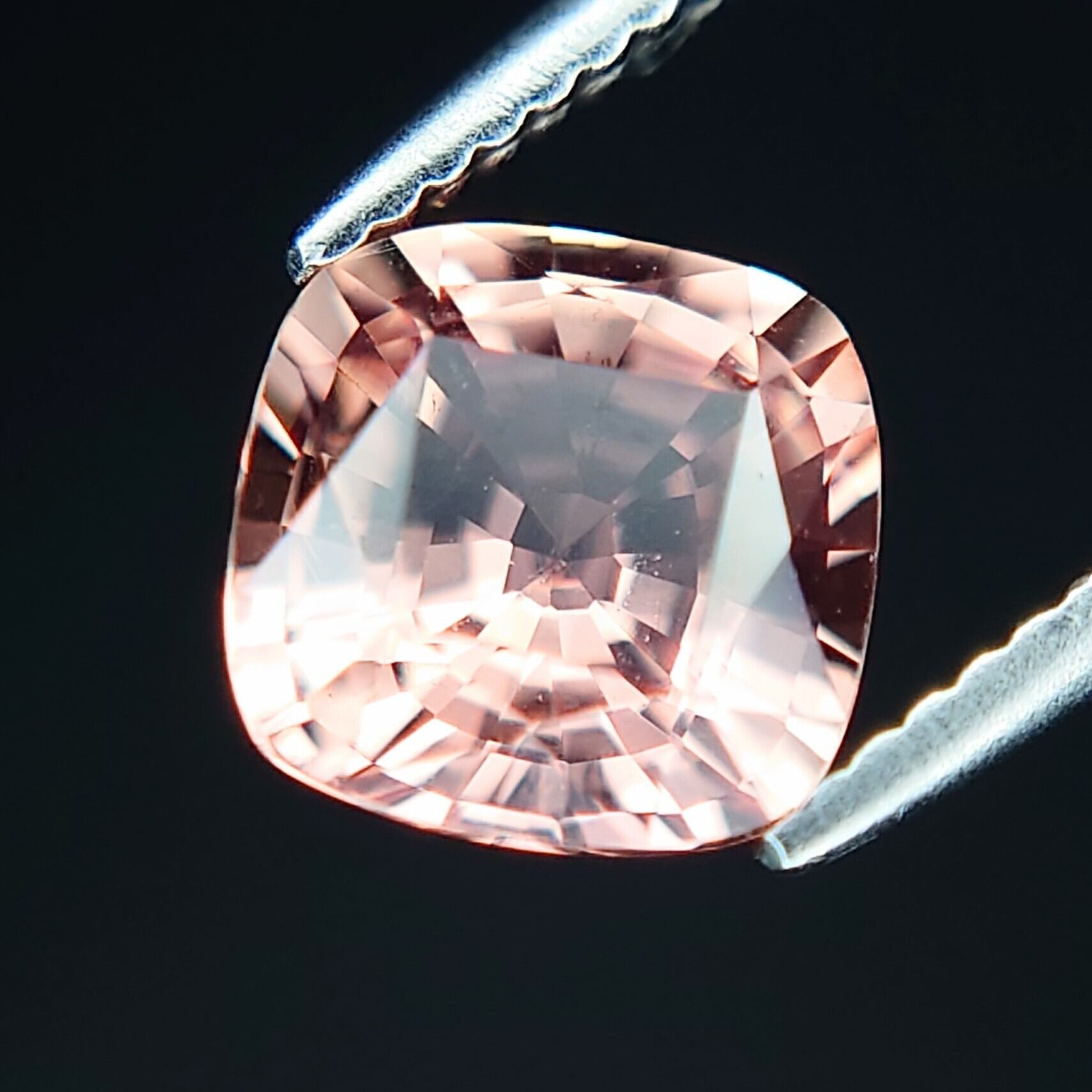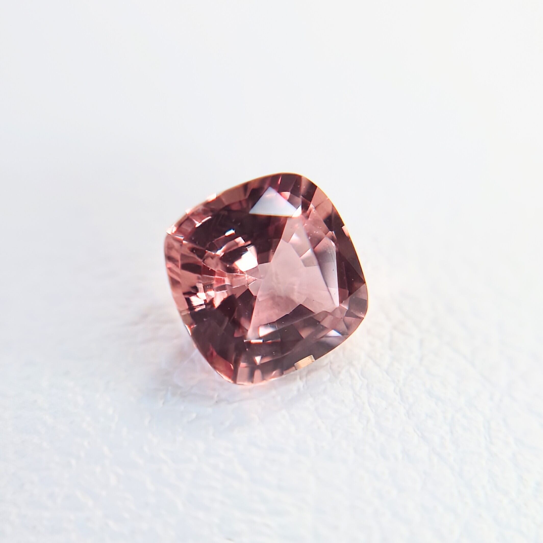 本石は透明度の高い結晶をベースに、柔らかなピーチピンク〜オレンジのグラデーションが美しく広がり、光を受けるたびに繊細な輝きと奥行きを感じさせます。
