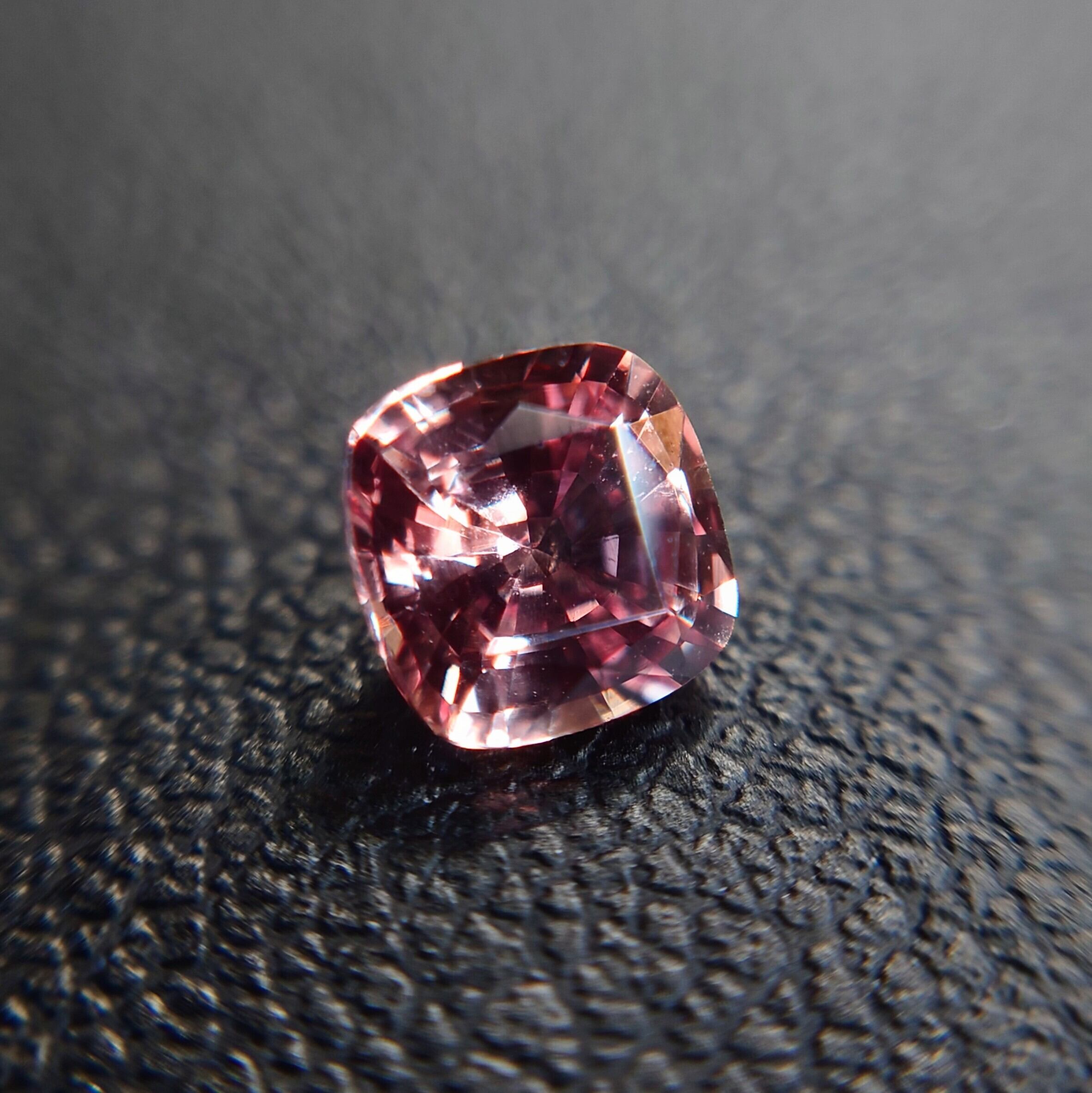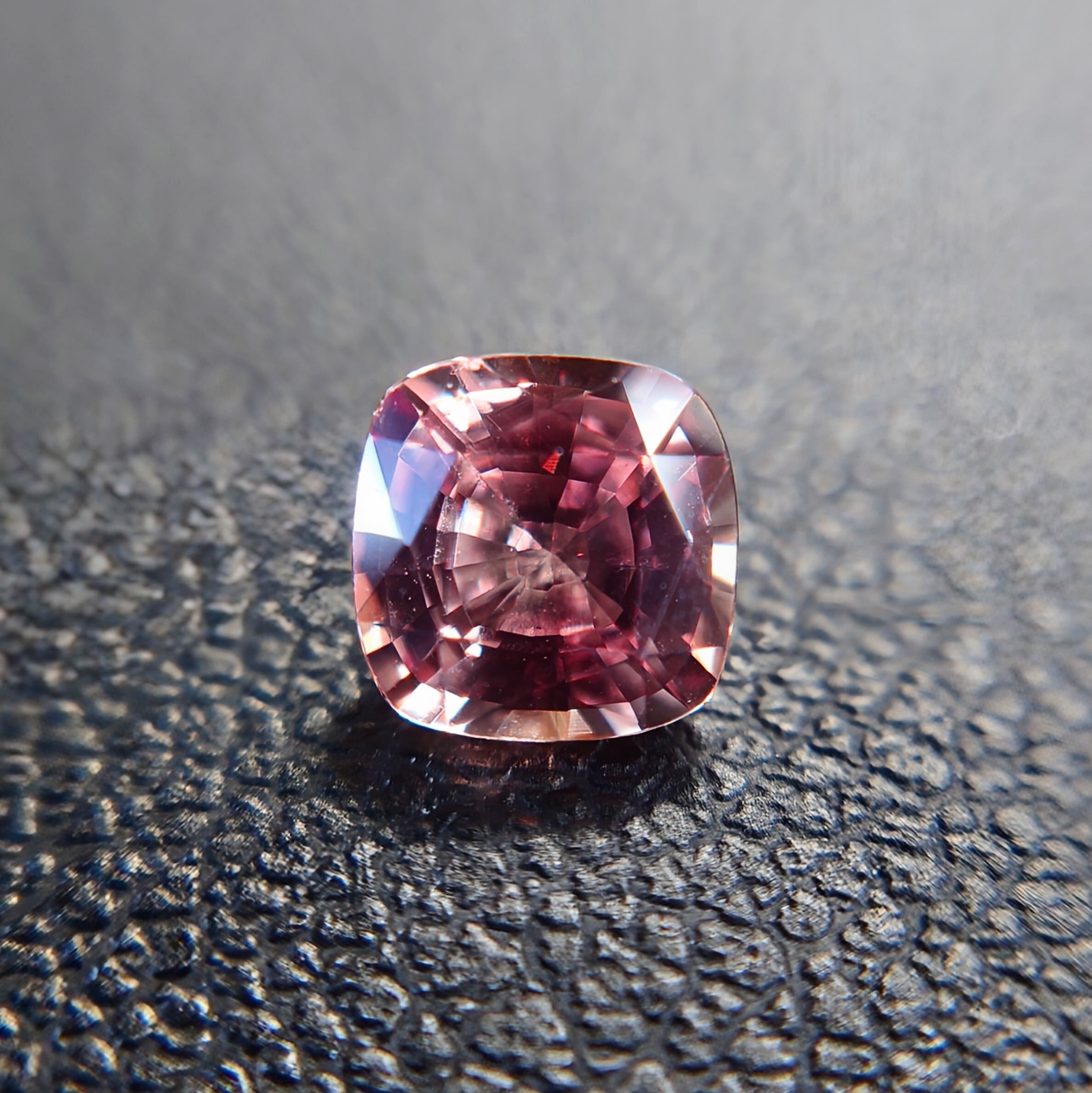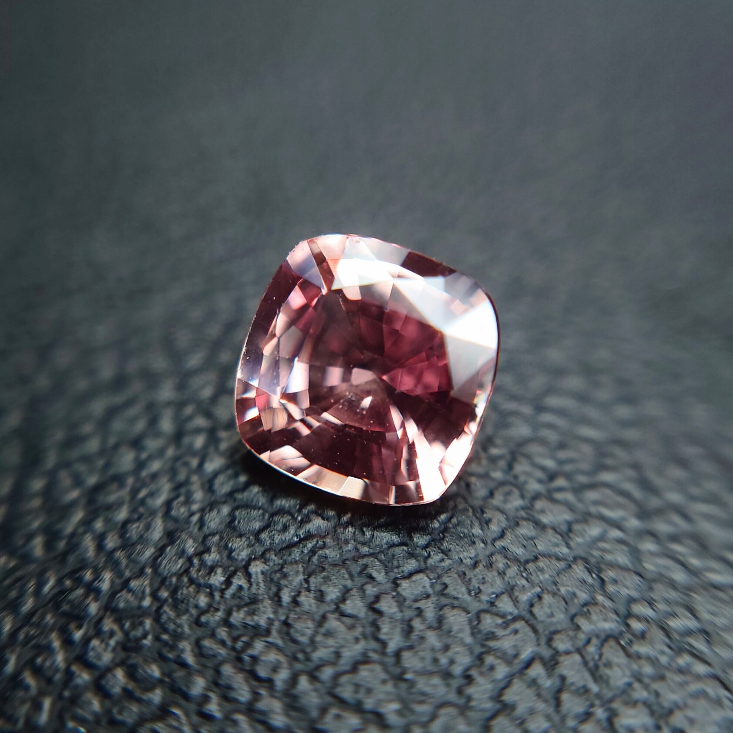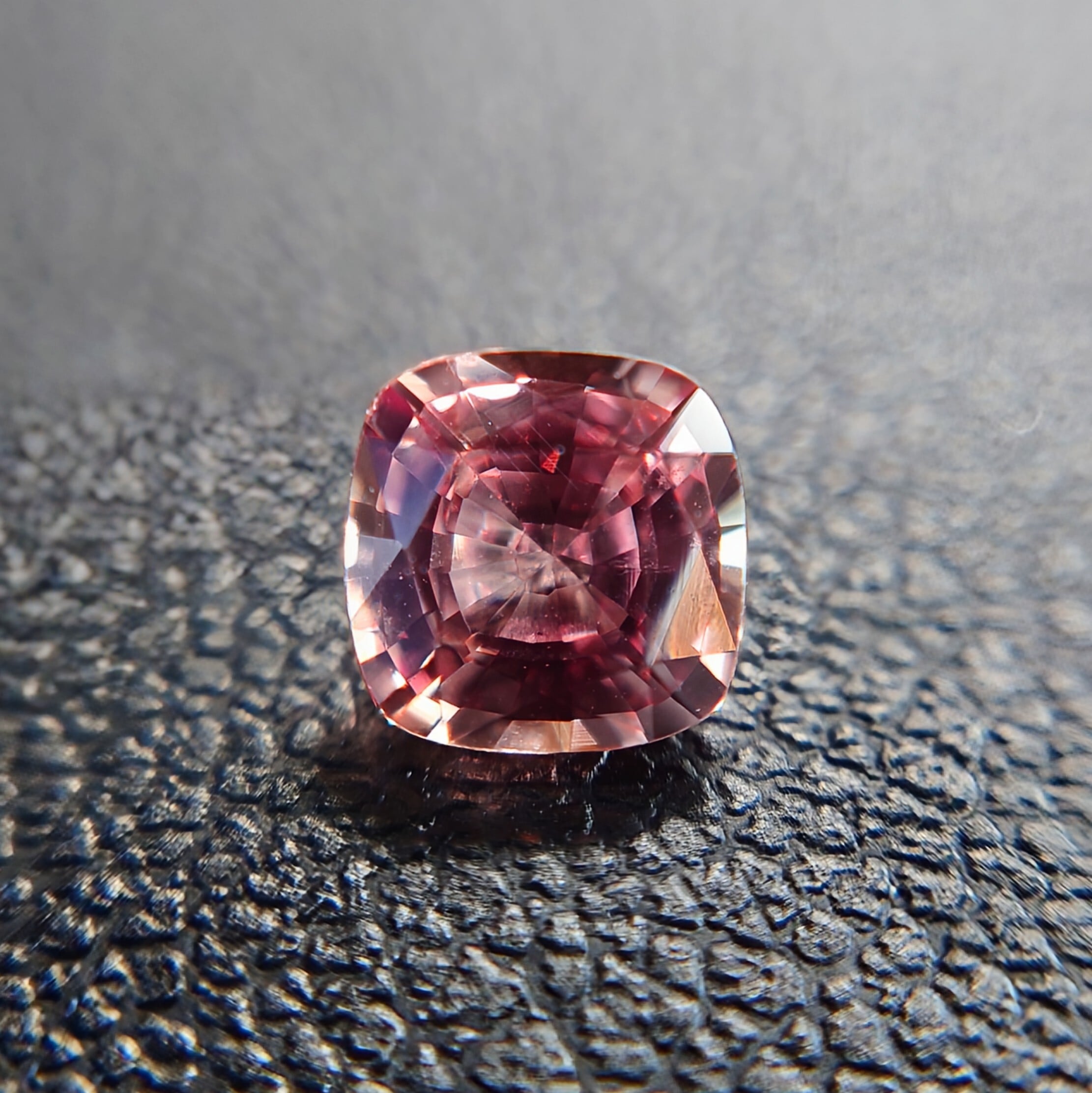 本石は透明度の高い結晶をベースに、柔らかなピーチピンク〜オレンジのグラデーションが美しく広がり、光を受けるたびに繊細な輝きと奥行きを感じさせます。