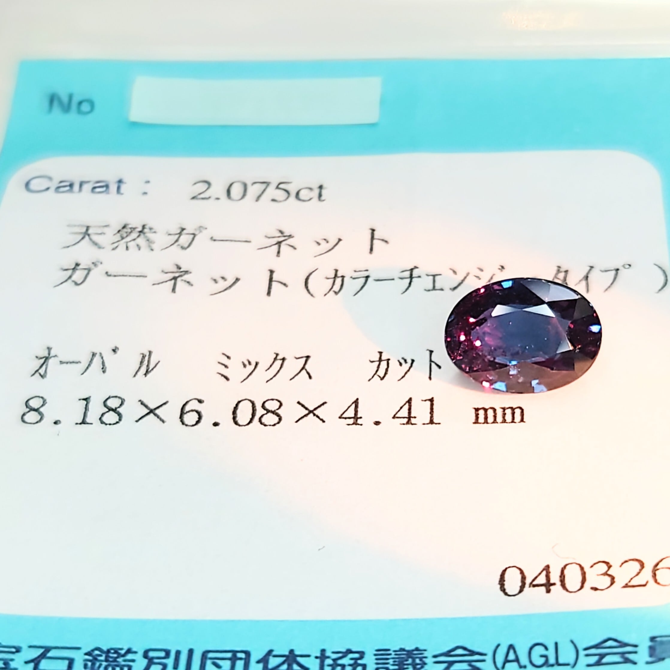 希少 Bekily Blue Garnet color change type 2.075ct JGGLソ付 ルース☆