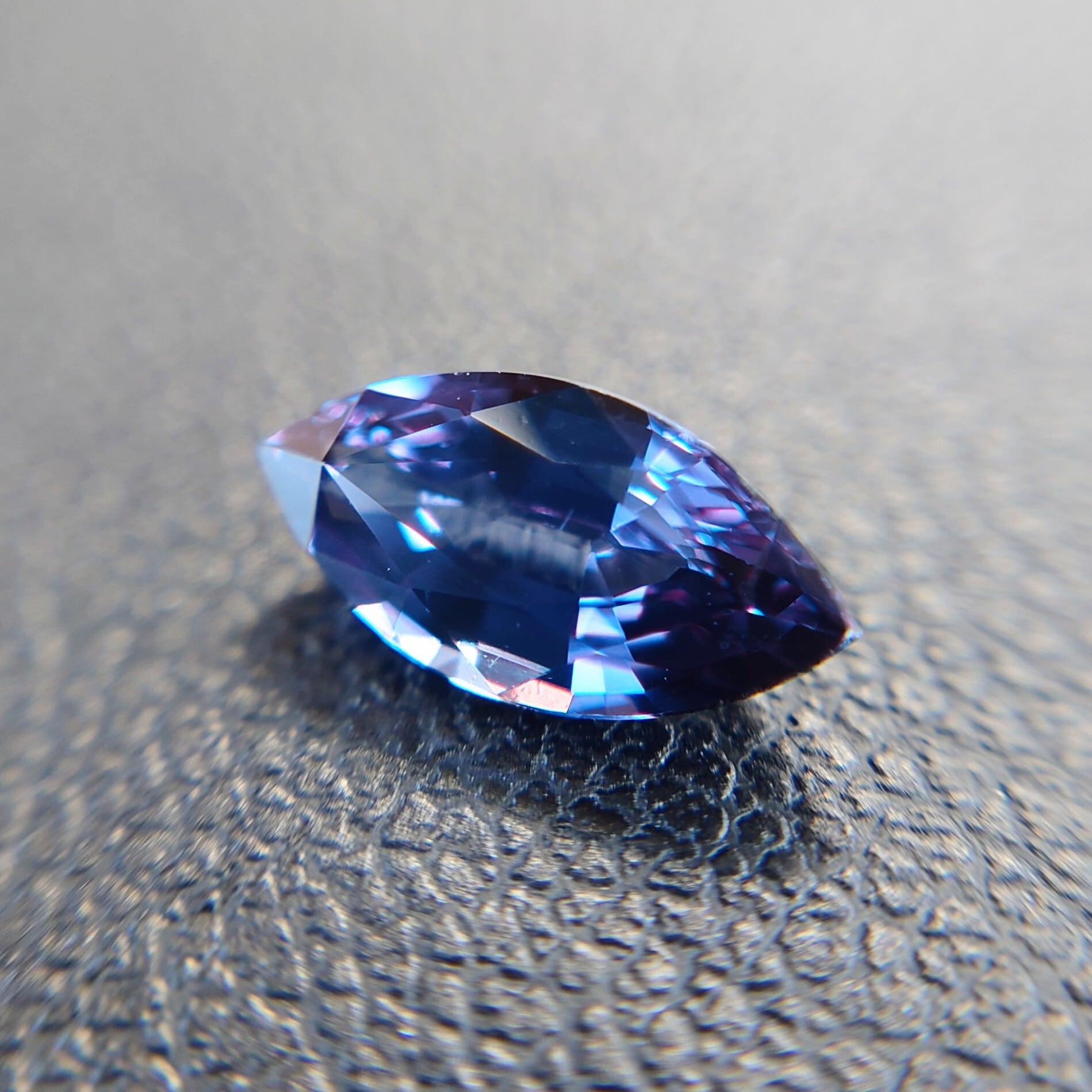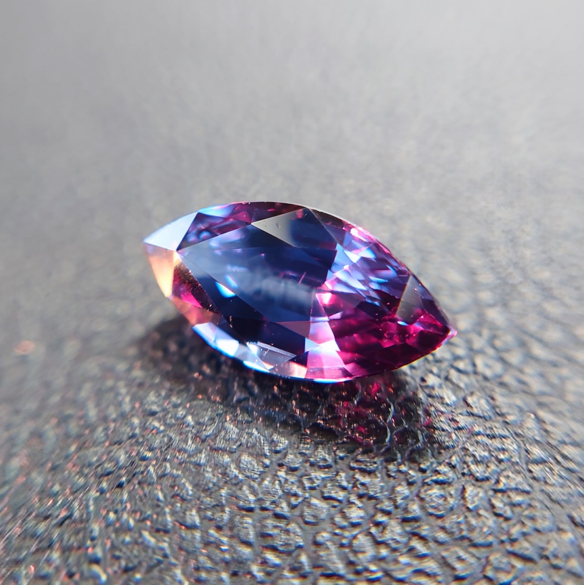 その鮮烈な色変化は、アレキサンドライトにも比肩する神秘性を宿しています。