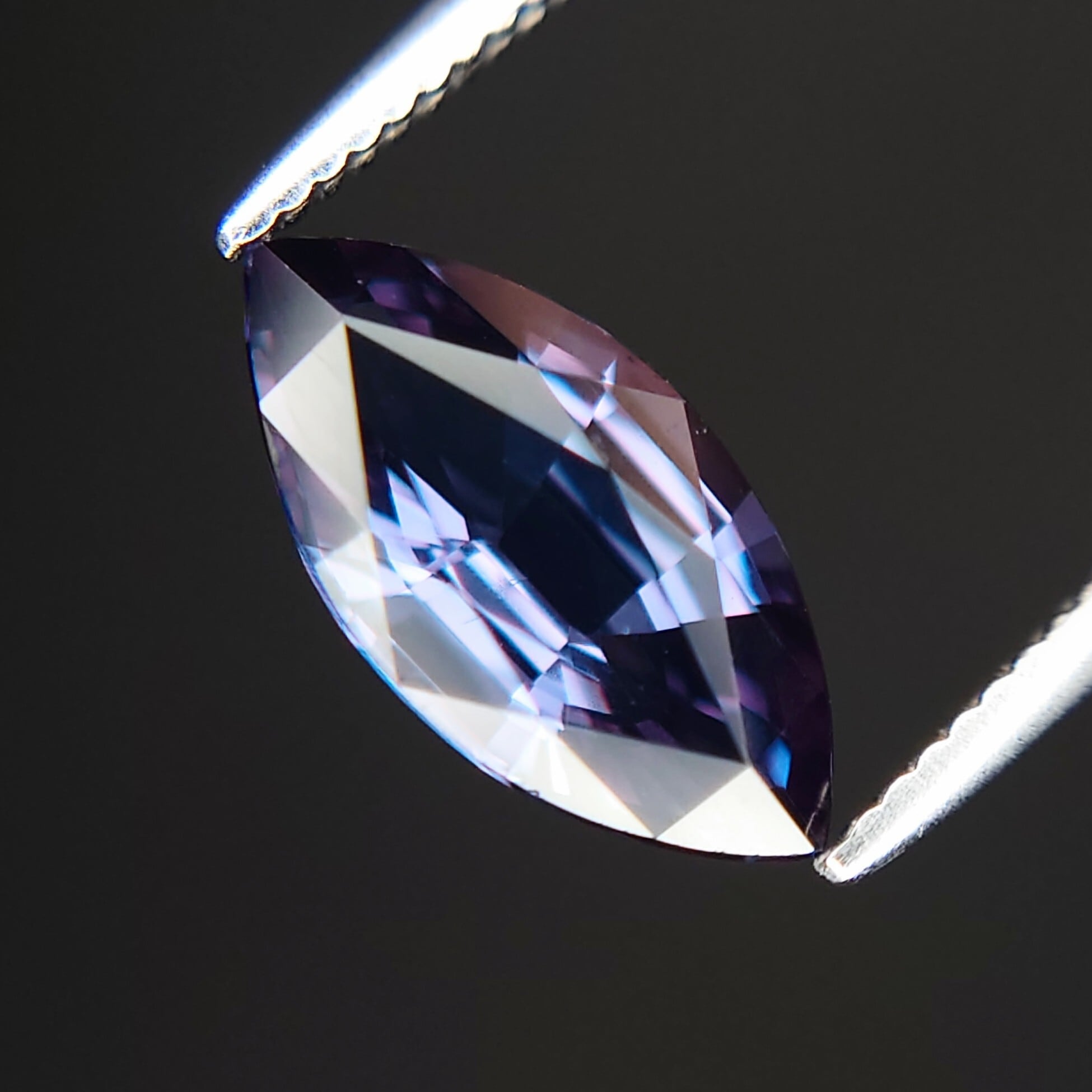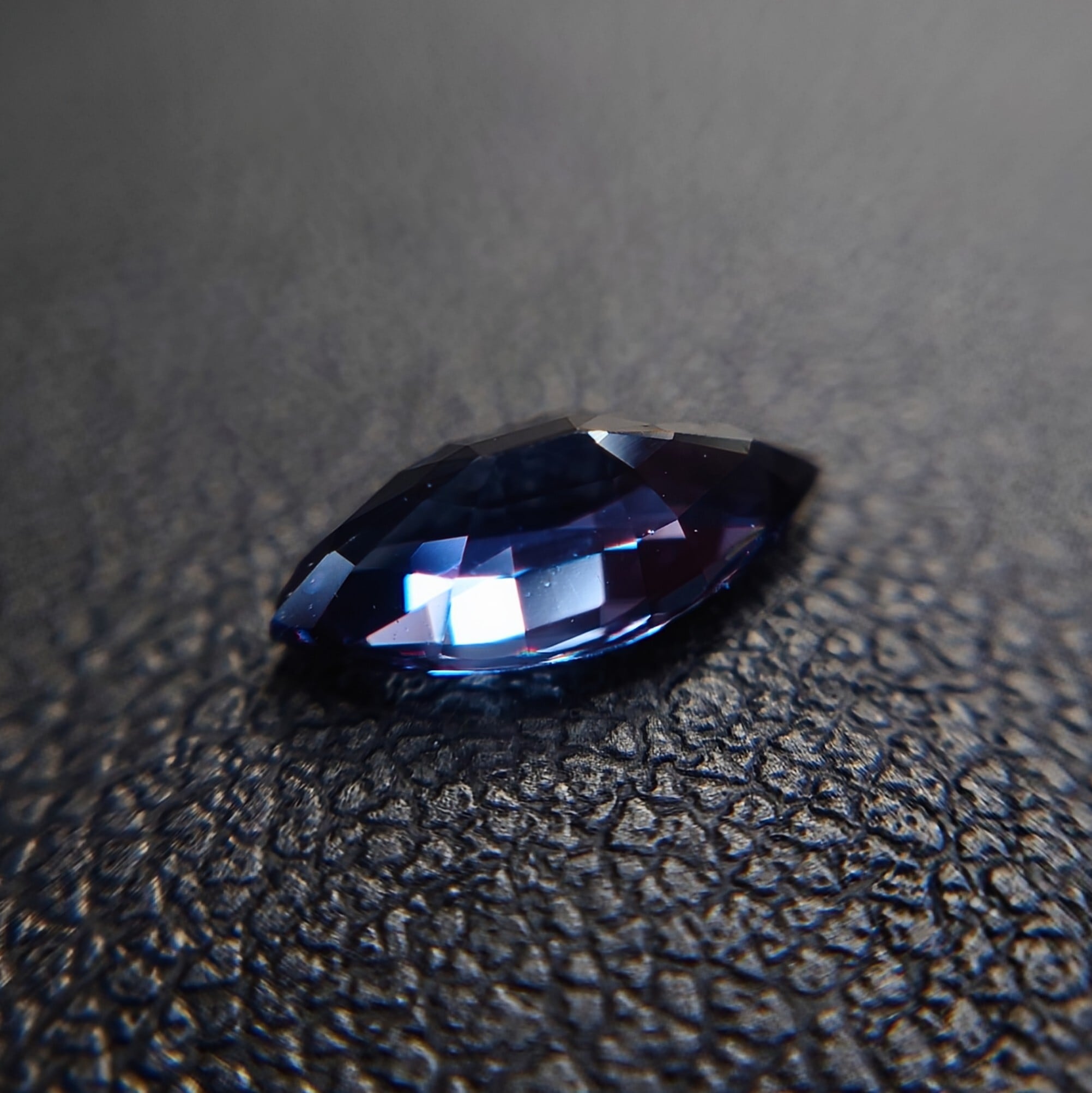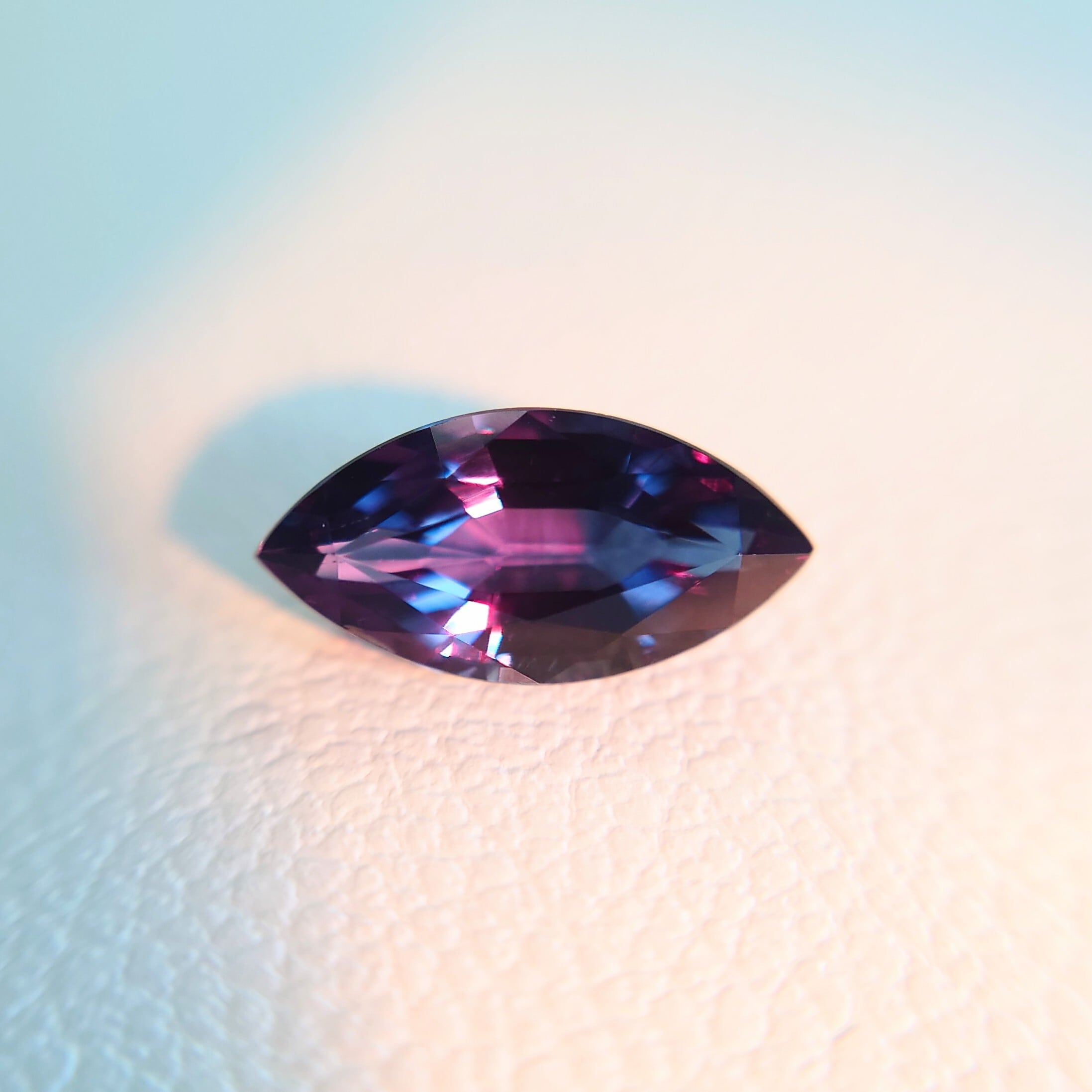 市場流通量が極めて限られるベキリーブルーガーネットの中でも、ここまで明確なカラーチェンジと美しいプロポーションを兼ね備えた個体は稀少。