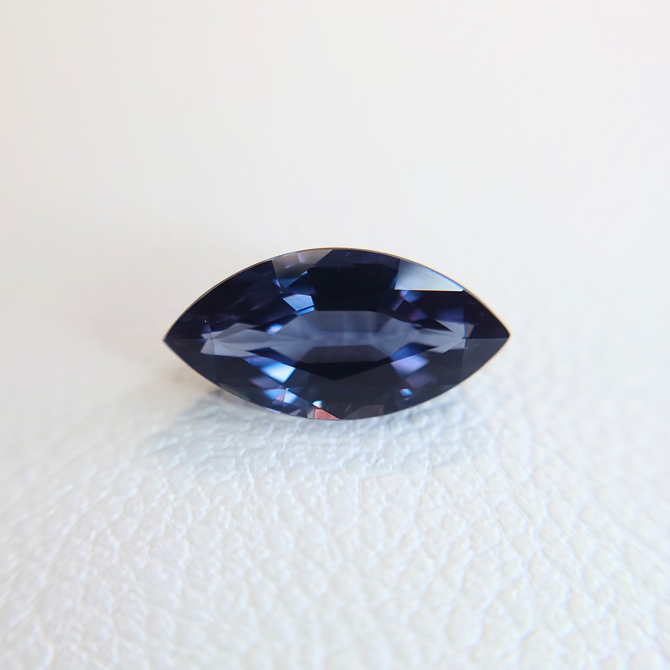 自然光下では深みのあるクールなブルー〜バイオレットを呈し、