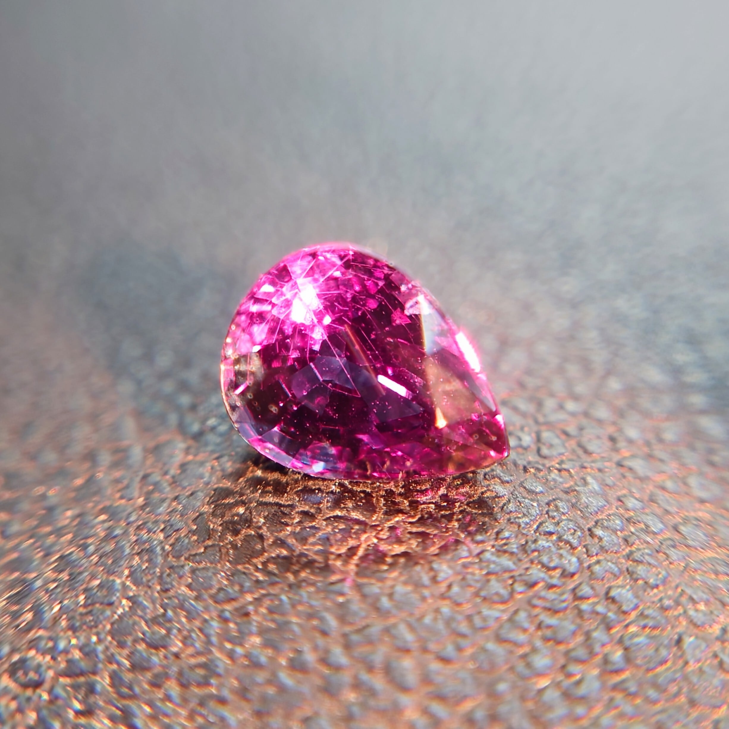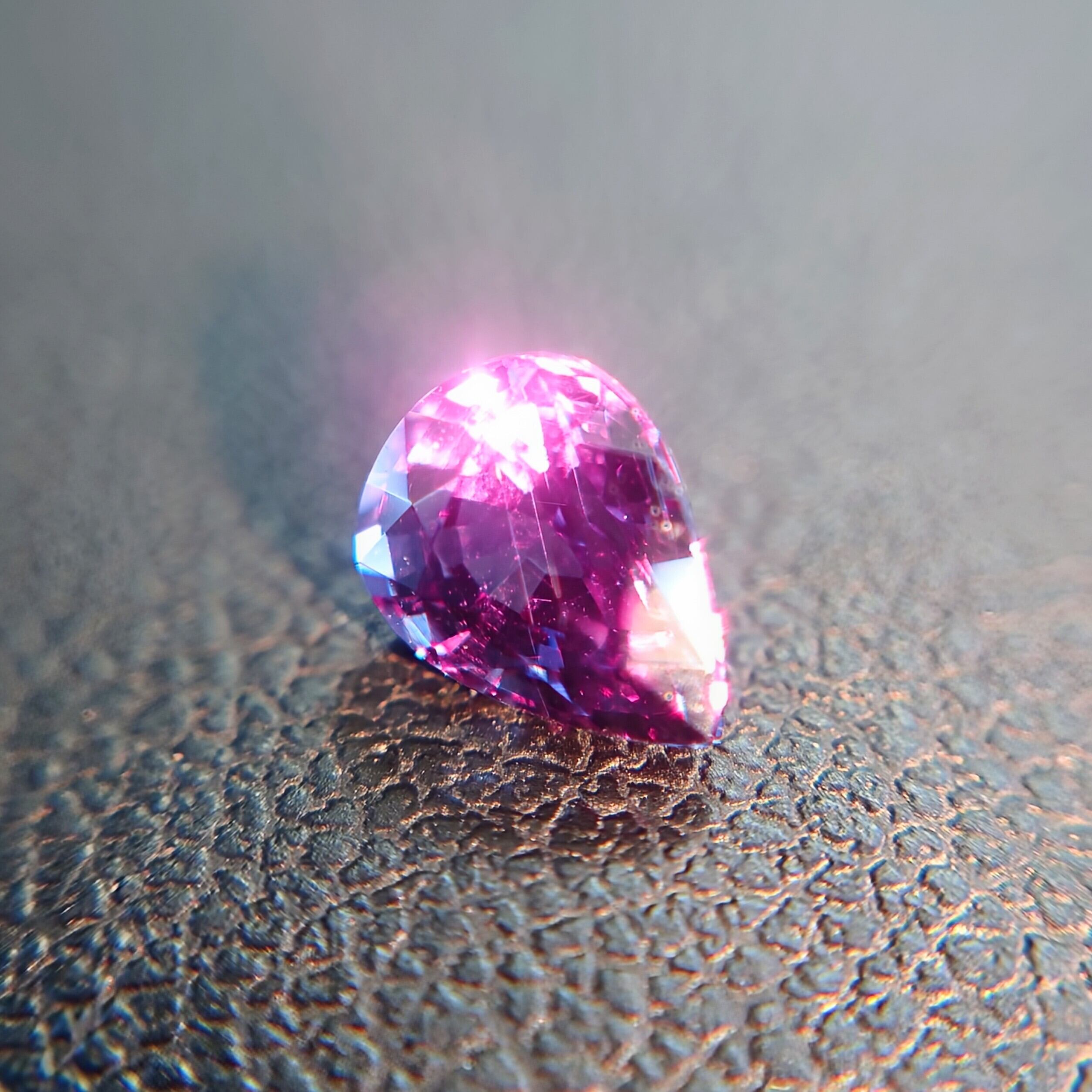 0.869ctという存在感あるサイズに、優美なペアシェイプカットを施し、繊細なファセットが光を巧みに取り込み、奥行きのある煌めきを演出。